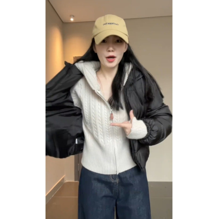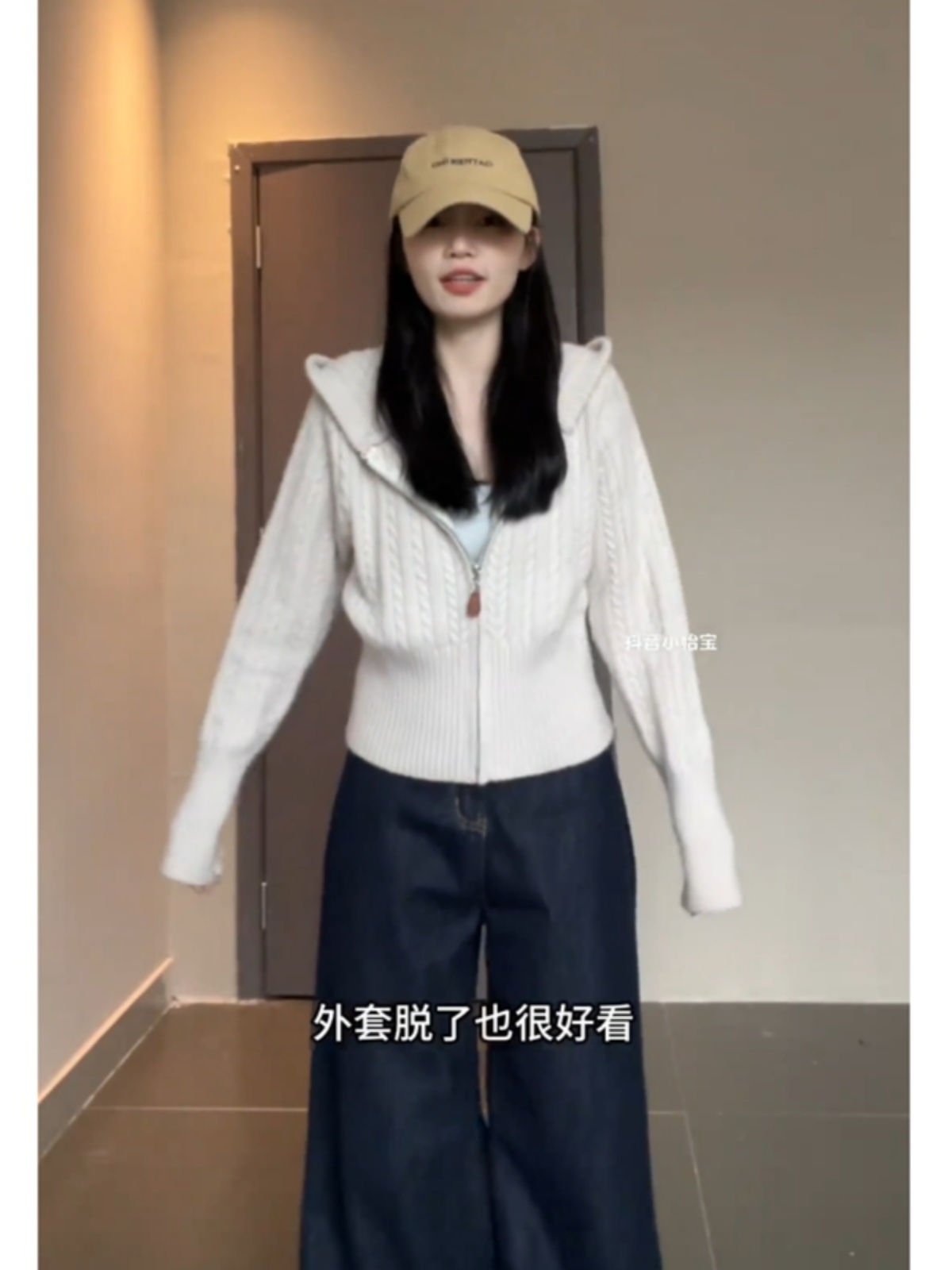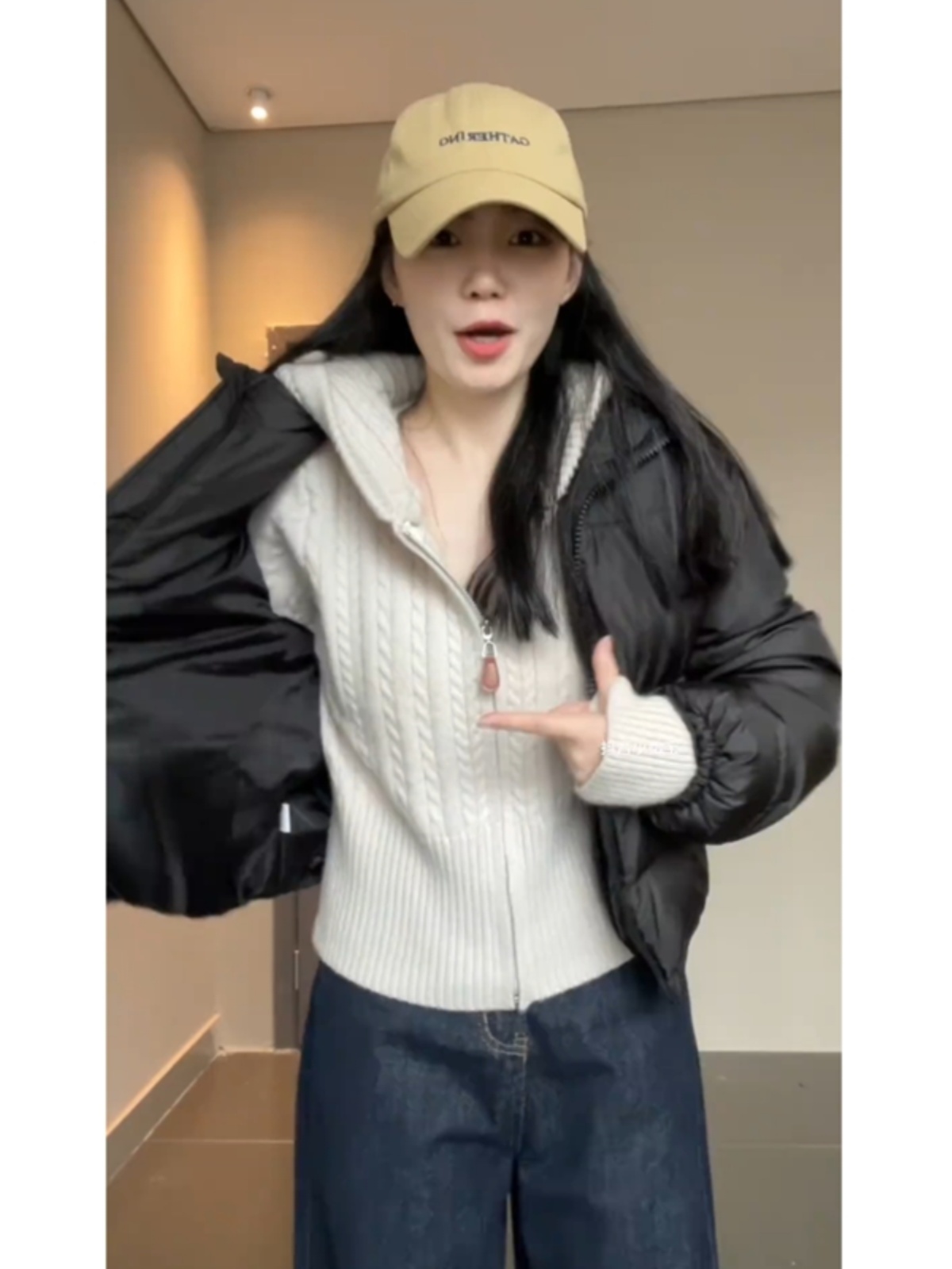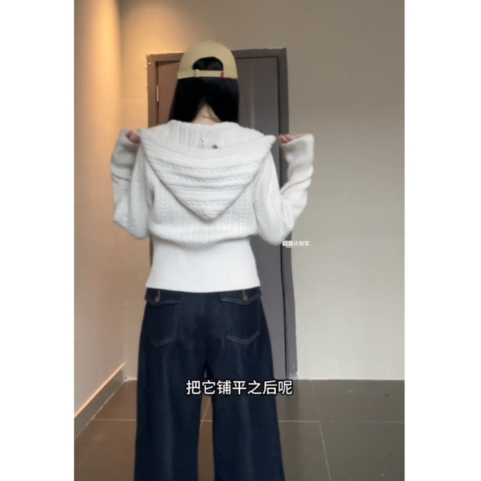 小香風連帽衛衣針織開衫女秋冬外穿軟糯麻花打底上衣短款毛衣外套