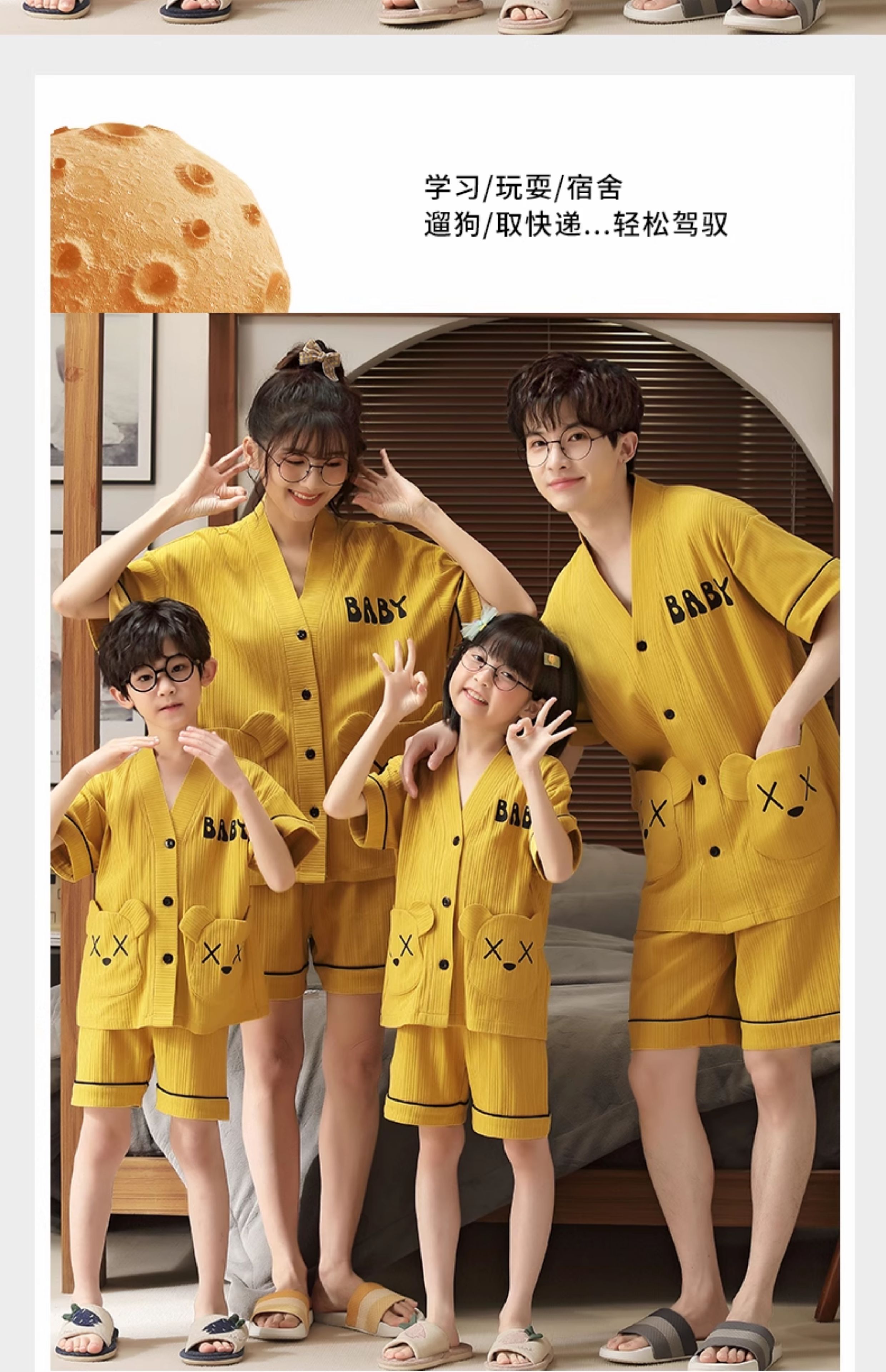 親子裝夏裝一家三口四口睡衣短袖洋氣母女家居服夏季新款兒童套裝