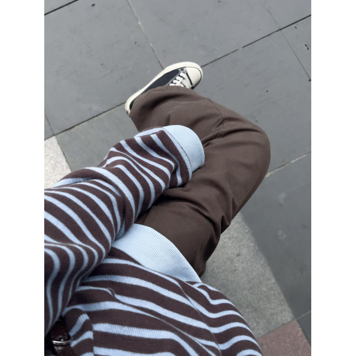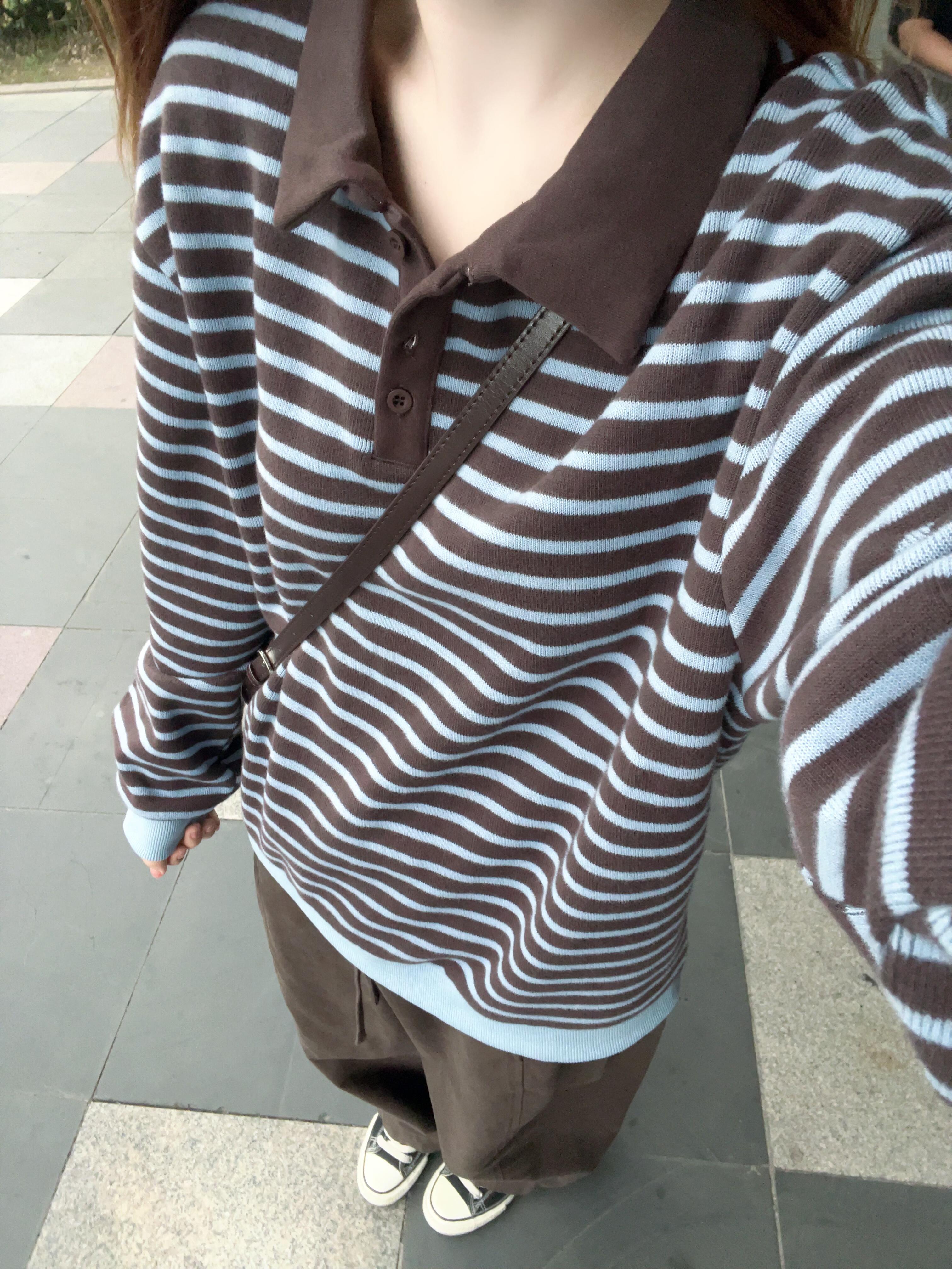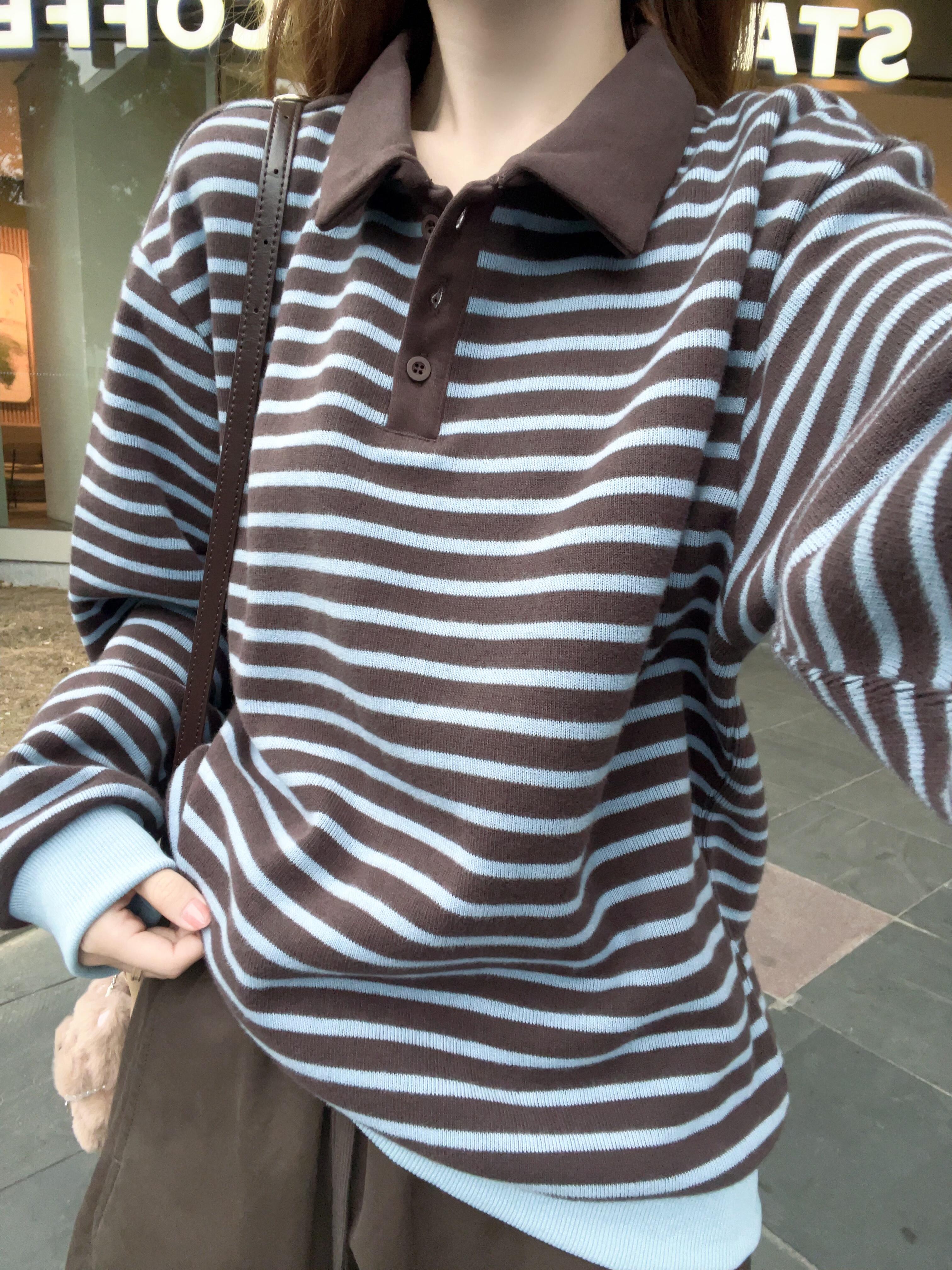 翻領條紋衛衣女秋冬新款復古百搭撞色寬松韓系高級感休閒長袖上衣