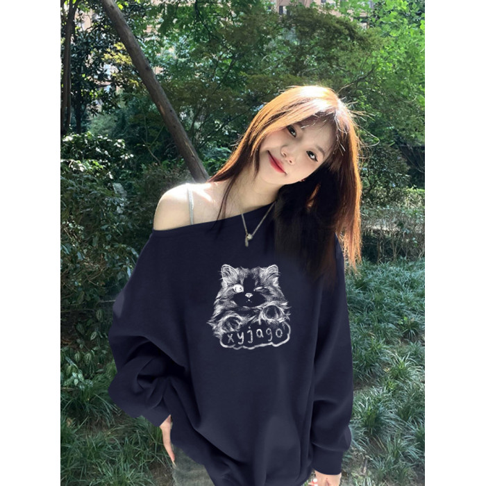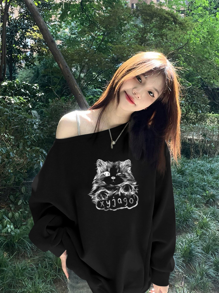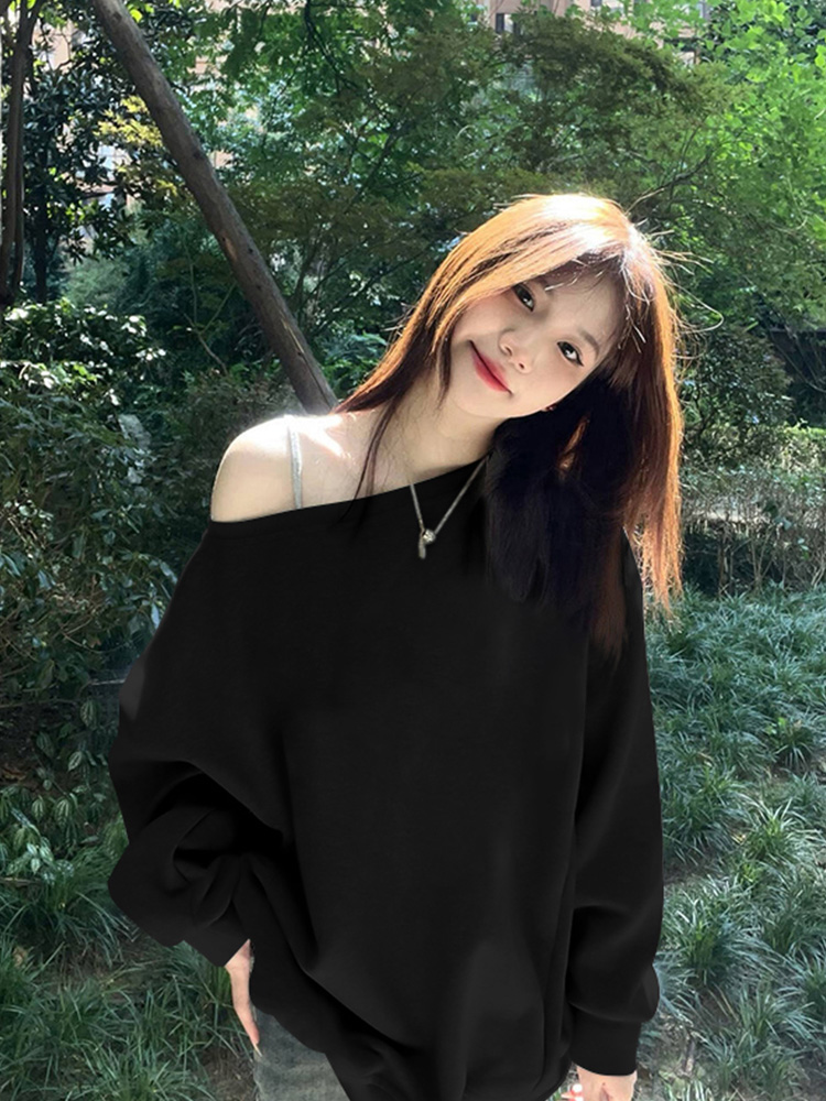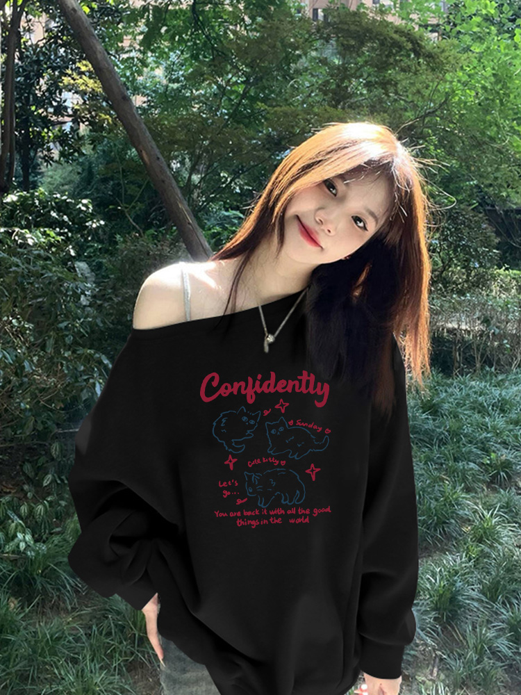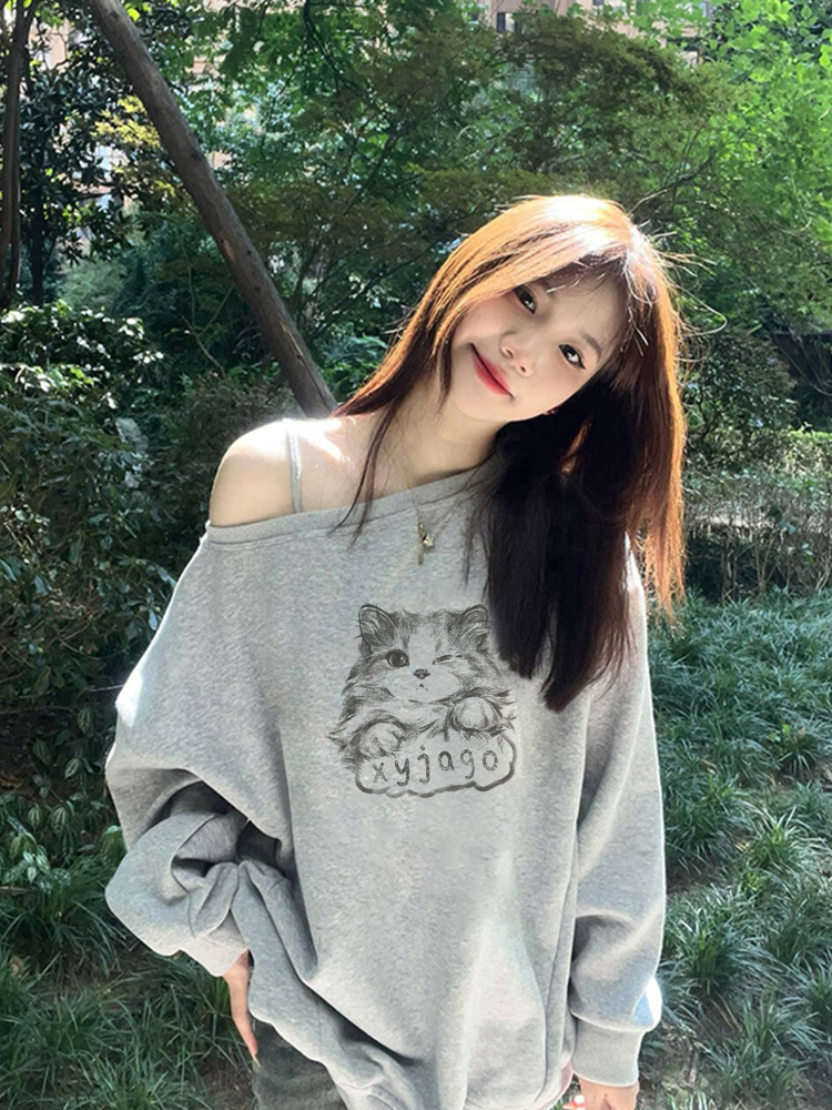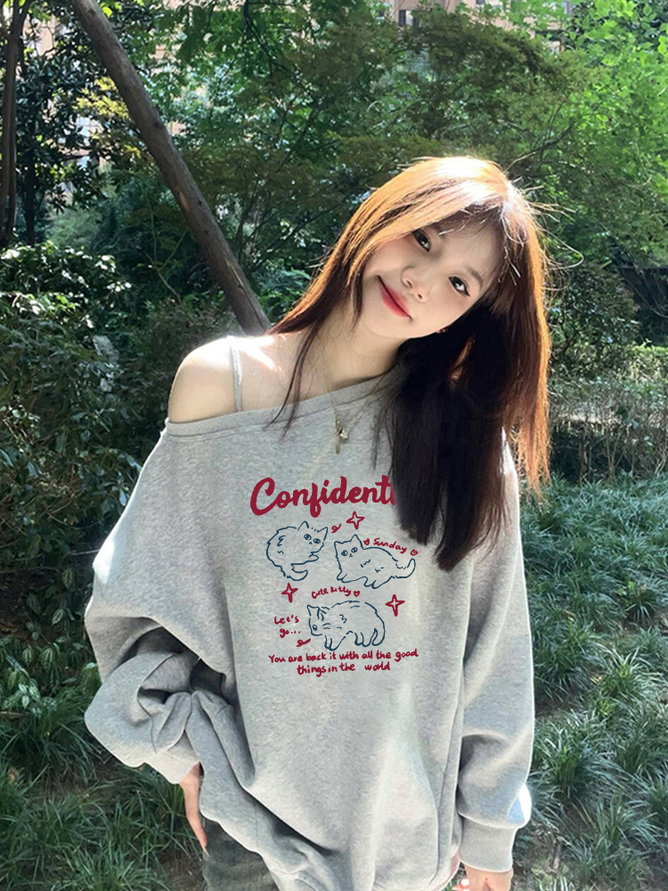 美式慵懶chic辣妹長袖外套秋季2025新款今年流行爆款斜肩衛衣女裝