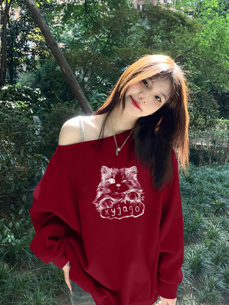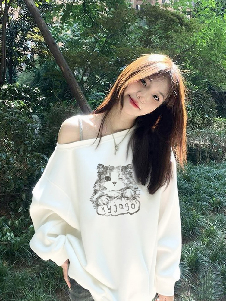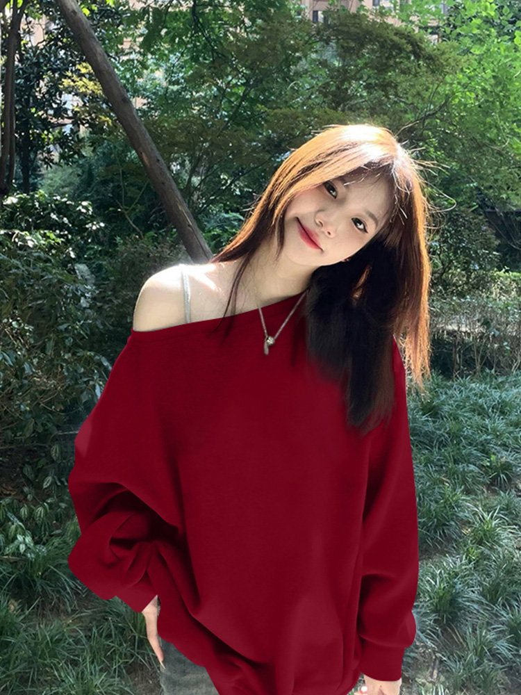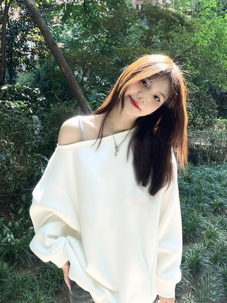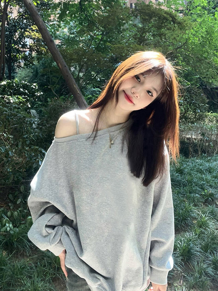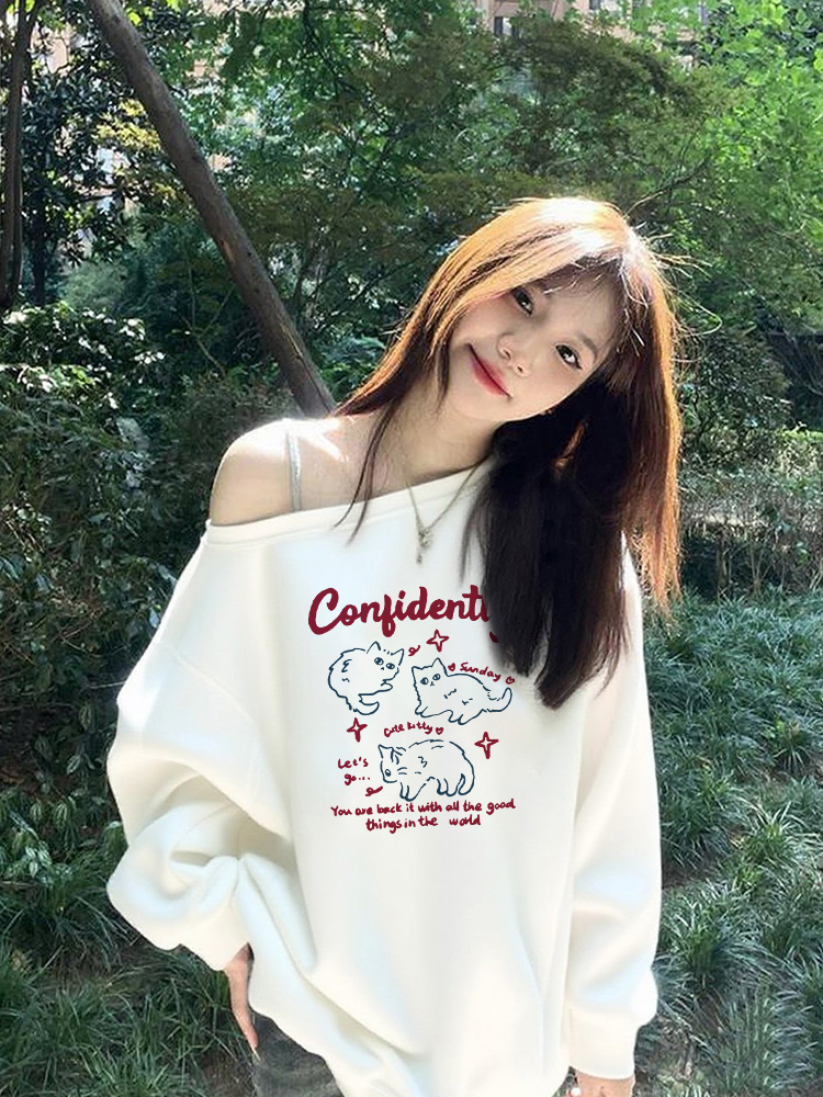 美式慵懶chic辣妹長袖外套秋季2025新款今年流行爆款斜肩衛衣女裝