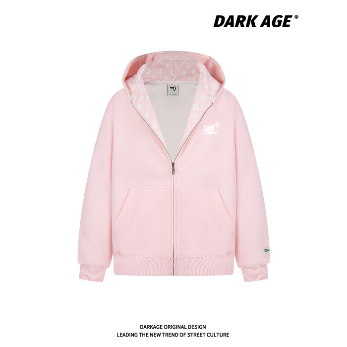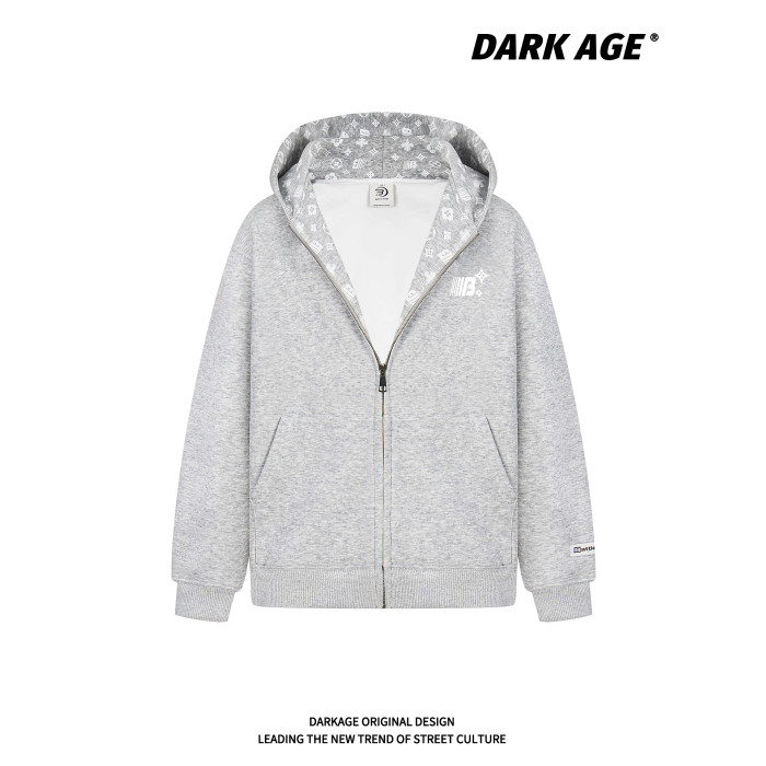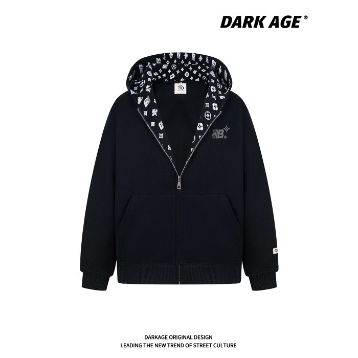DARKAGE美式印花開衫連帽衛衣外套男女秋冬加絨情侶潮牌拉鍊上衣