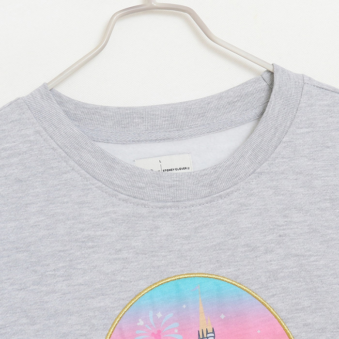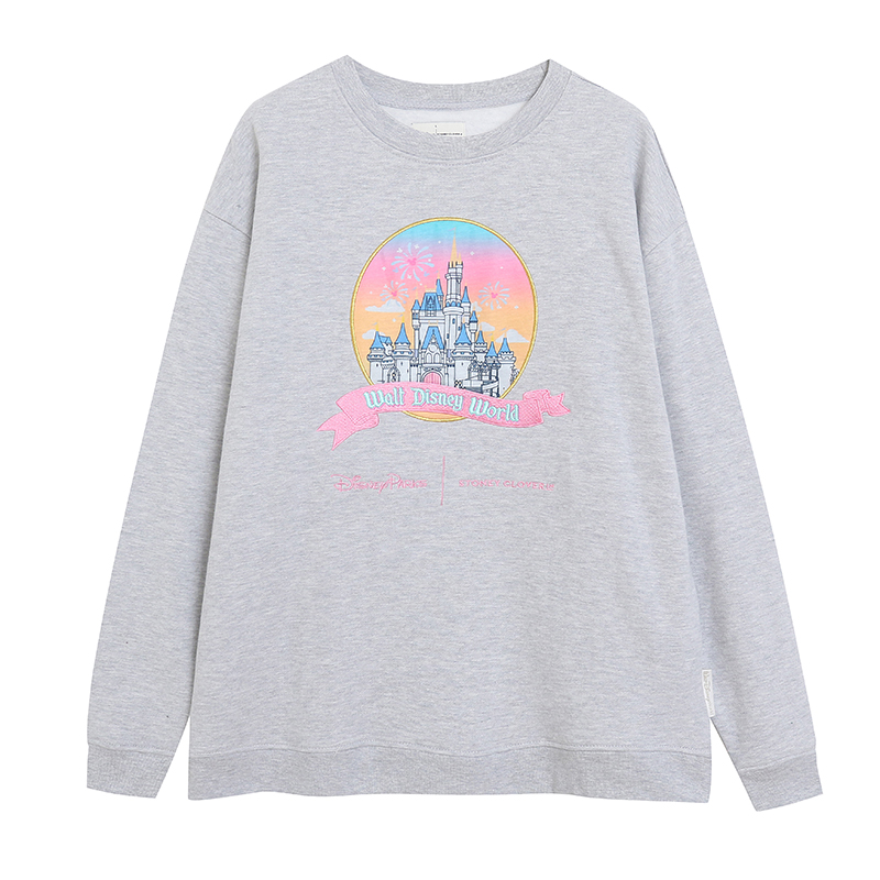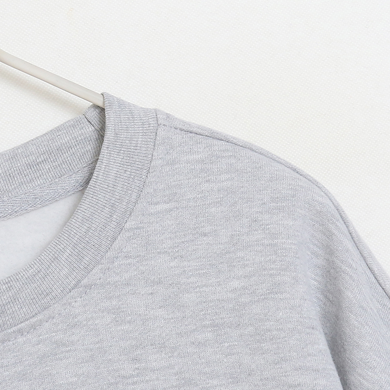 樂園款~有質感灰色卡通字母刺綉衛衣女士圓領薄絨寬松大碼上衣