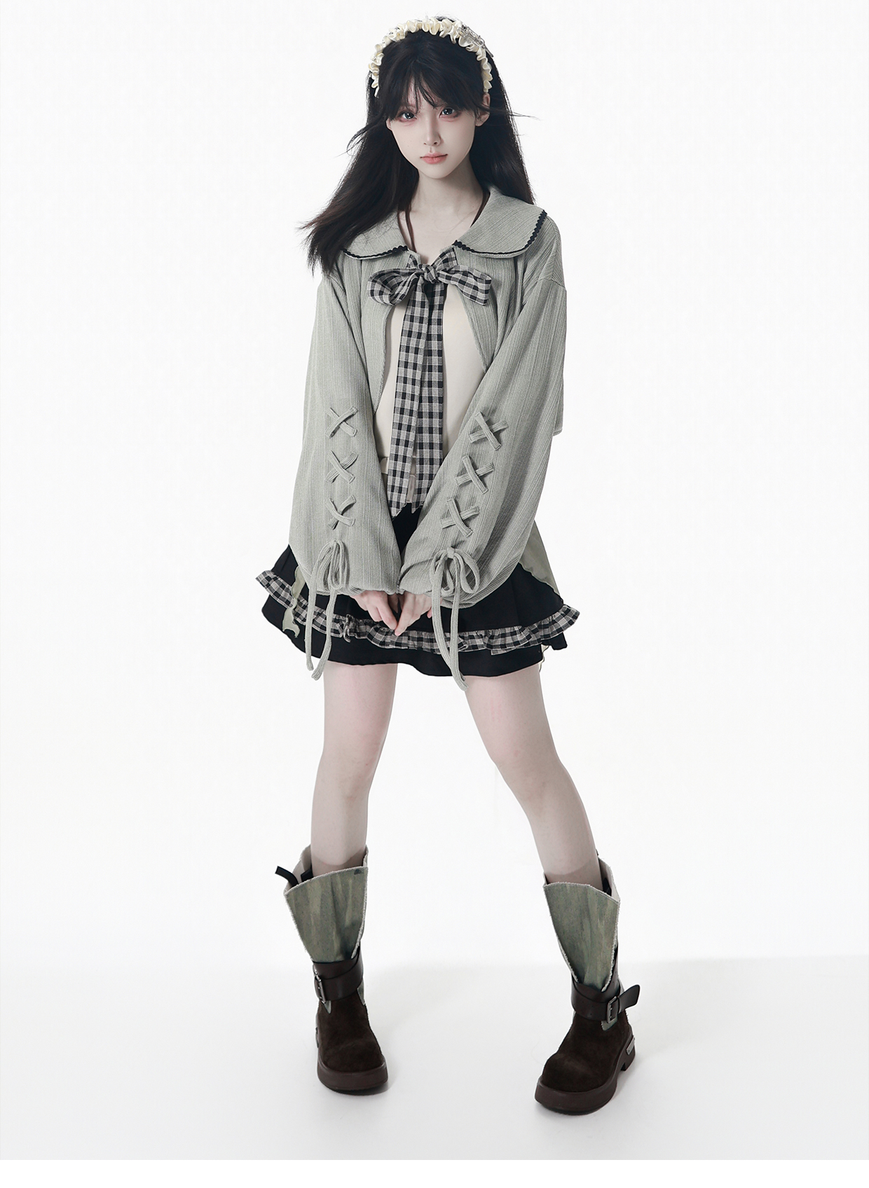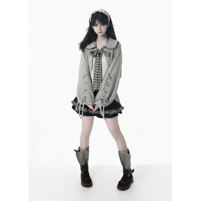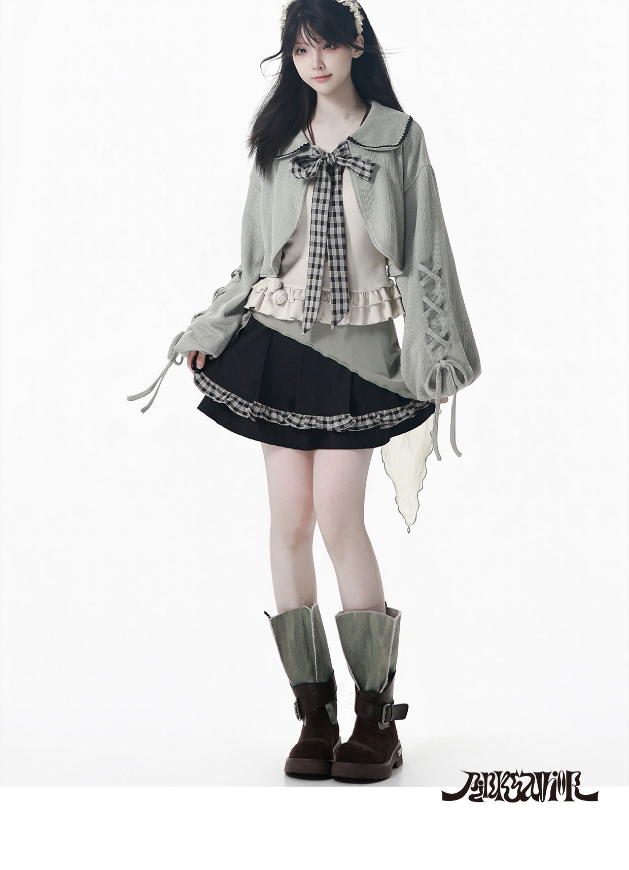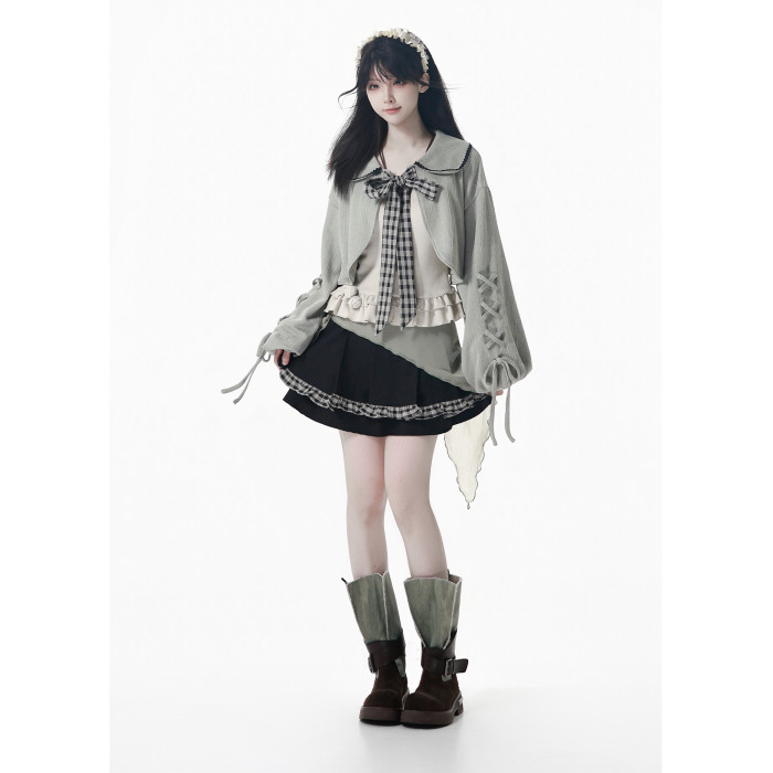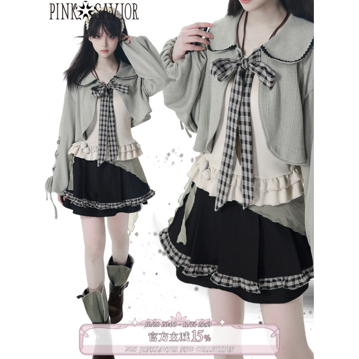 pinksavior【青提抹茶】灰綠色秋冬針織小開衫氛圍感顯瘦套裝