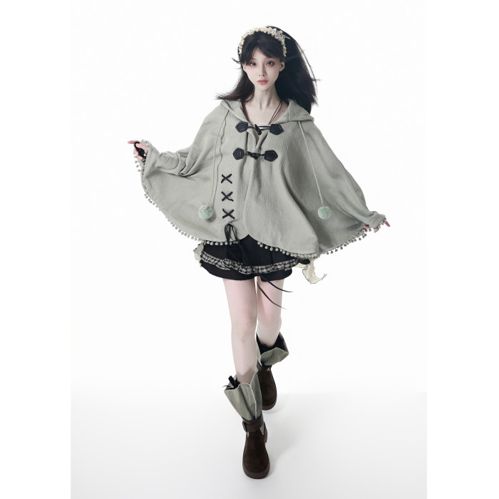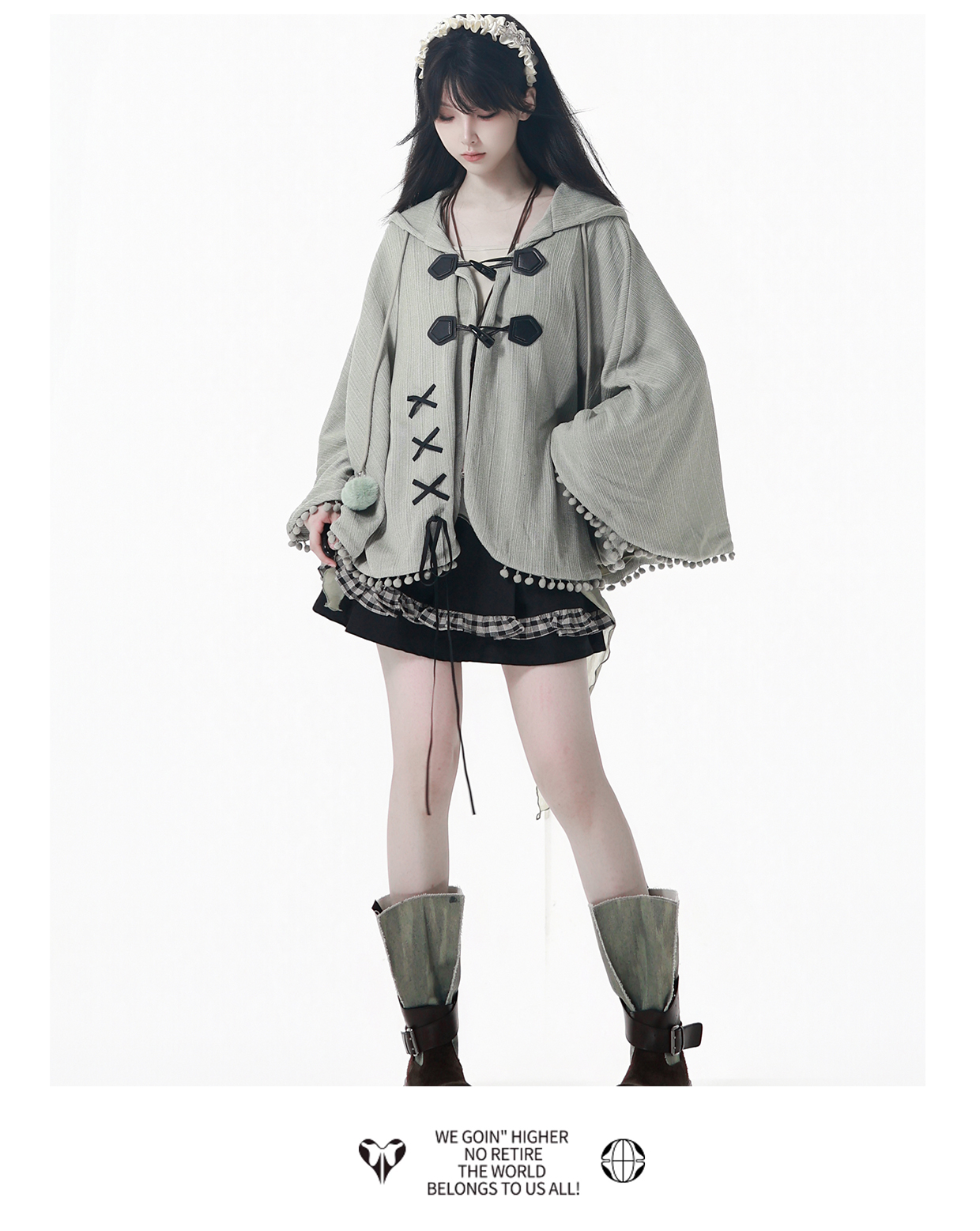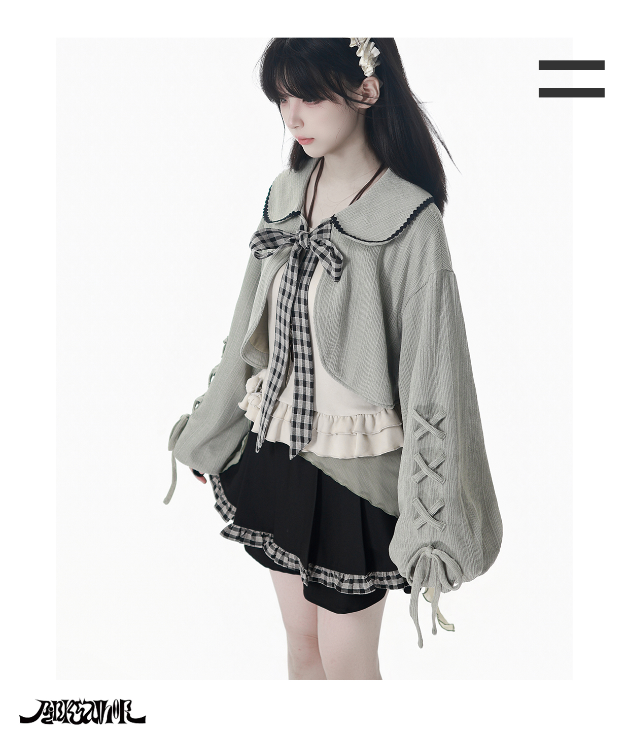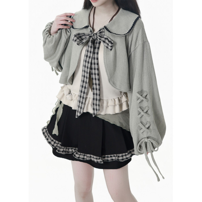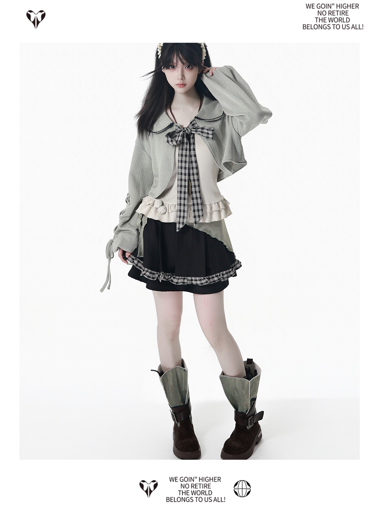 pinksavior【青提抹茶】灰綠色秋冬針織小開衫氛圍感顯瘦套裝
