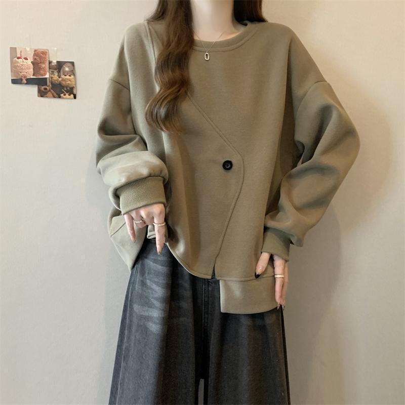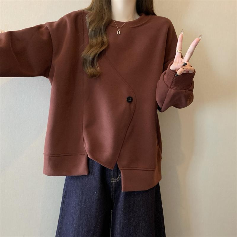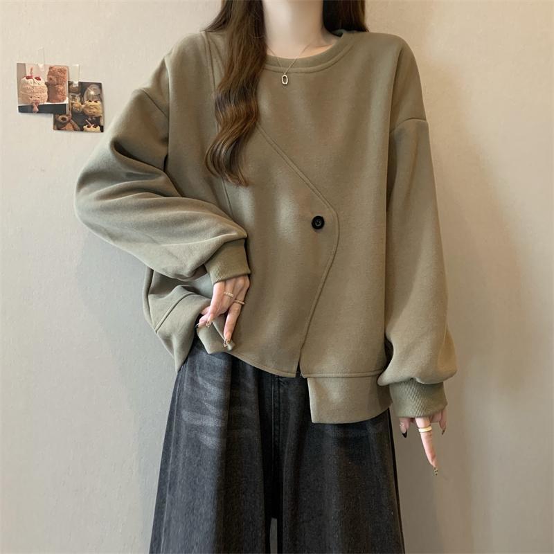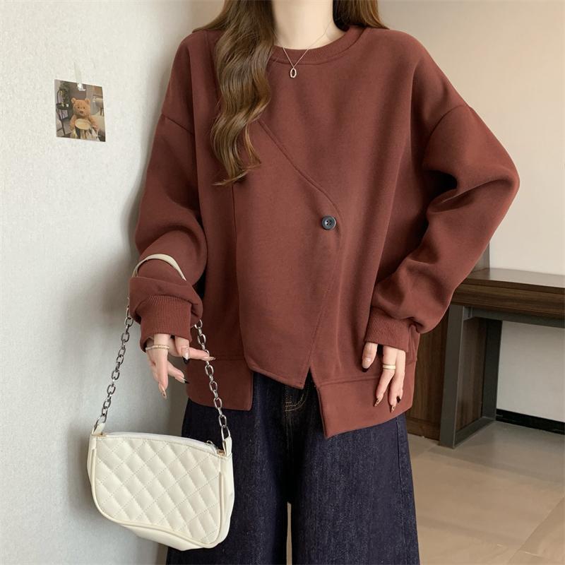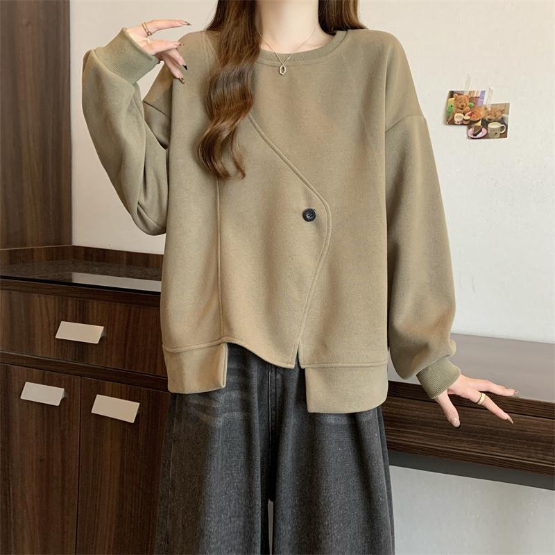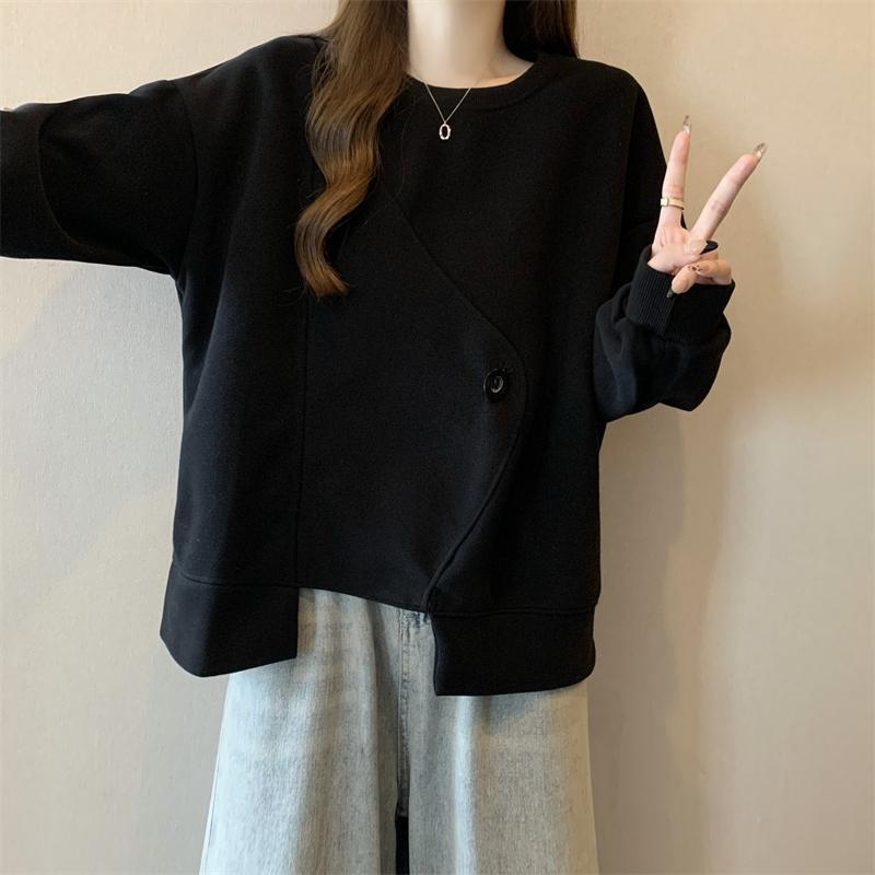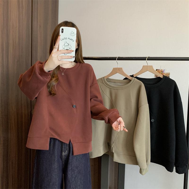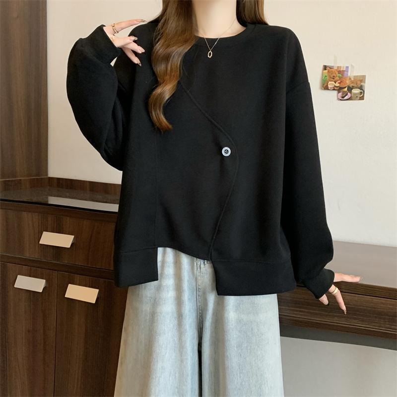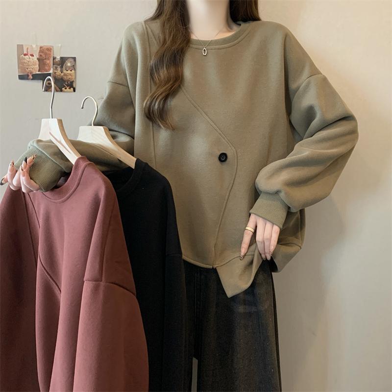 胖MM2-300斤大碼設計感不規則加絨衛衣女秋冬爆款寬松遮肚子上衣
