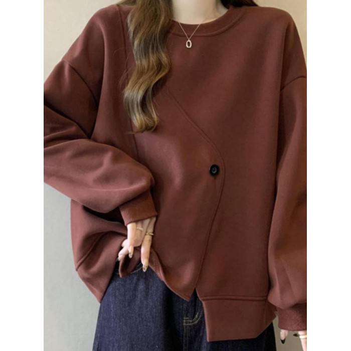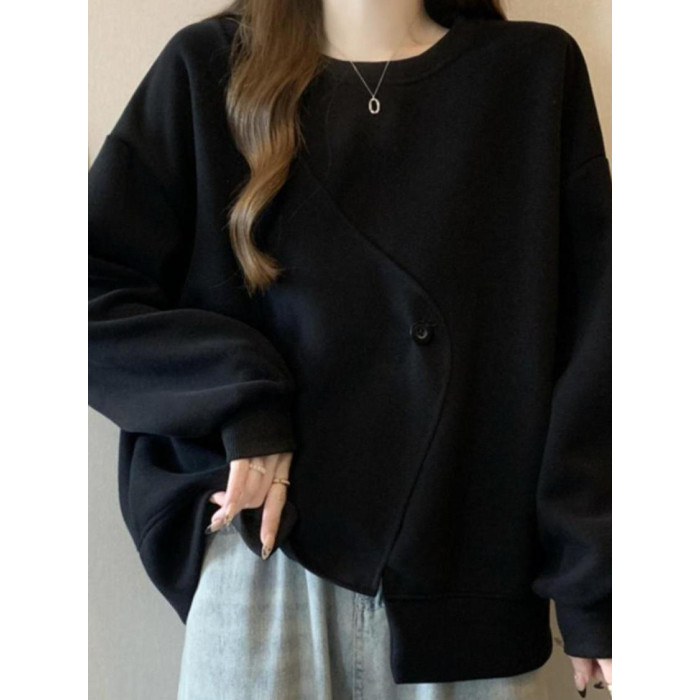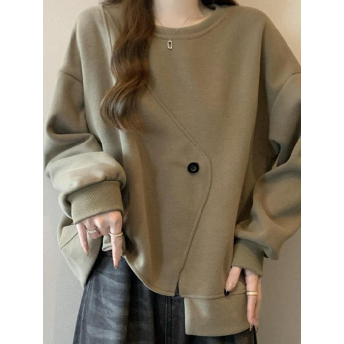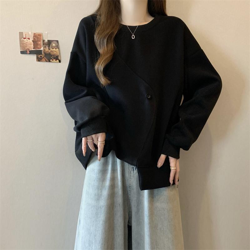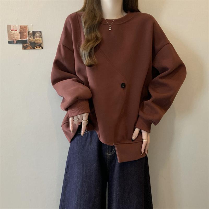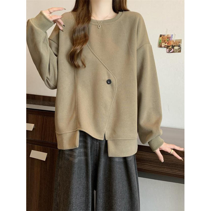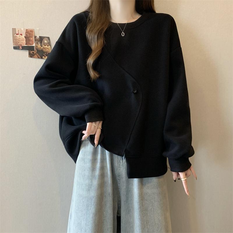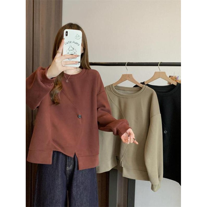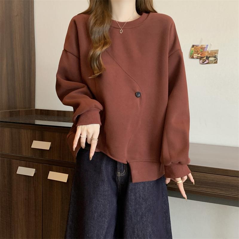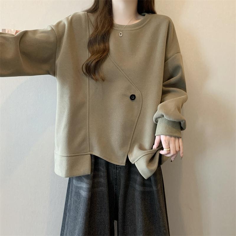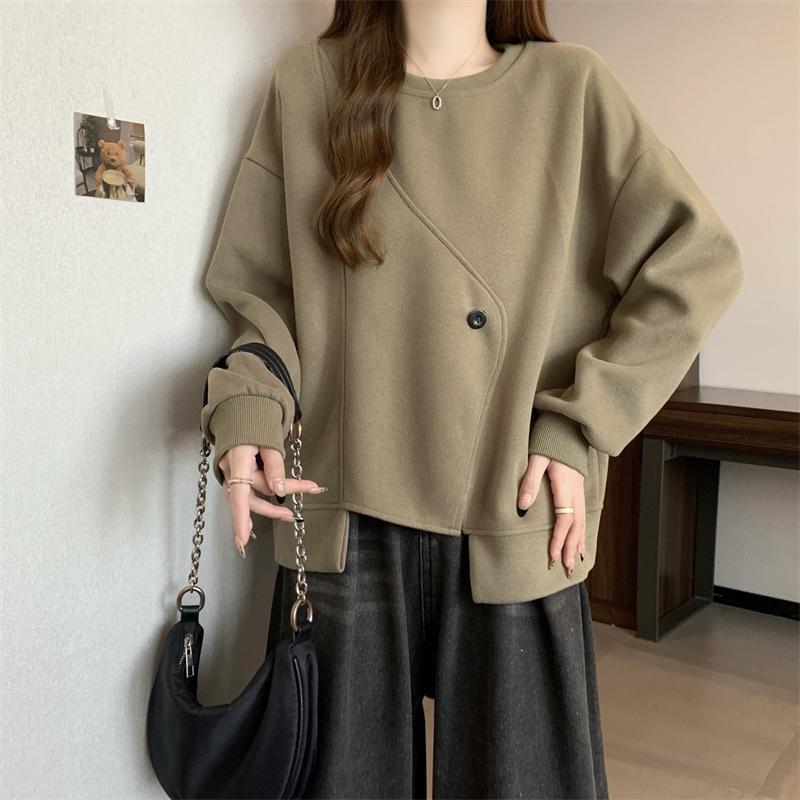 胖MM2-300斤大碼設計感不規則加絨衛衣女秋冬爆款寬松遮肚子上衣