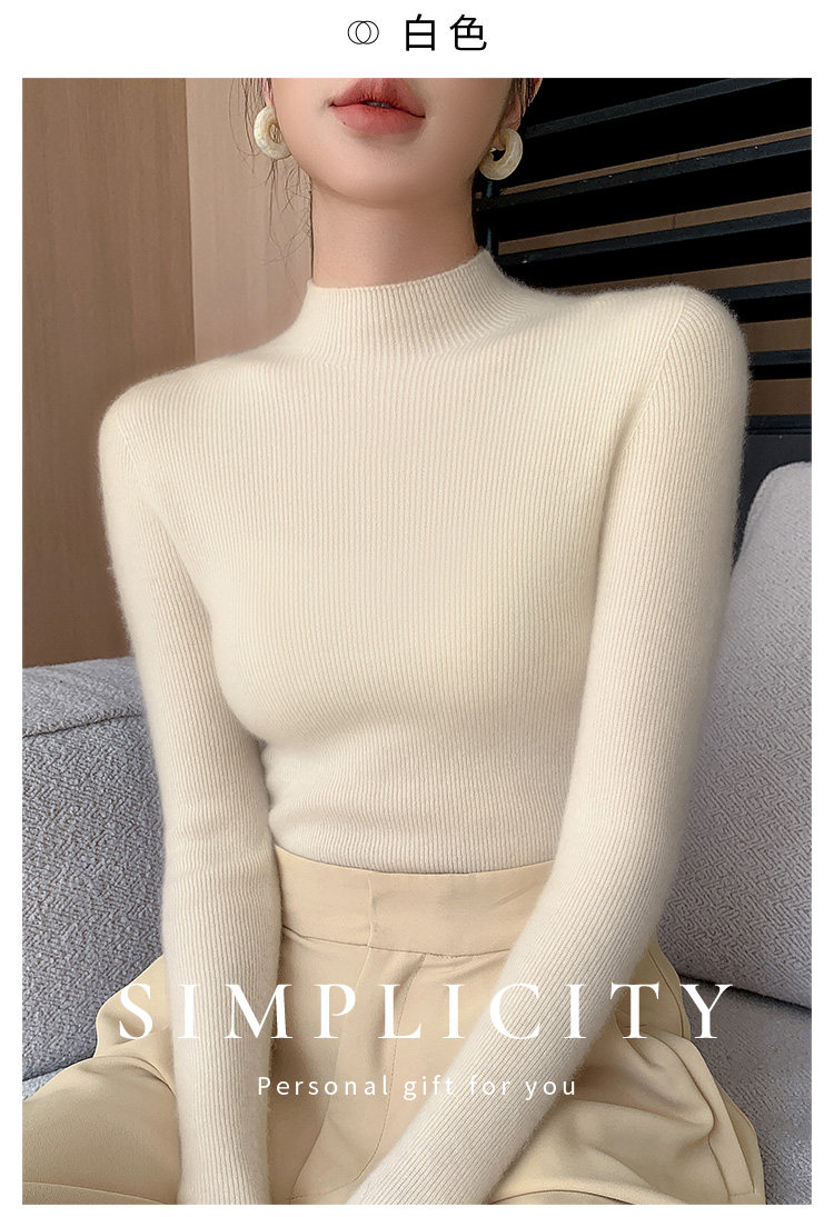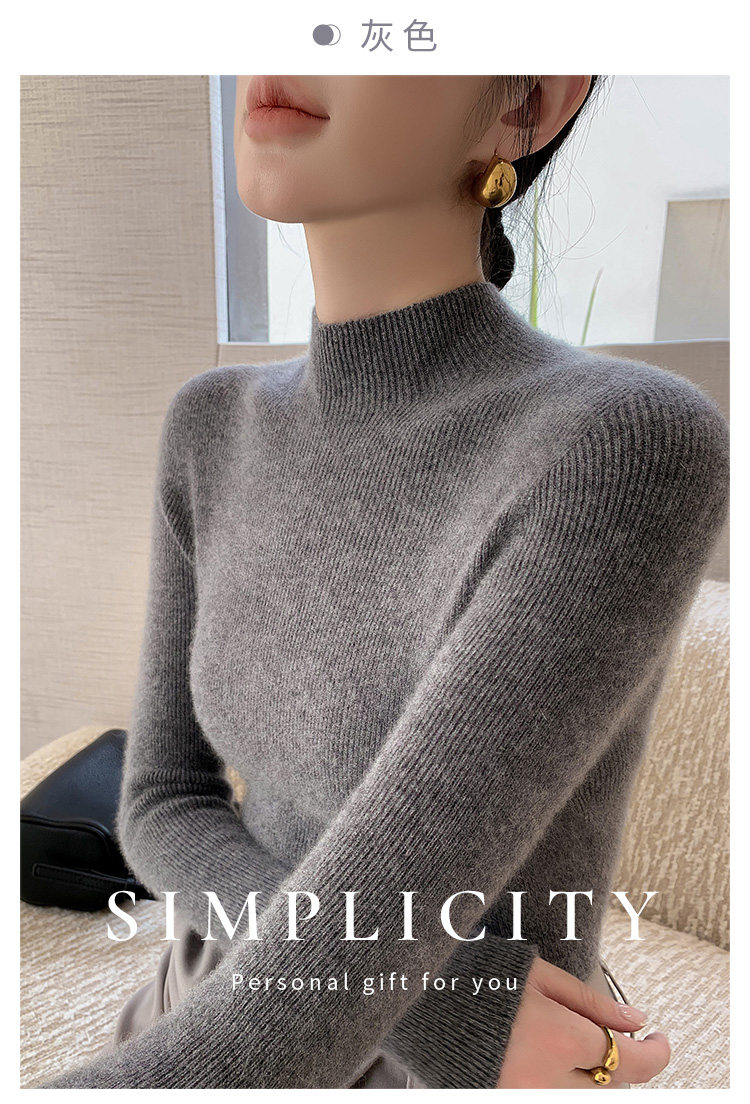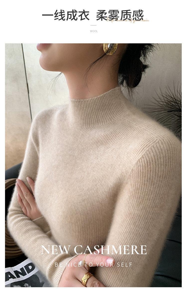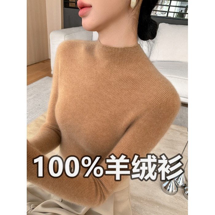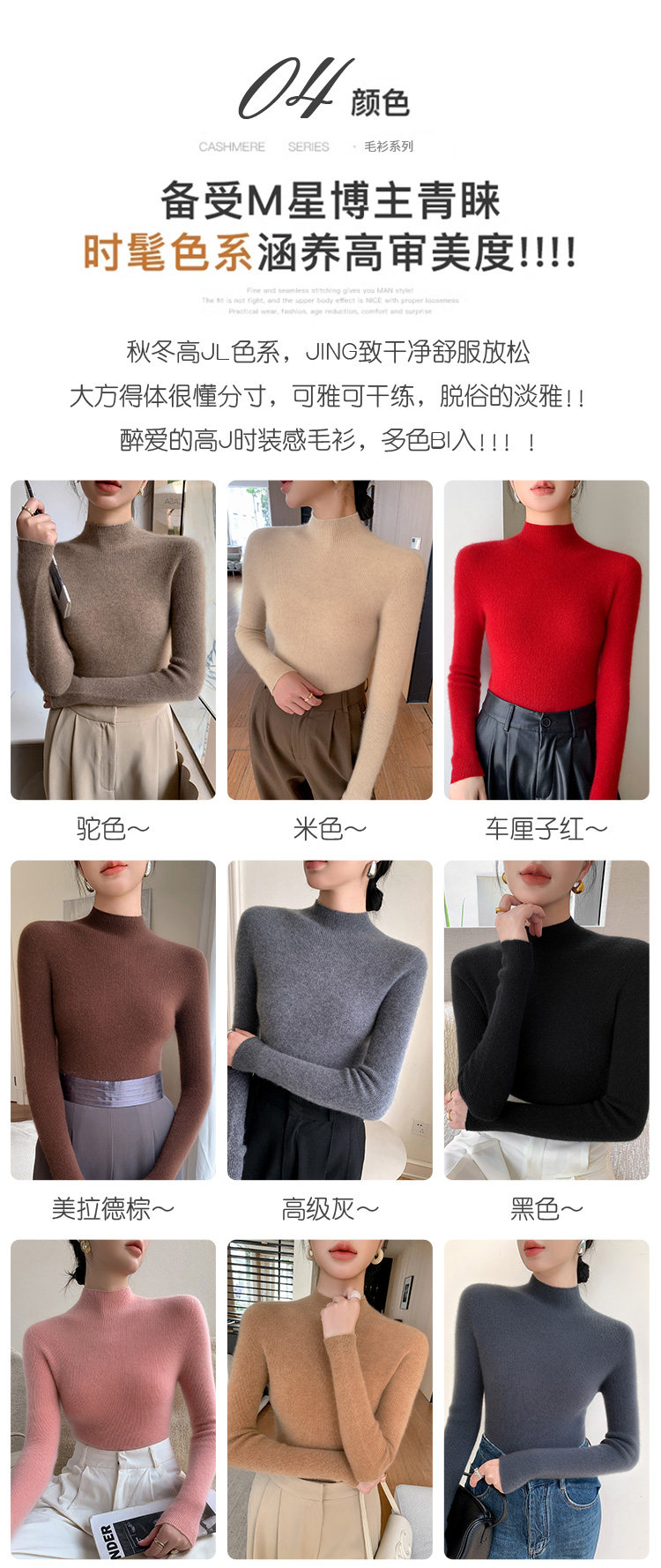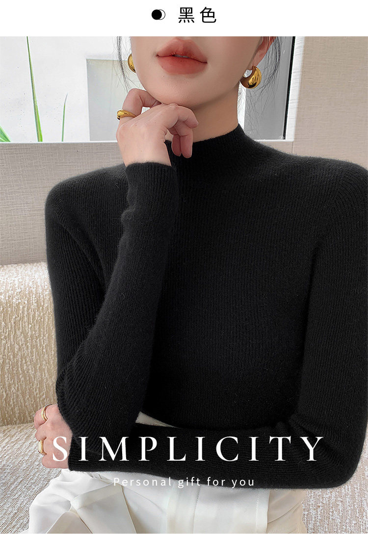 半高領羊絨衫女秋冬內搭新款羊毛長袖針織打底衫修身顯瘦黑色毛衣