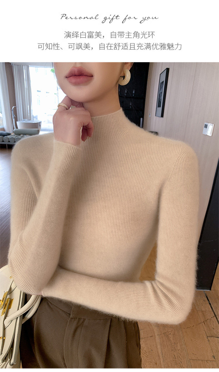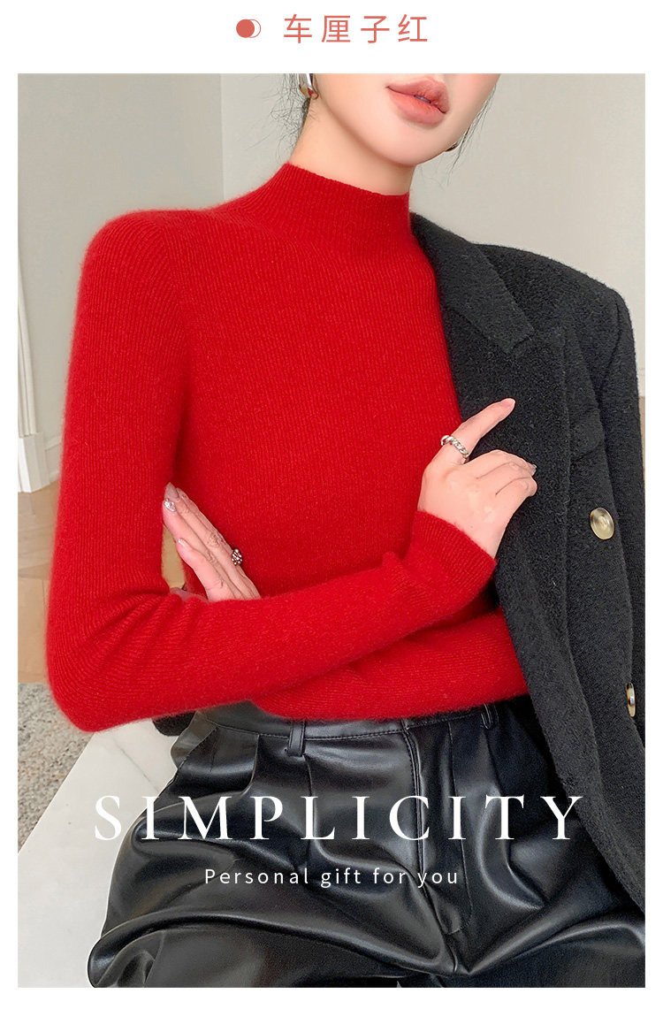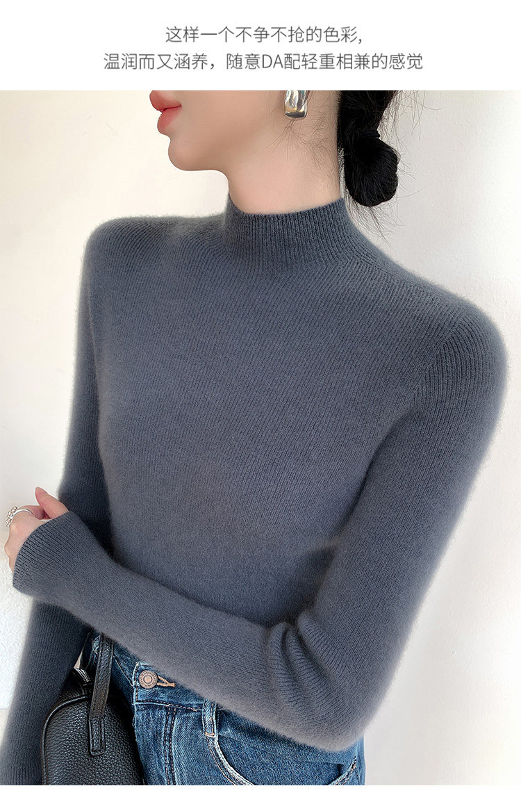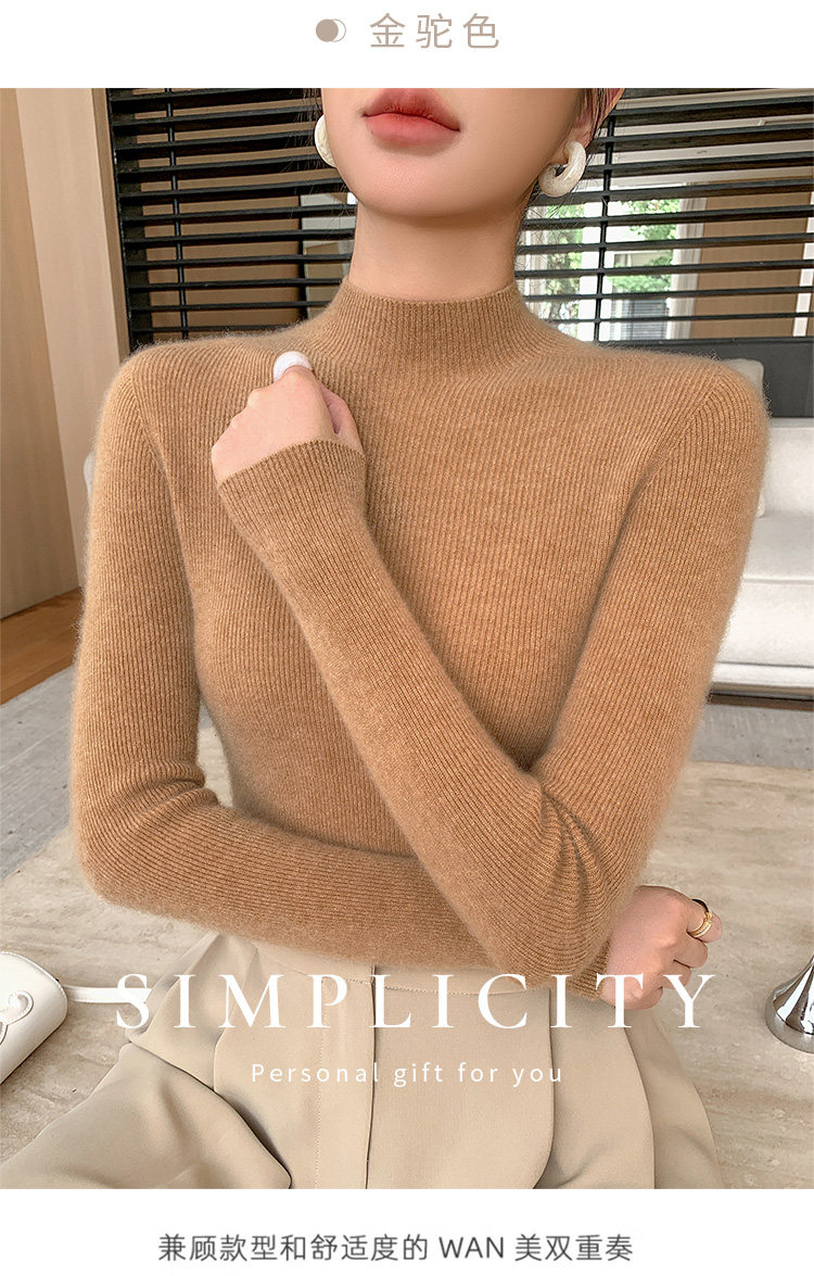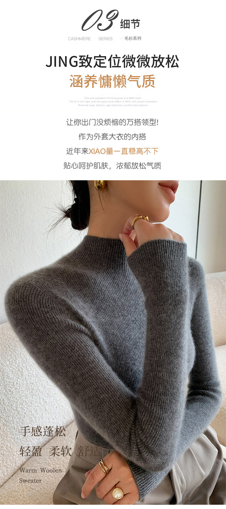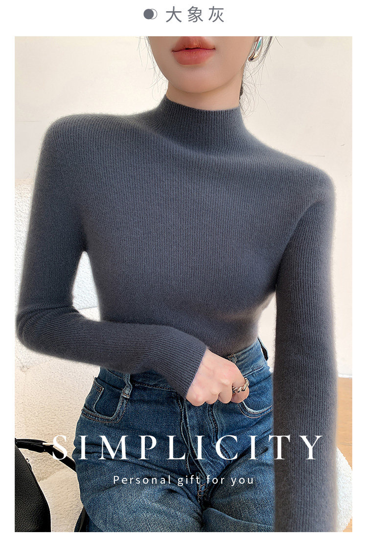 半高領羊絨衫女秋冬內搭新款羊毛長袖針織打底衫修身顯瘦黑色毛衣