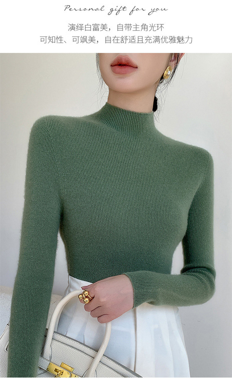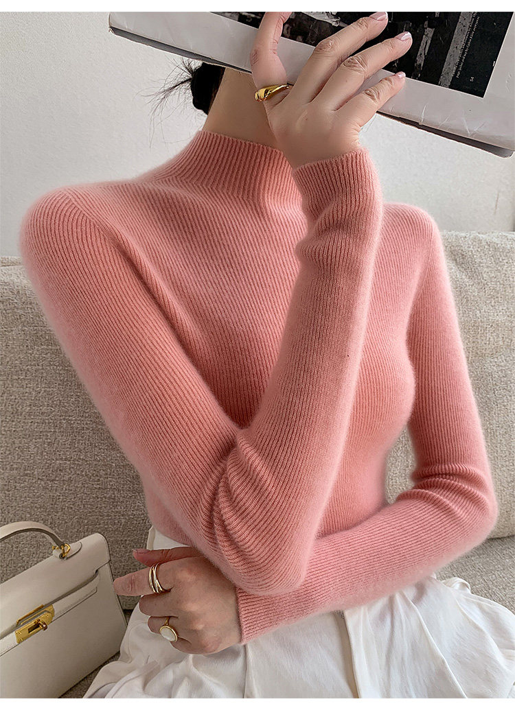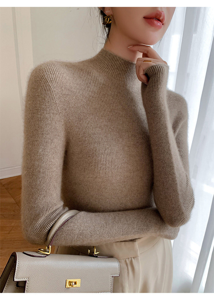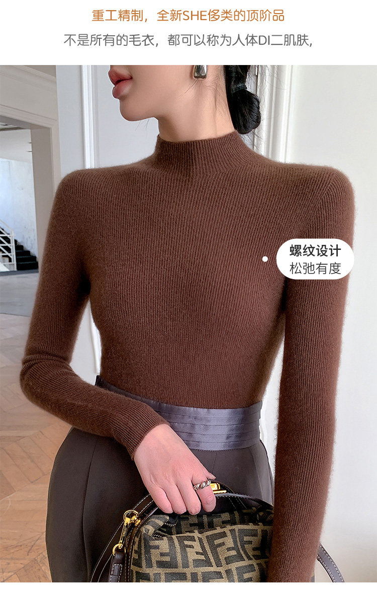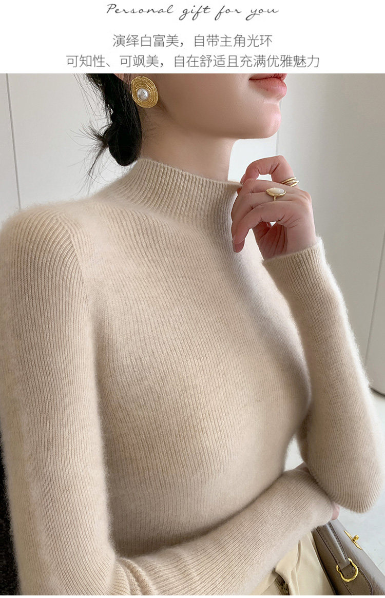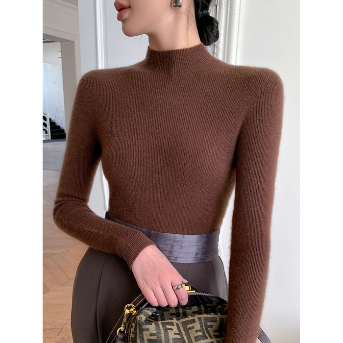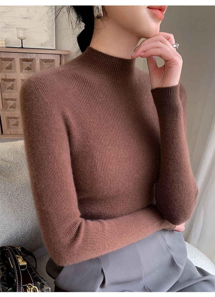 半高領羊絨衫女秋冬內搭新款羊毛長袖針織打底衫修身顯瘦黑色毛衣