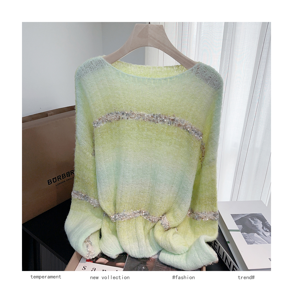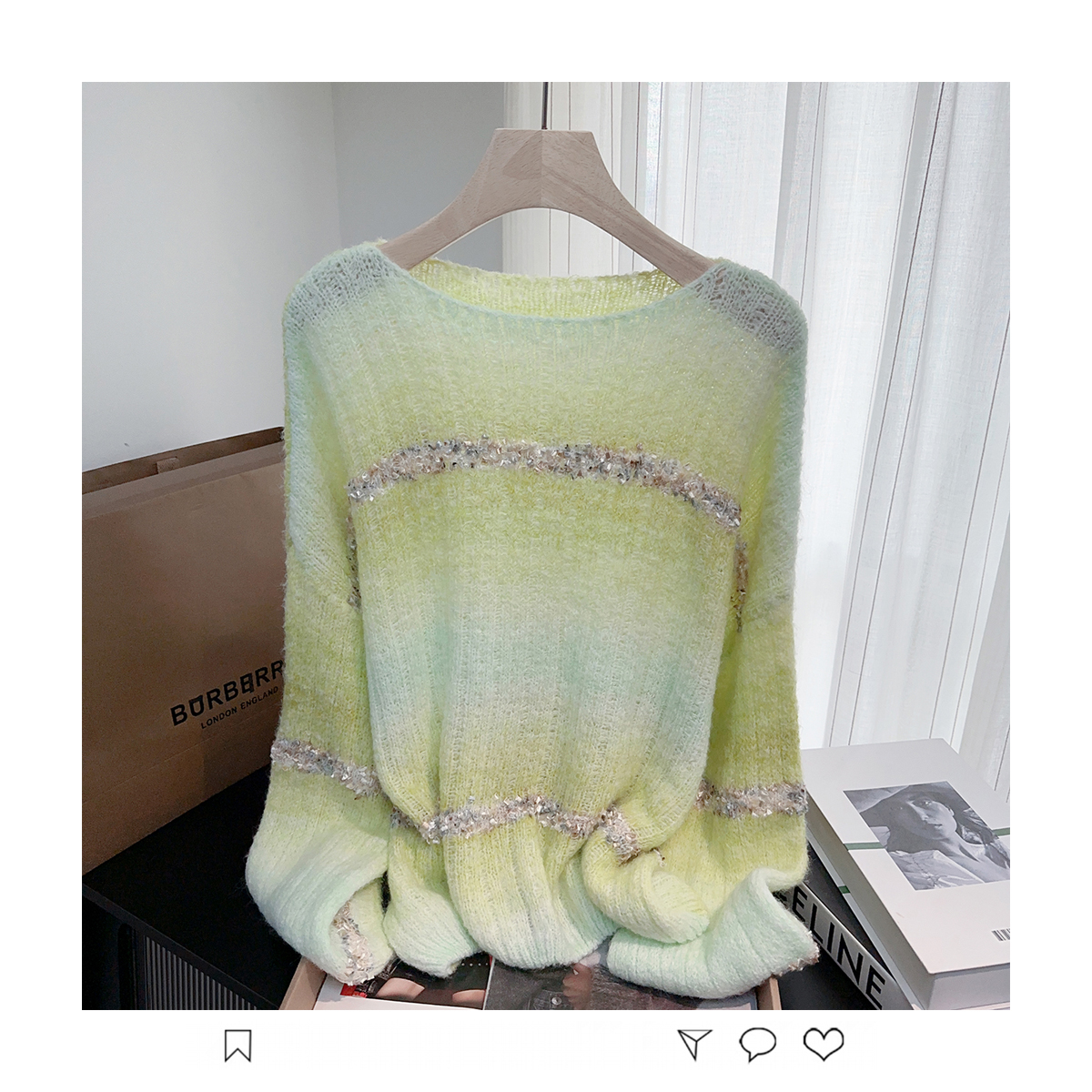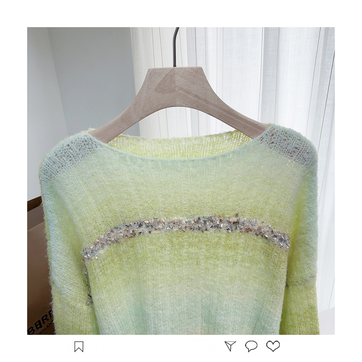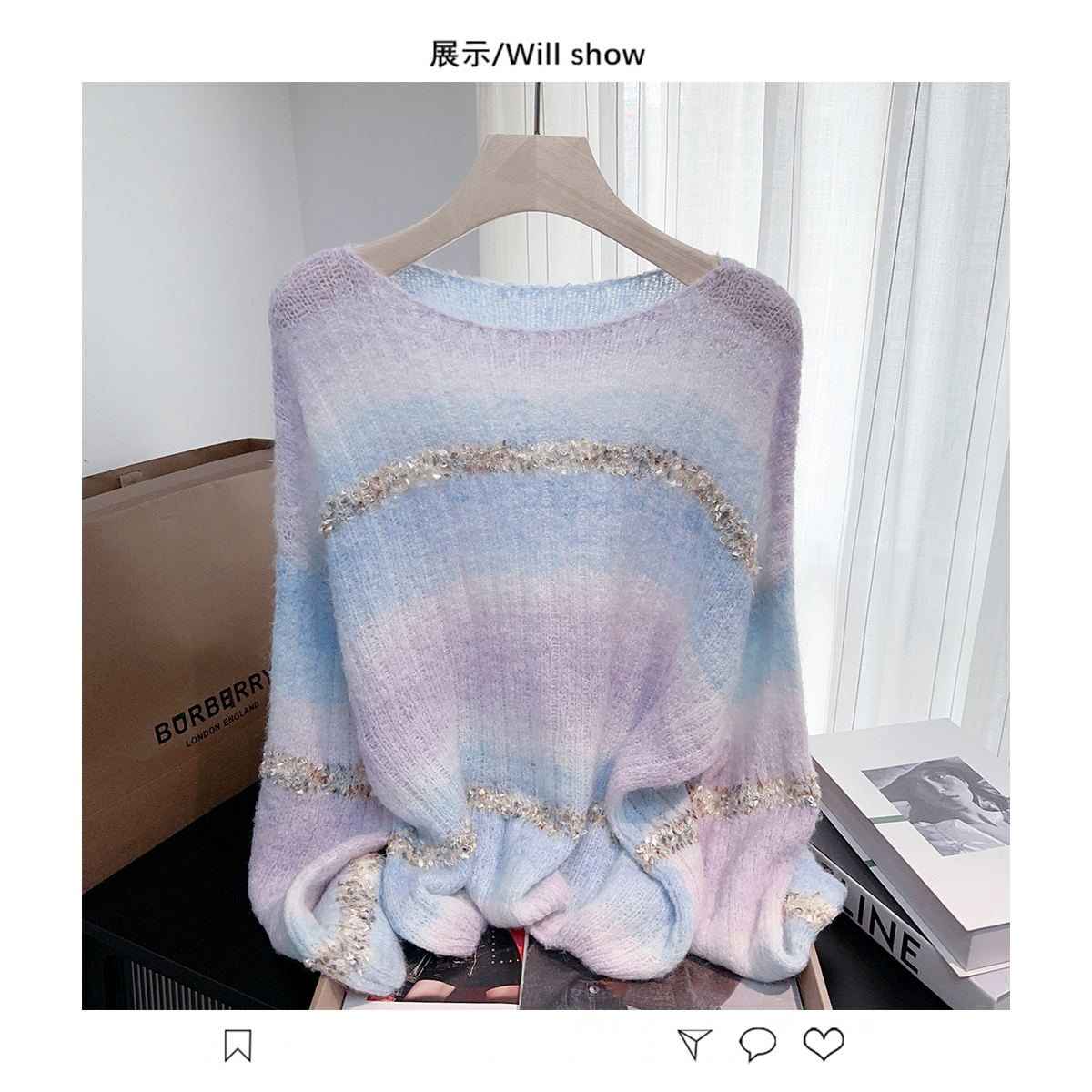 早秋氛圍感漸變色針織上衣女小個子洋氣減齡寬松慵懶軟糯套頭毛衣