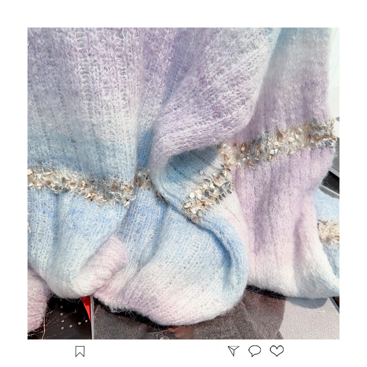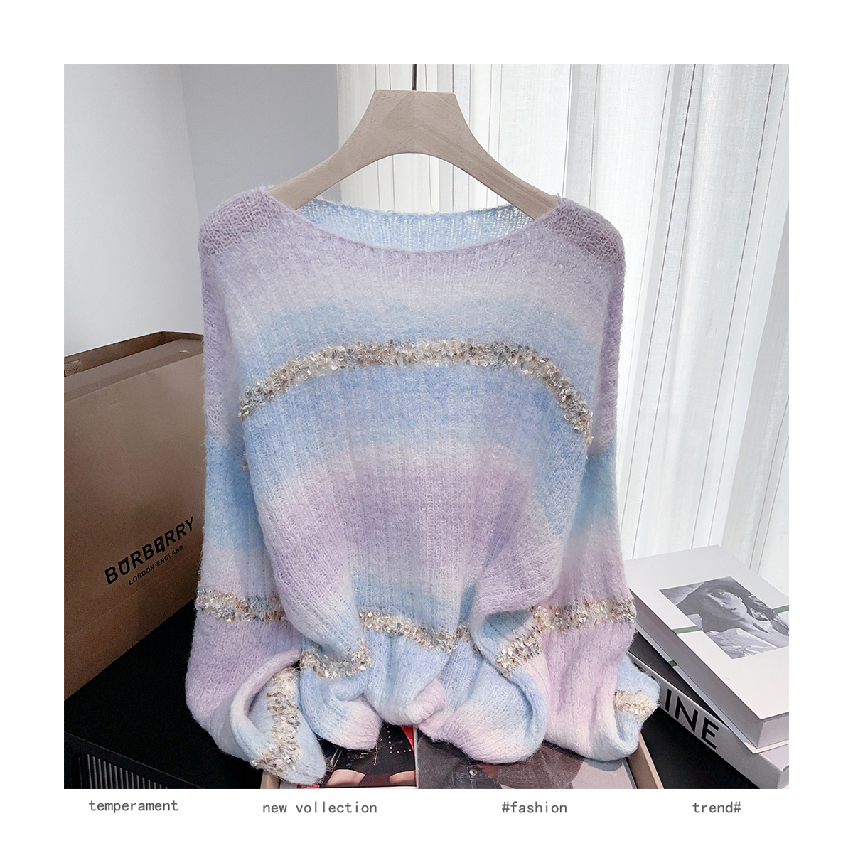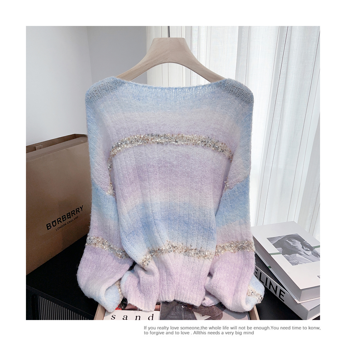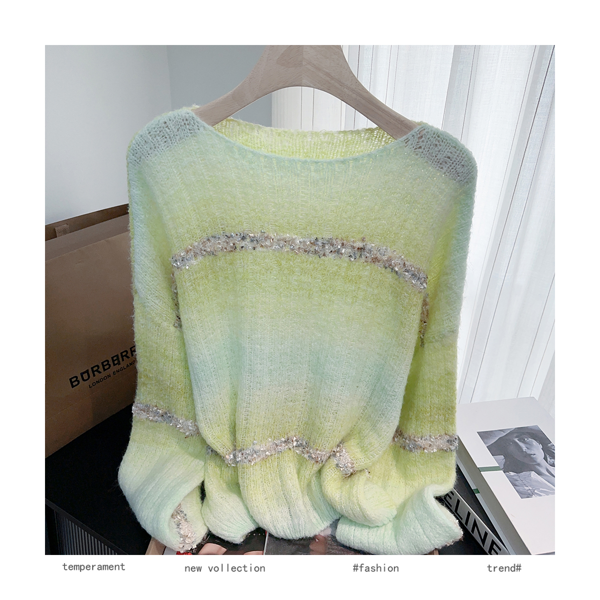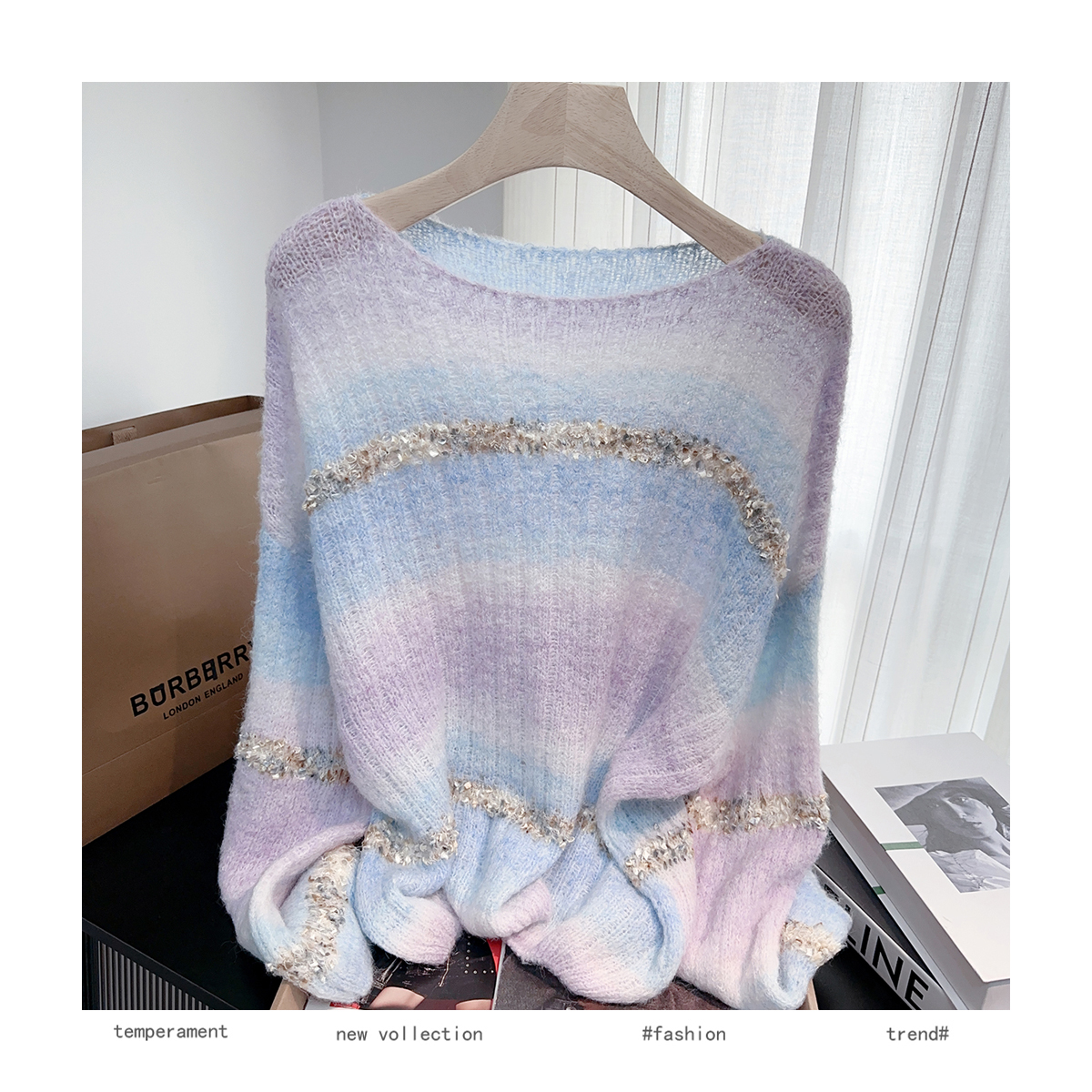 早秋氛圍感漸變色針織上衣女小個子洋氣減齡寬松慵懶軟糯套頭毛衣