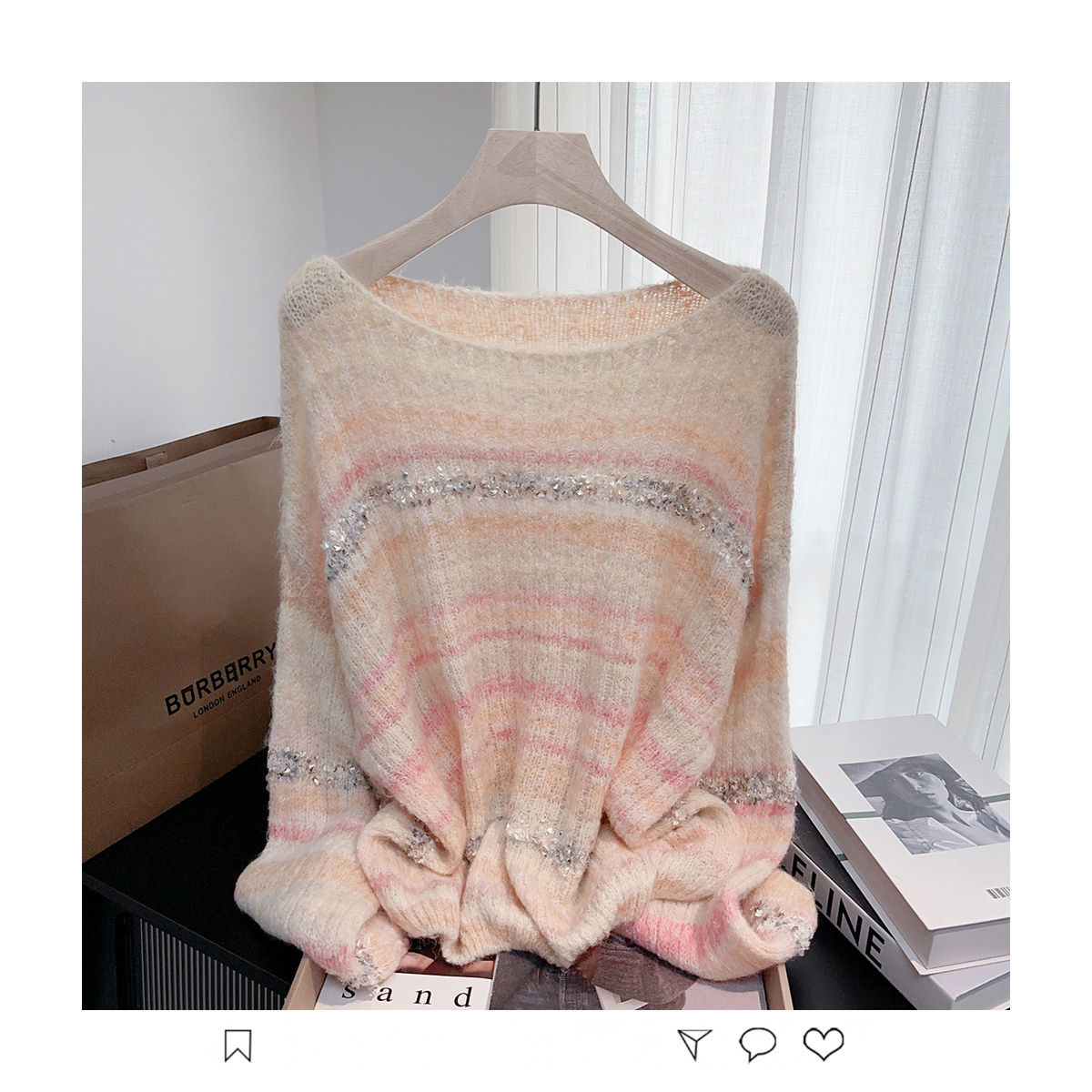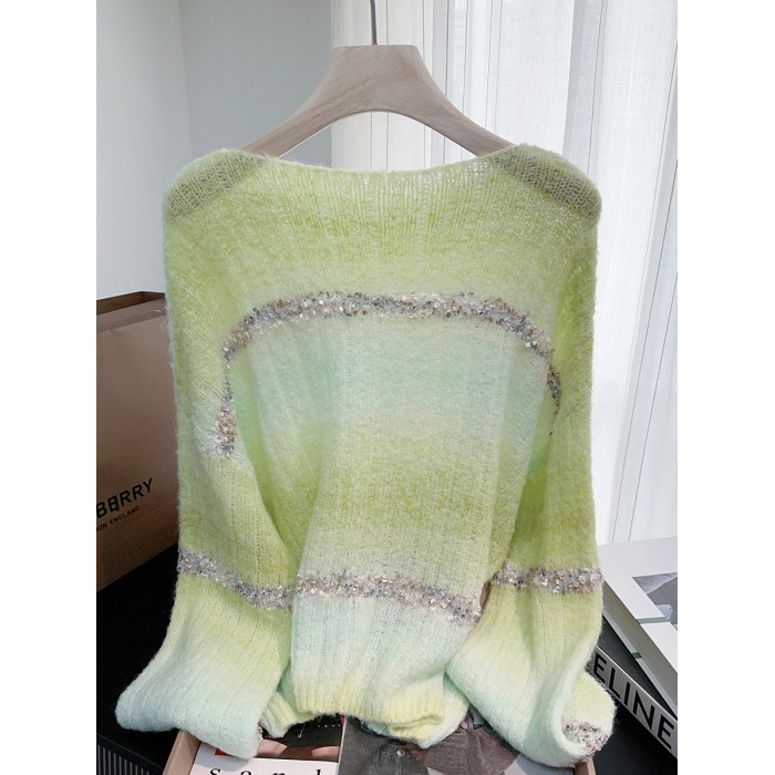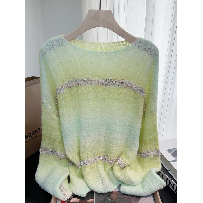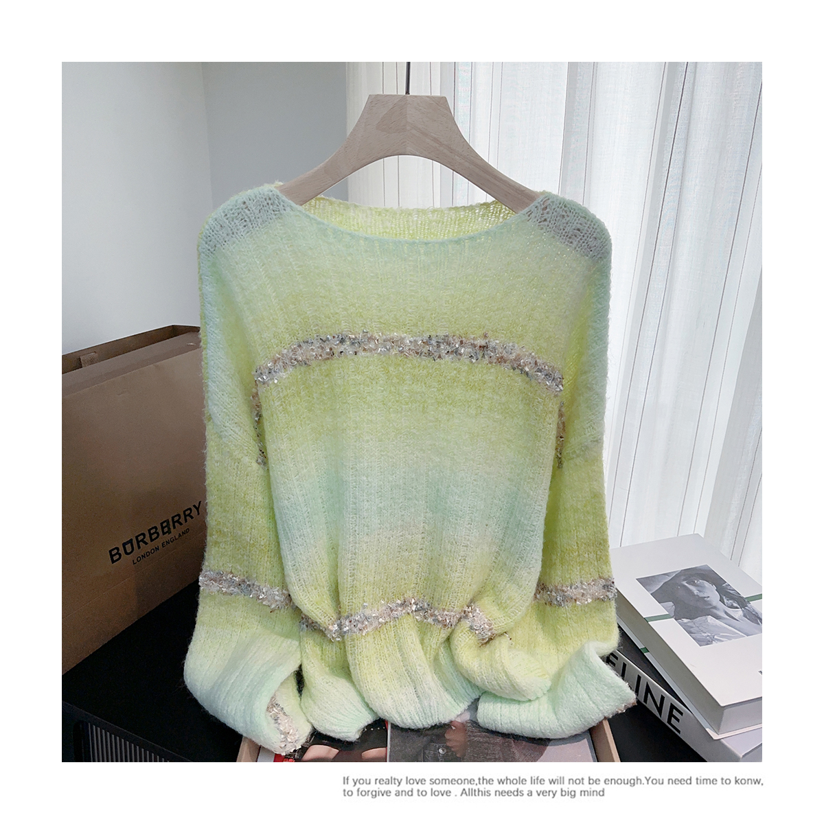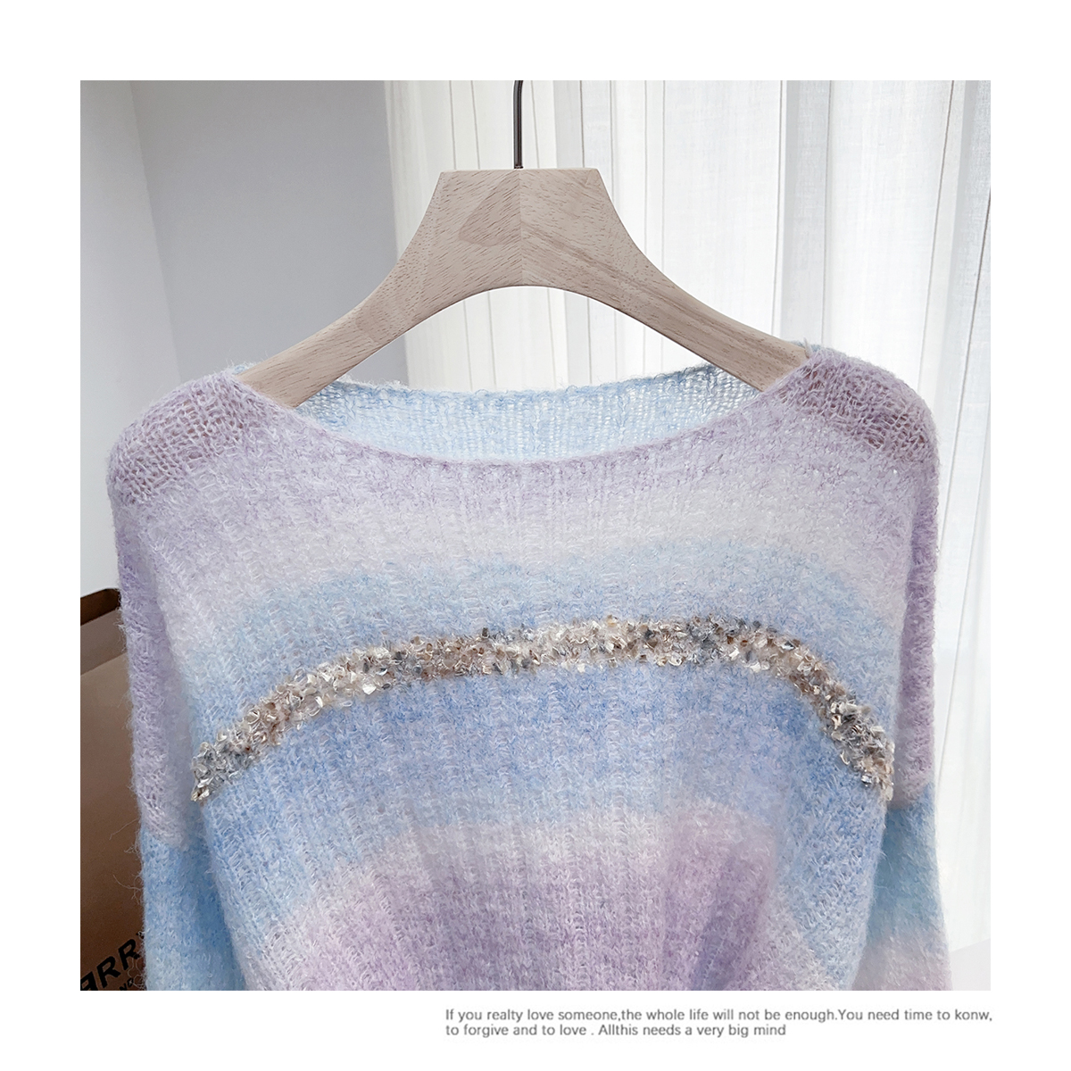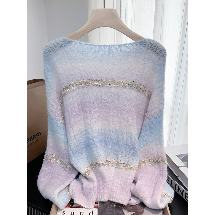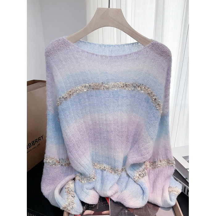 早秋氛圍感漸變色針織上衣女小個子洋氣減齡寬松慵懶軟糯套頭毛衣