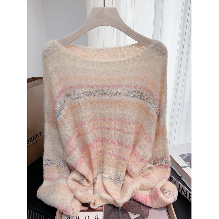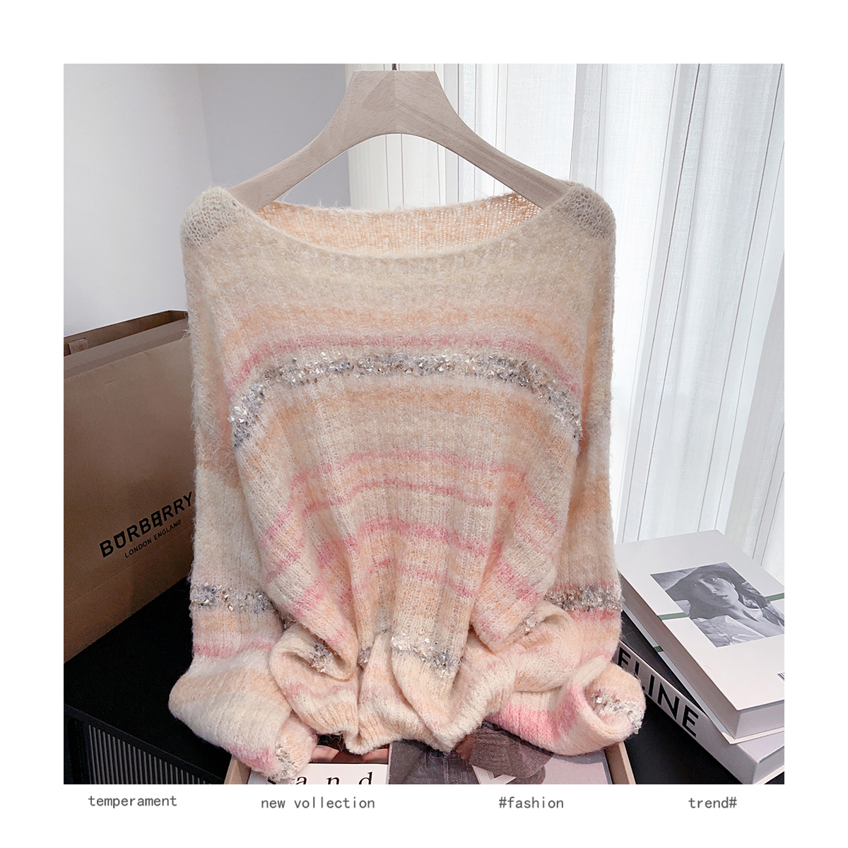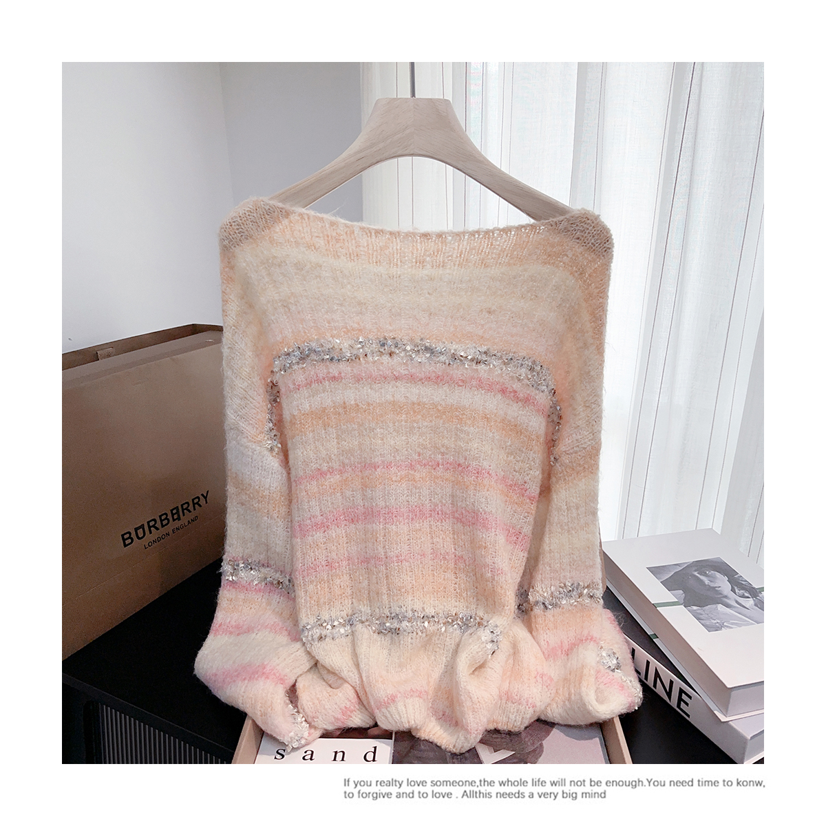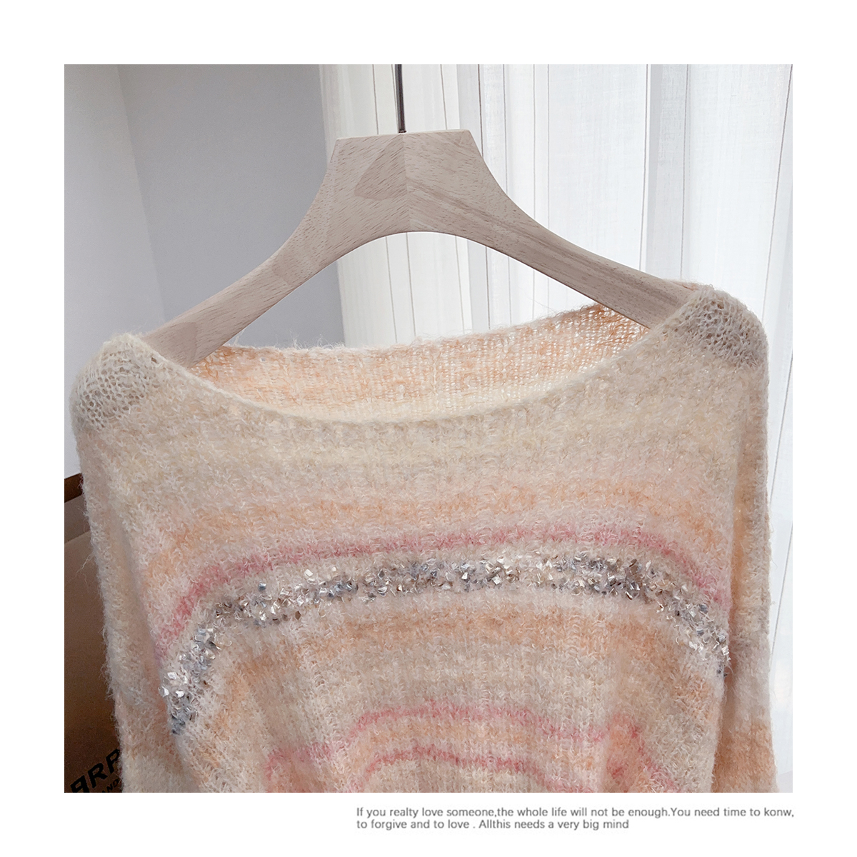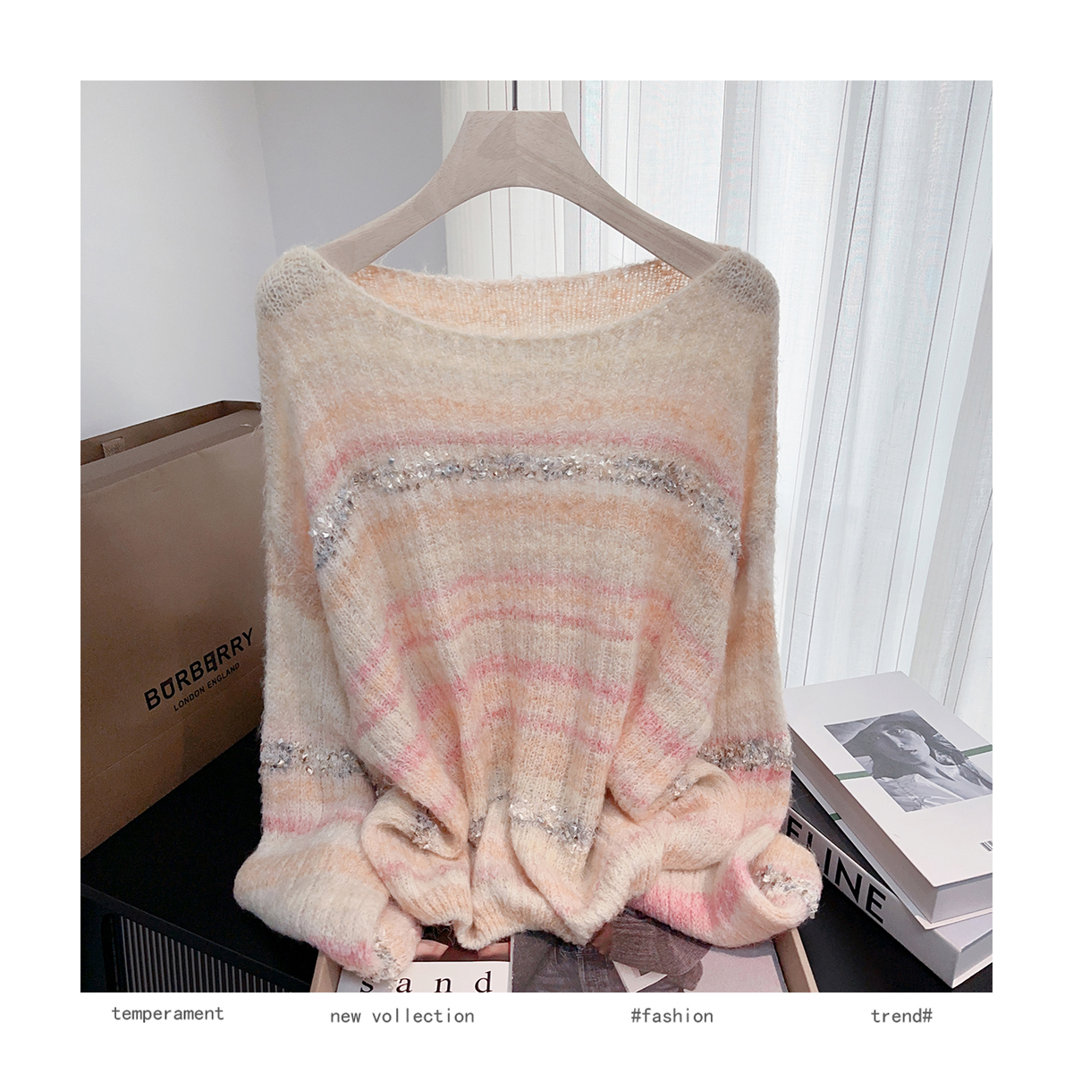 早秋氛圍感漸變色針織上衣女小個子洋氣減齡寬松慵懶軟糯套頭毛衣