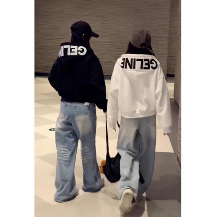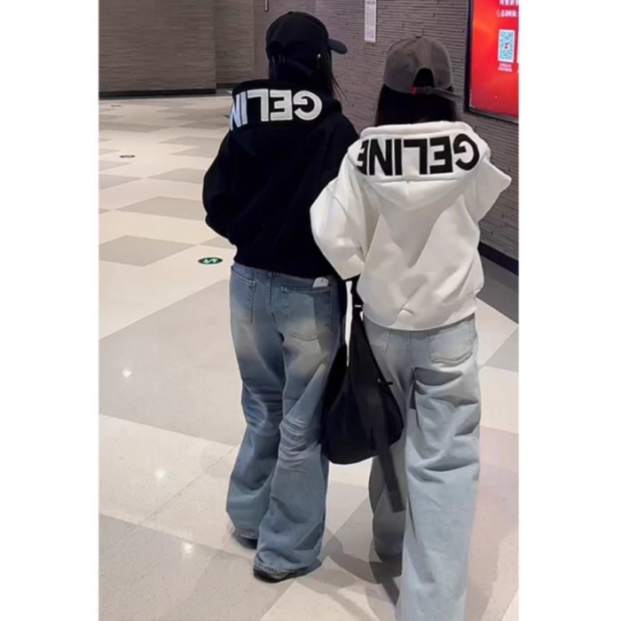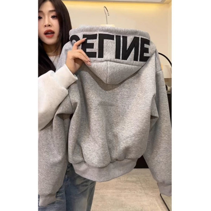 韓版ins個性字母貼布連帽開衫拉鍊衛衣新款寬松百搭慵懶學院外套