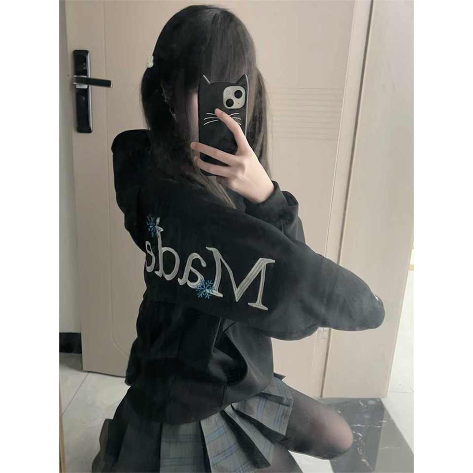 韓版ins個性字母貼布連帽開衫拉鍊衛衣新款寬鬆百搭慵嬾學院外套