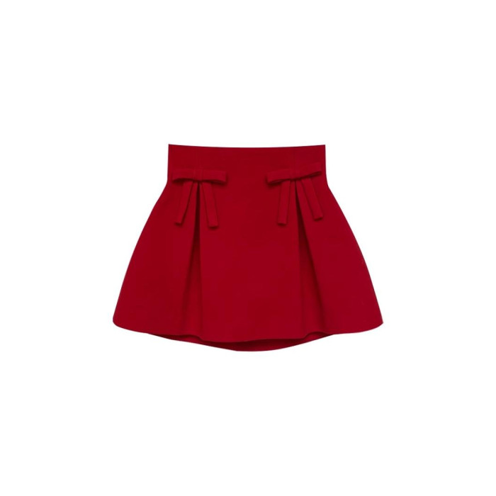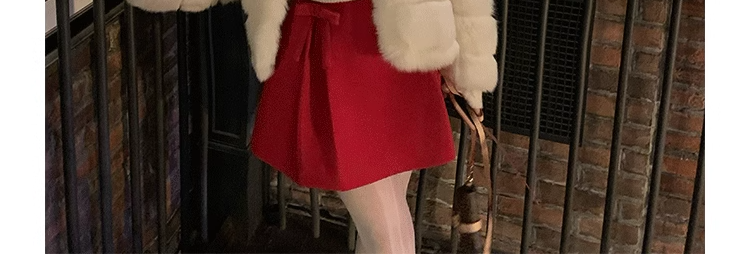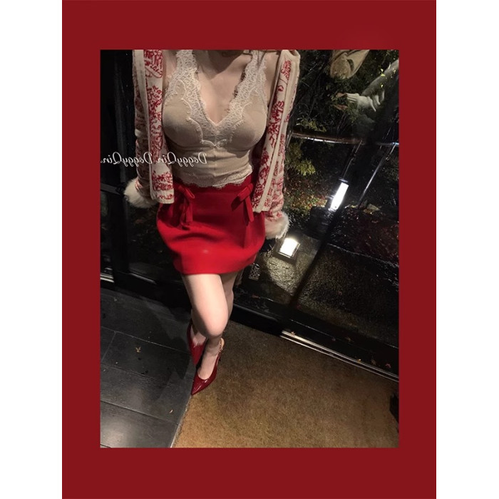 新年聖誕紅蝴蝶結高腰半身裙女2025秋冬收腰甜美辣妹顯瘦A字短裙
