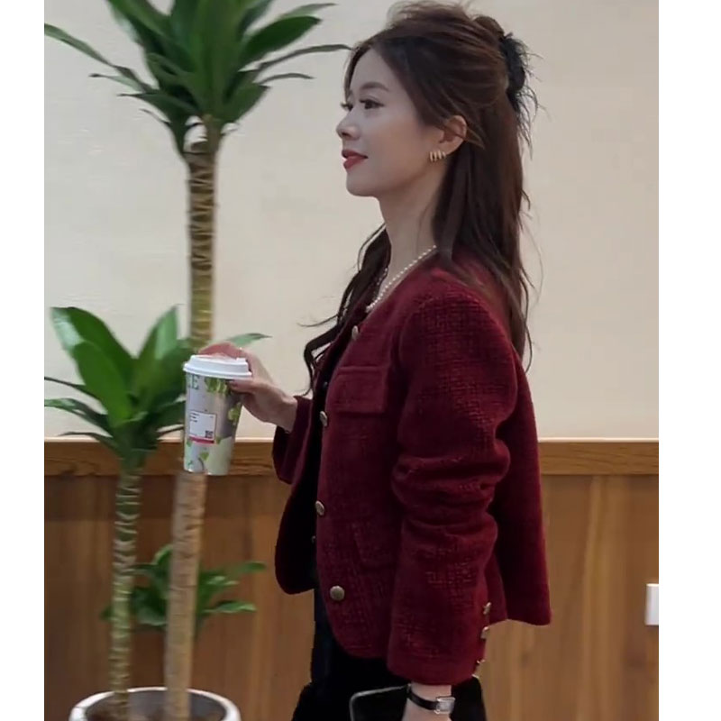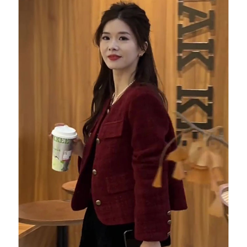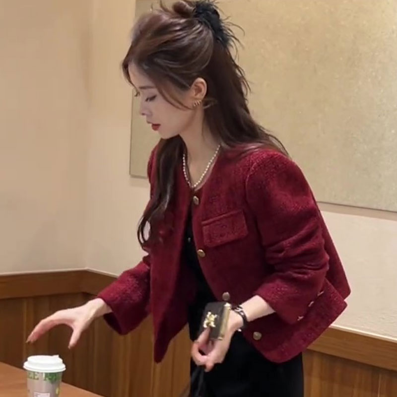 秋冬季新款高級感獨特超好看今年流行新年聖誕紅色女士小香風外套