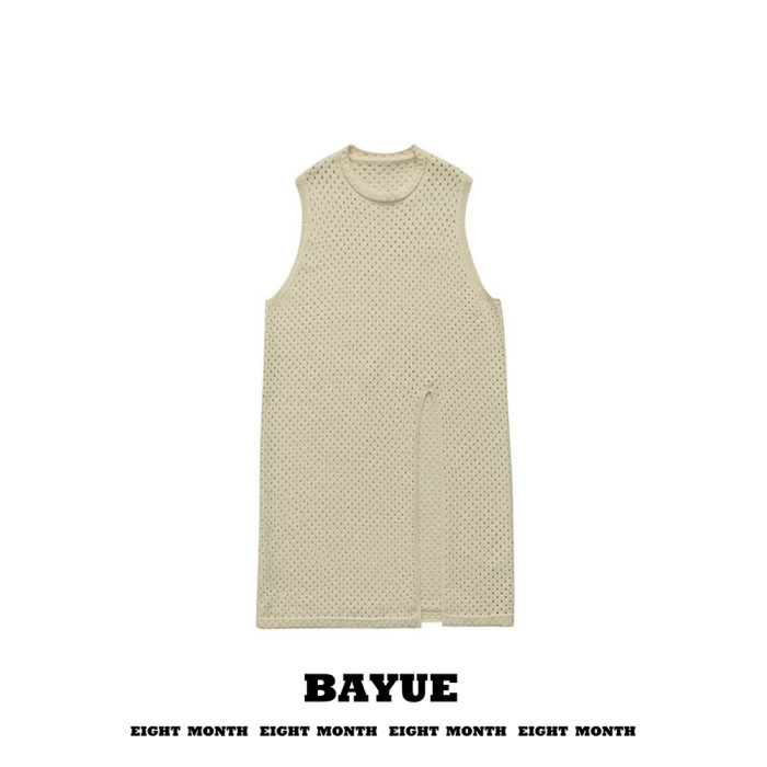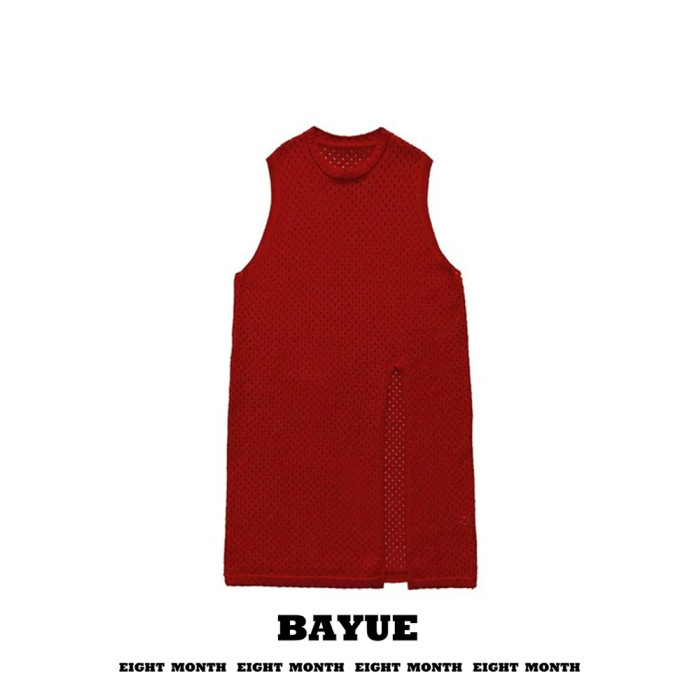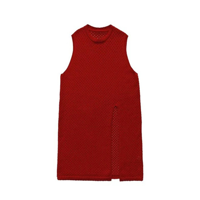 聖誕紅色鏤空馬甲背心裙秋冬文藝內搭曡穿寬松無袖長款開叉連衣裙