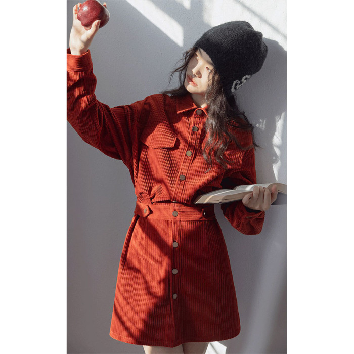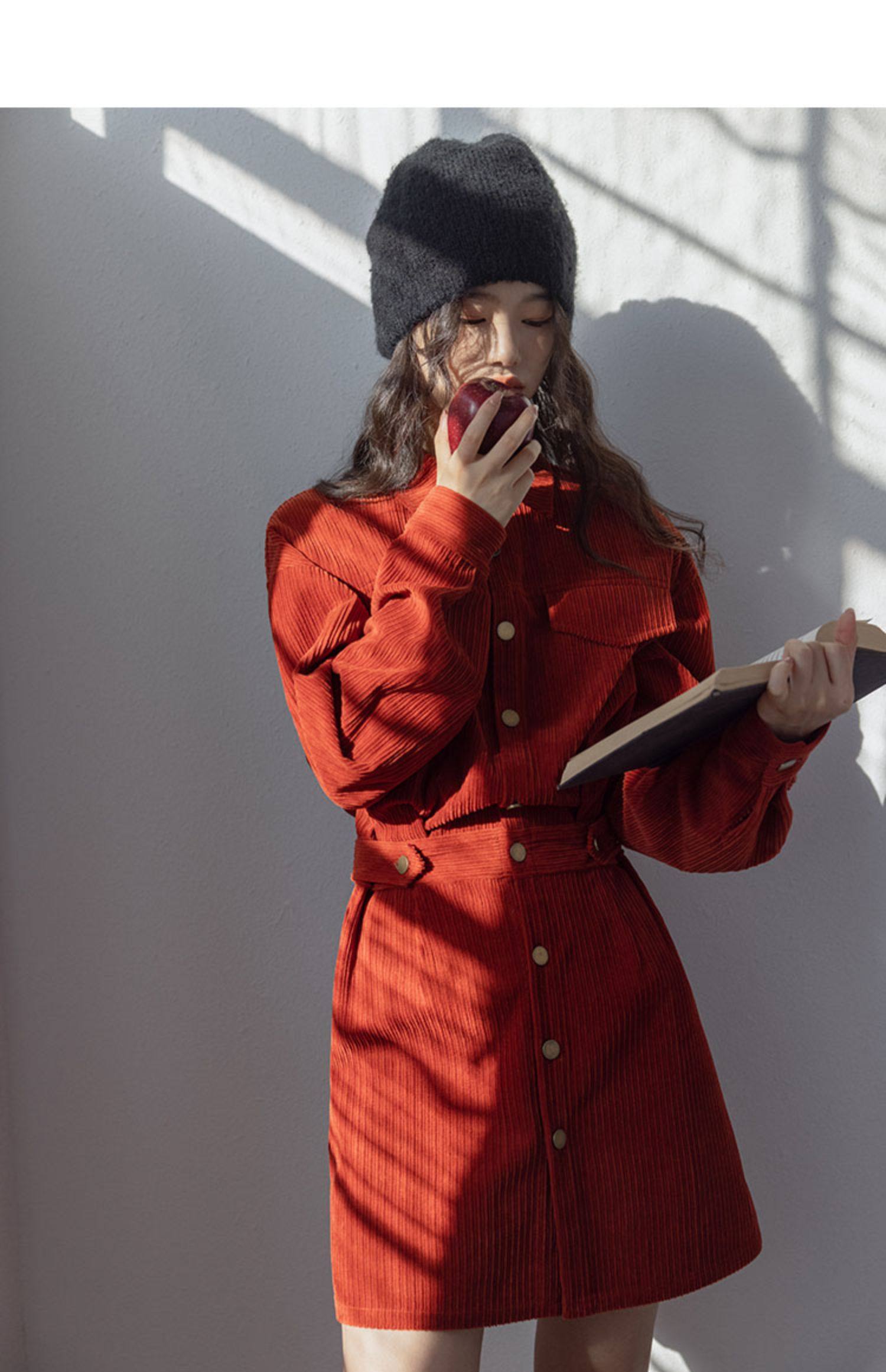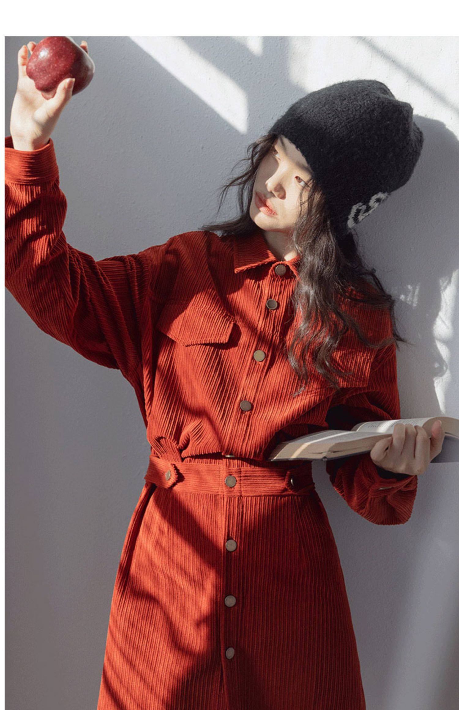 小香風新年戰袍兔年本命年衣服聖誕紅色燈芯絨連衣裙秋冬2025新款