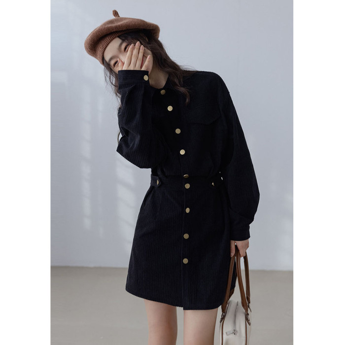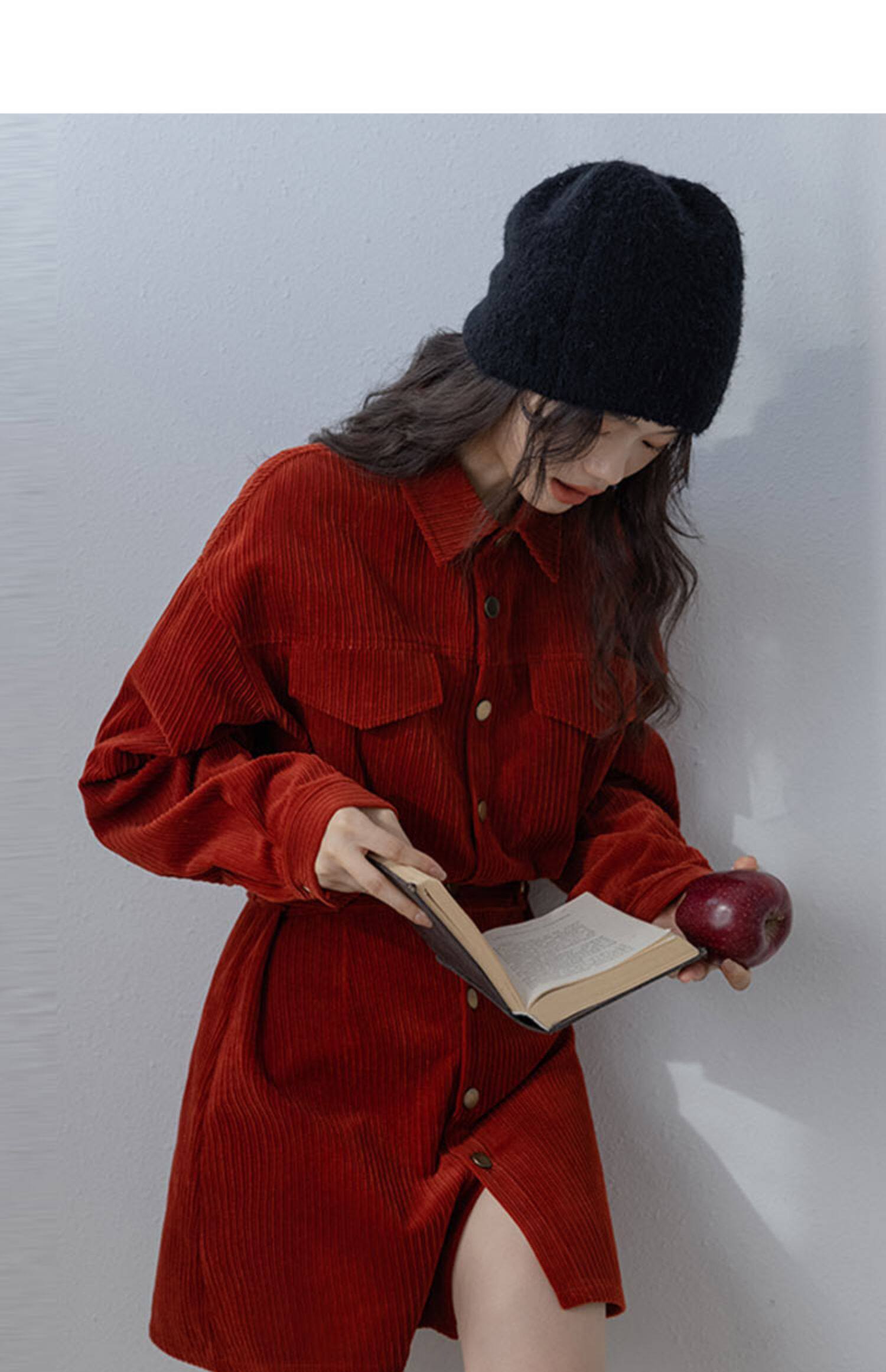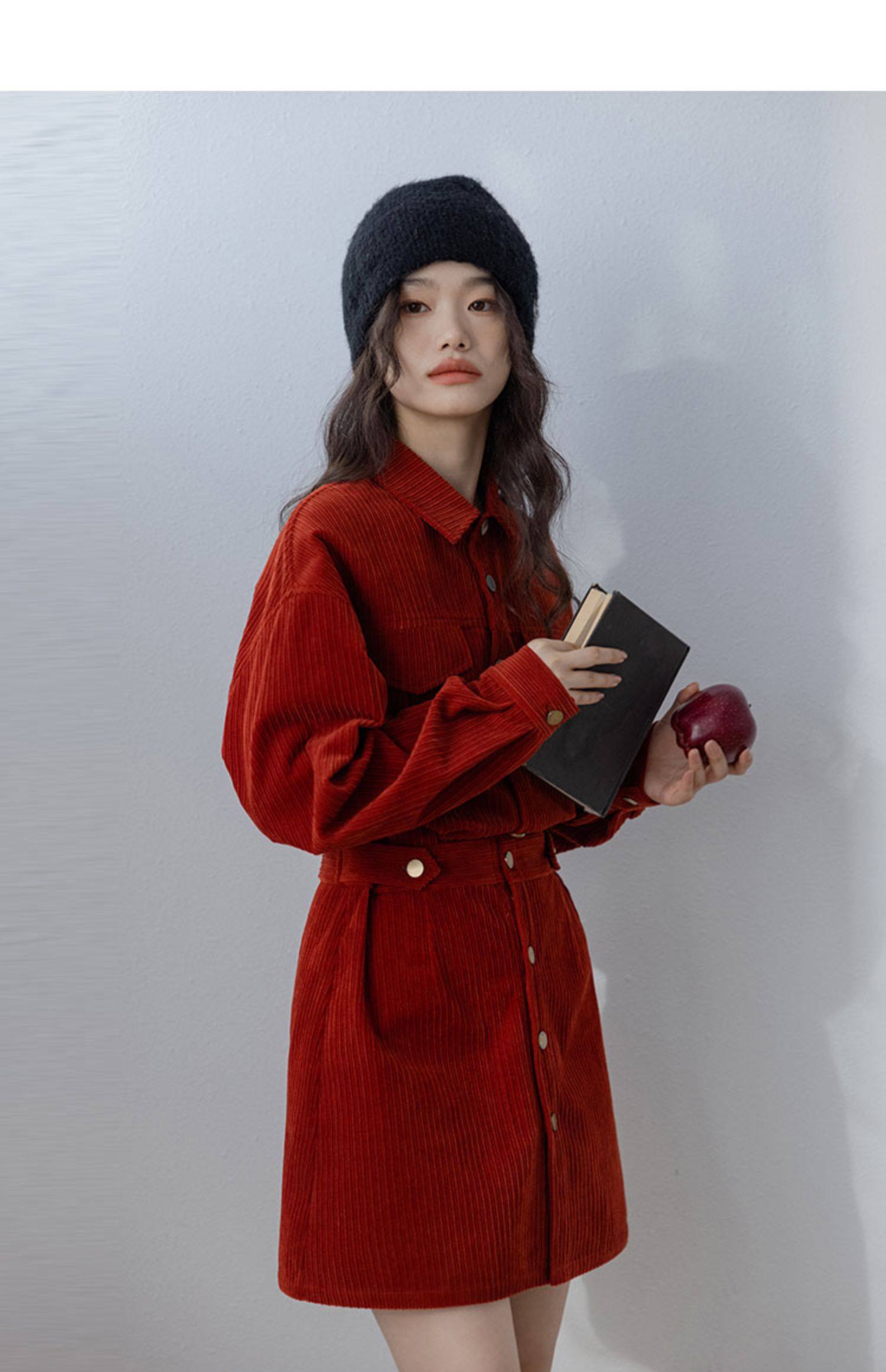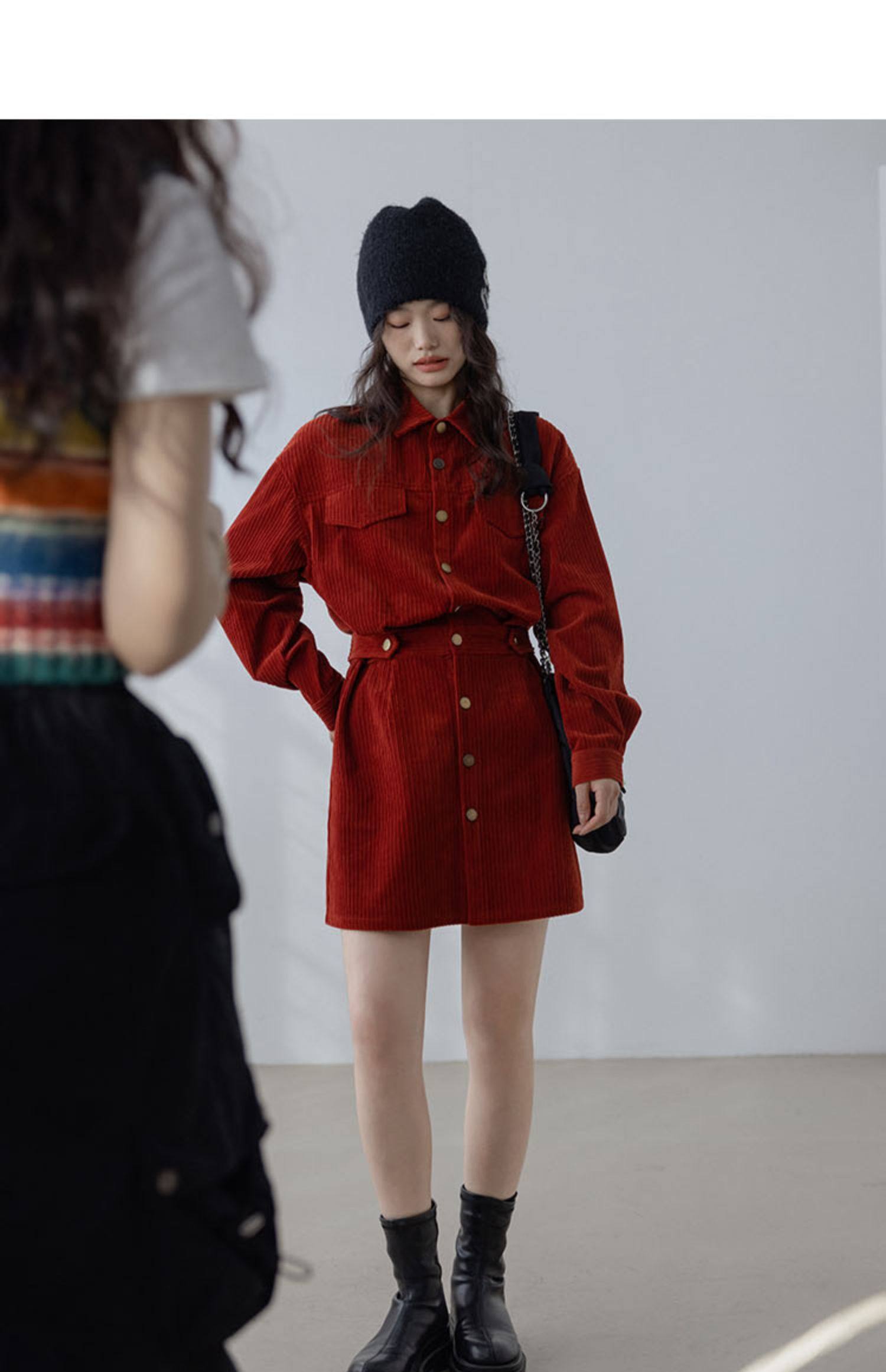 小香風新年戰袍兔年本命年衣服聖誕紅色燈芯絨連衣裙秋冬2025新款