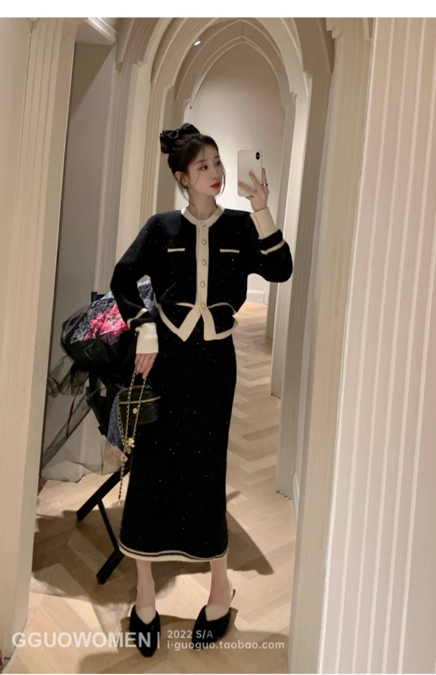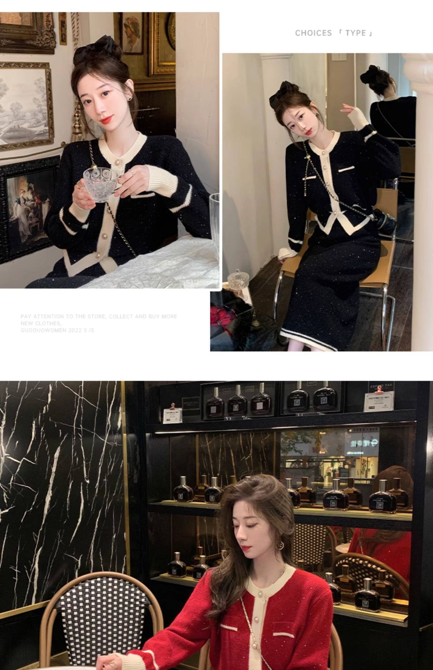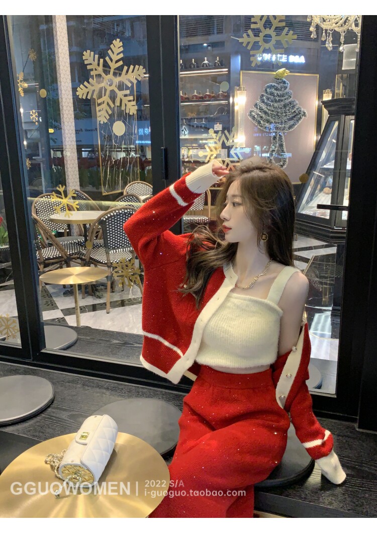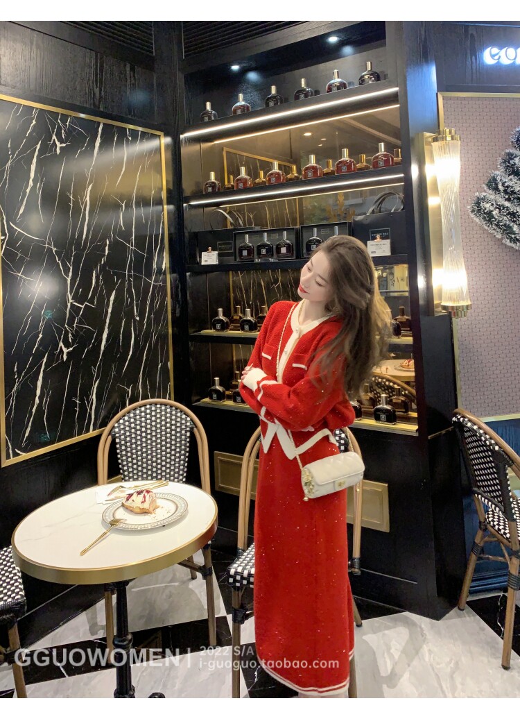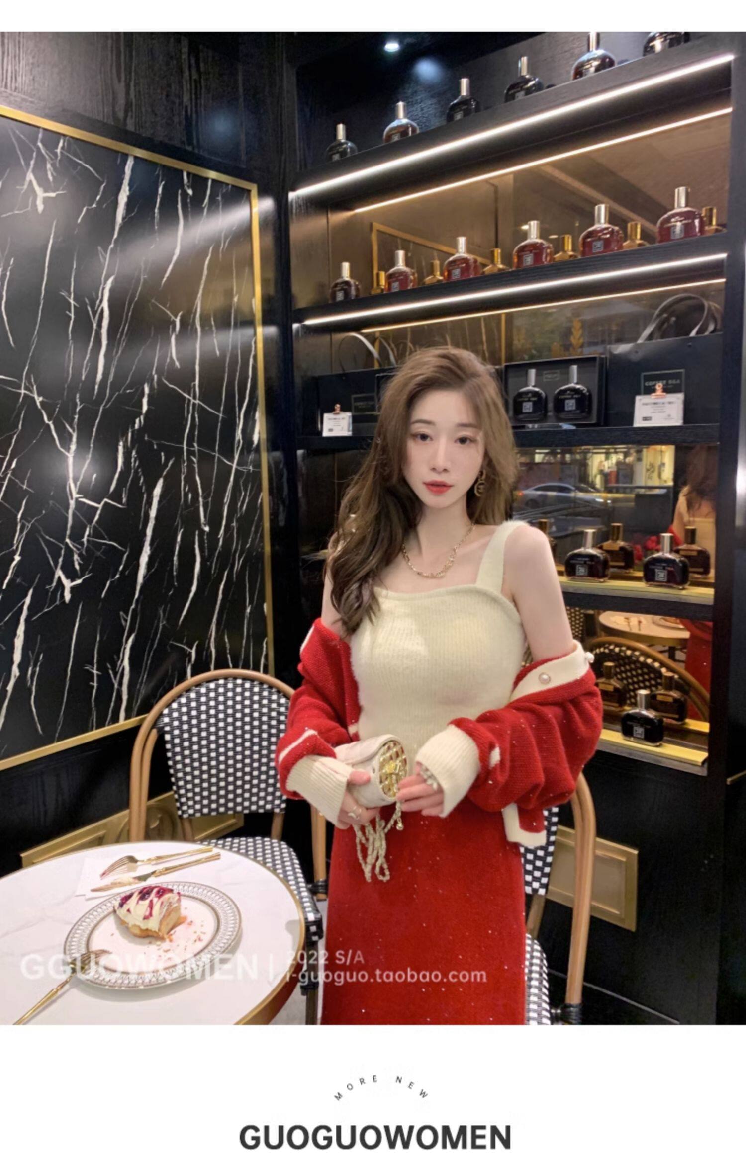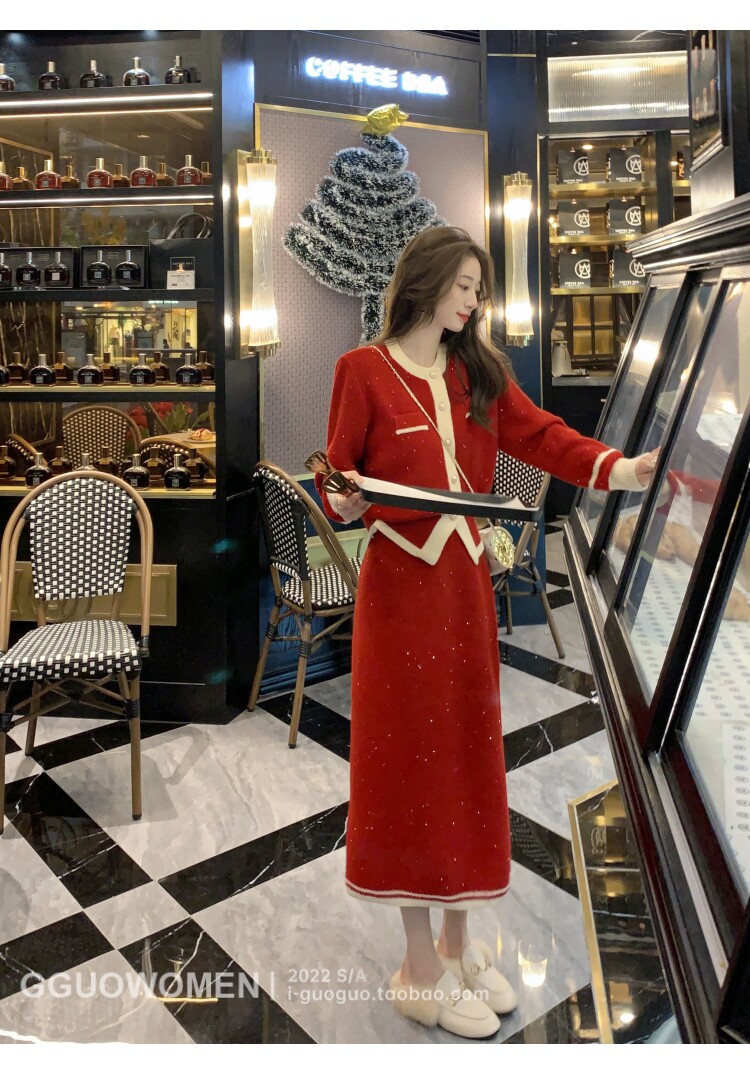 今年流行漂亮時尚減齡氣質聖誕紅色針織毛衣半身裙兩件套裝裙秋冬