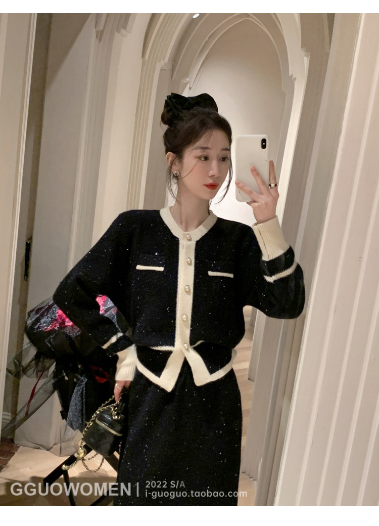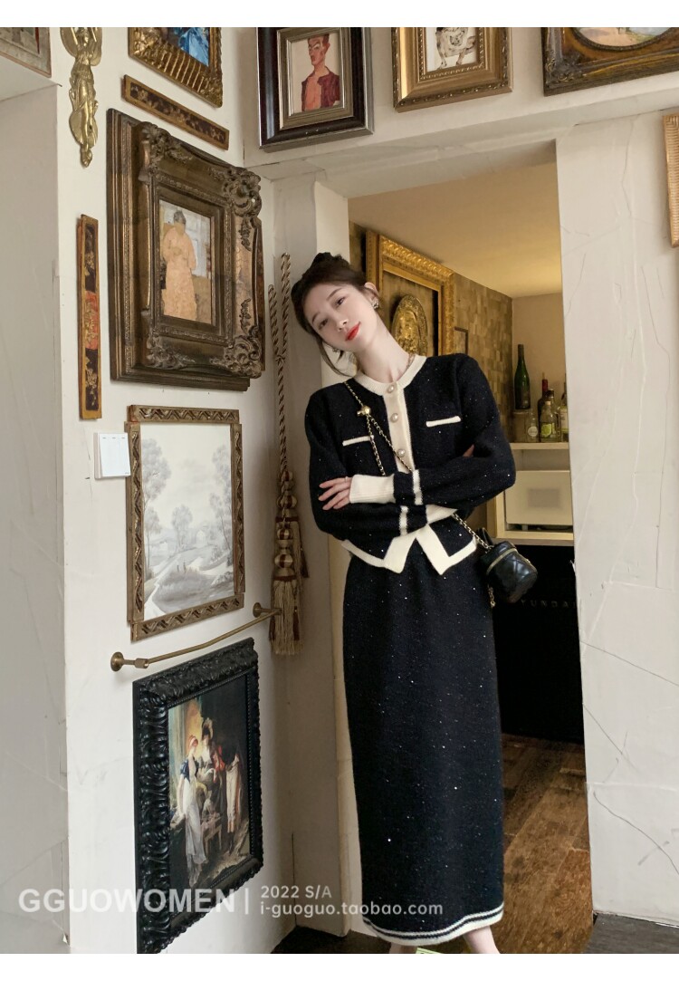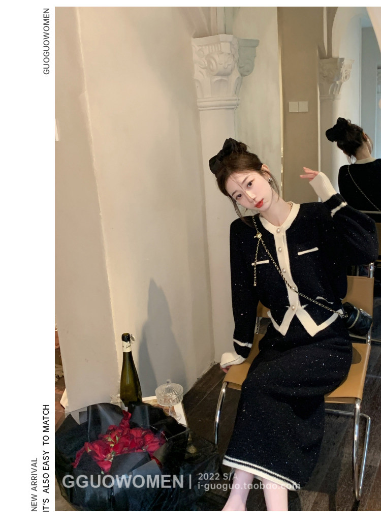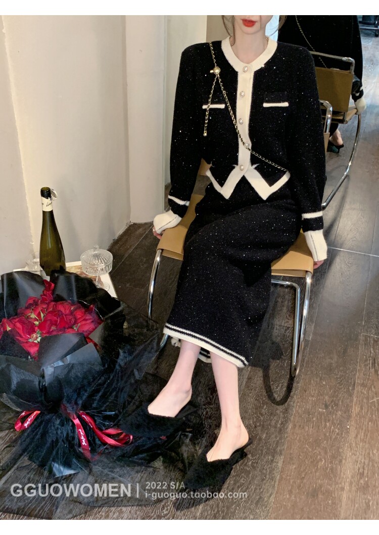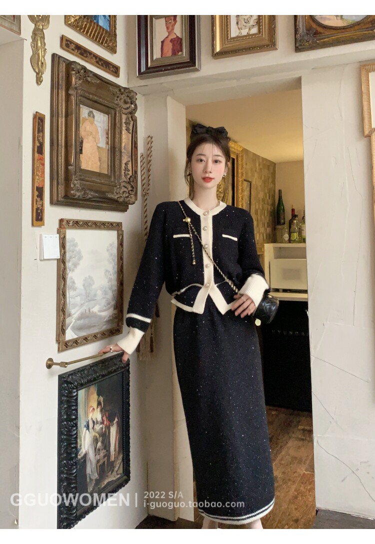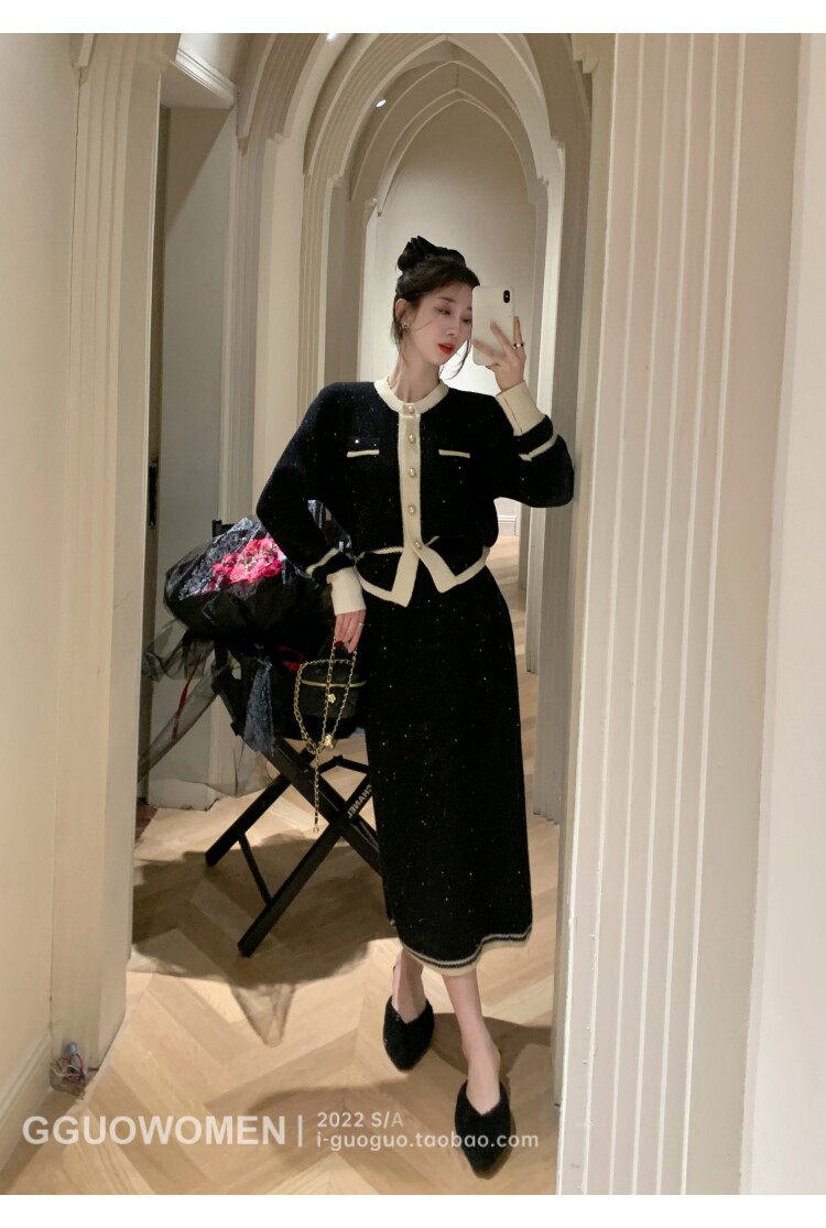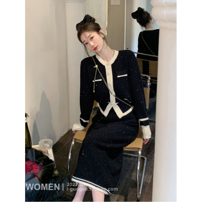今年流行漂亮時尚減齡氣質聖誕紅色針織毛衣半身裙兩件套裝裙秋冬