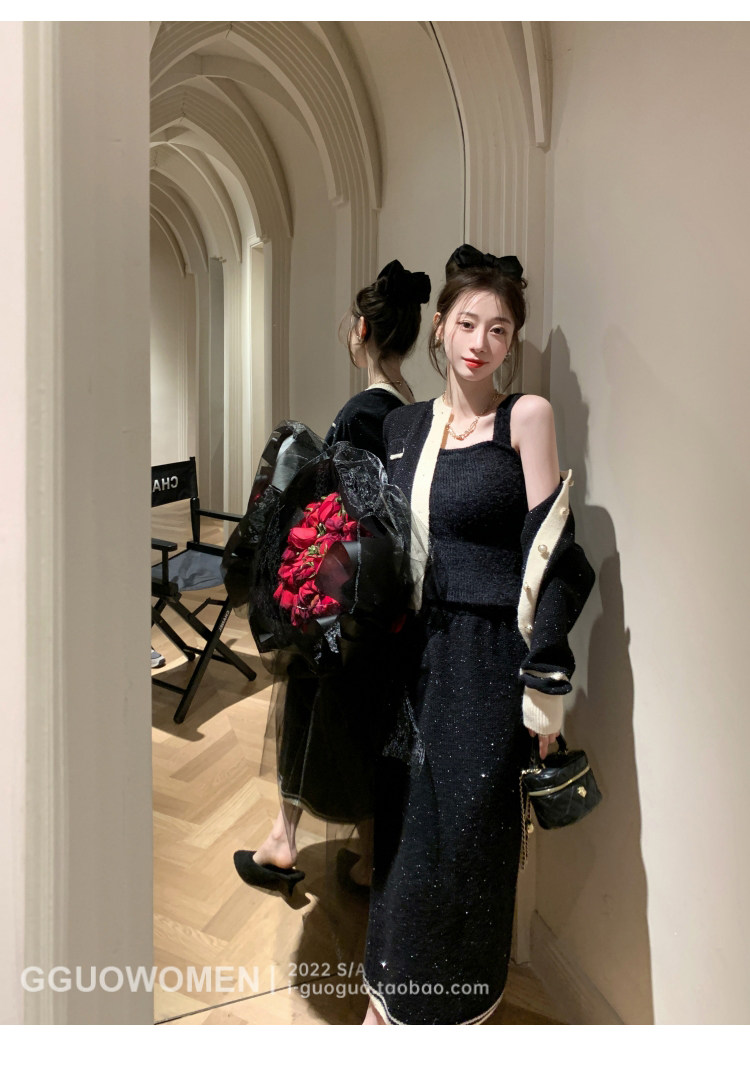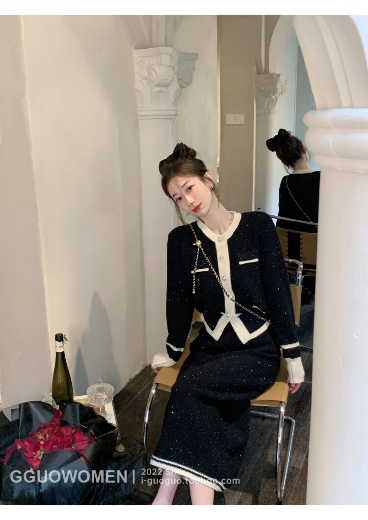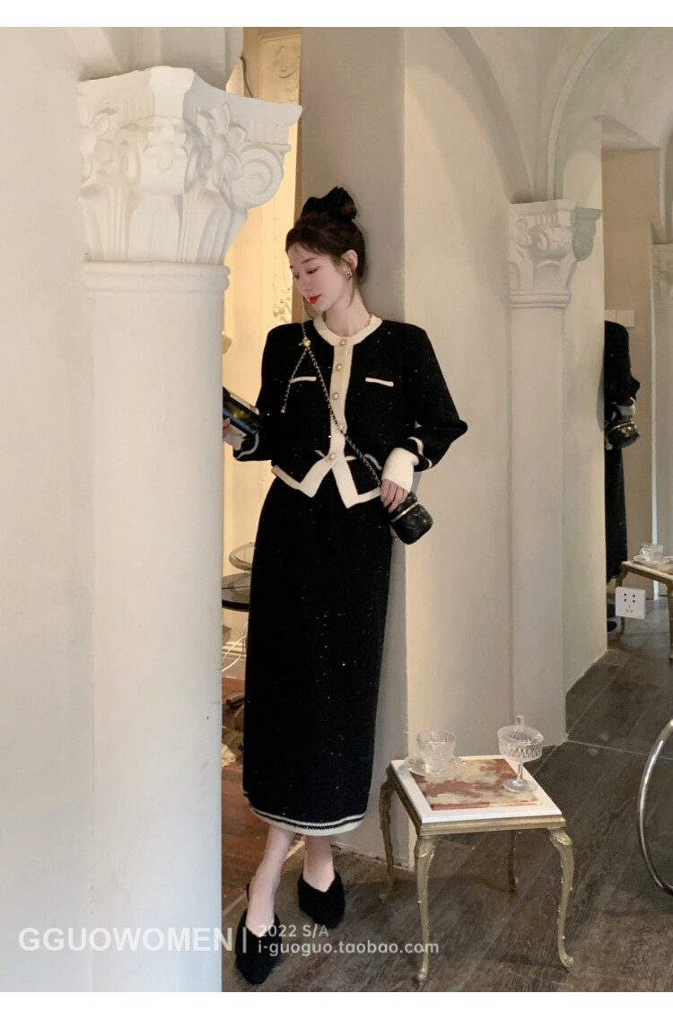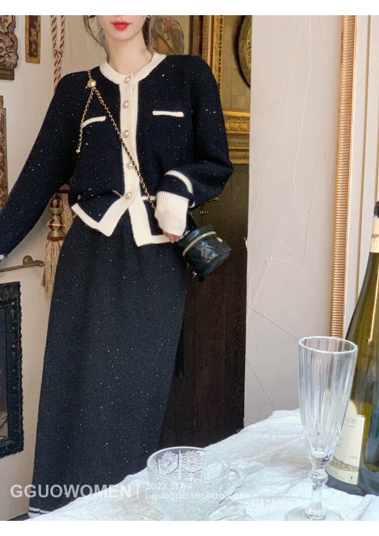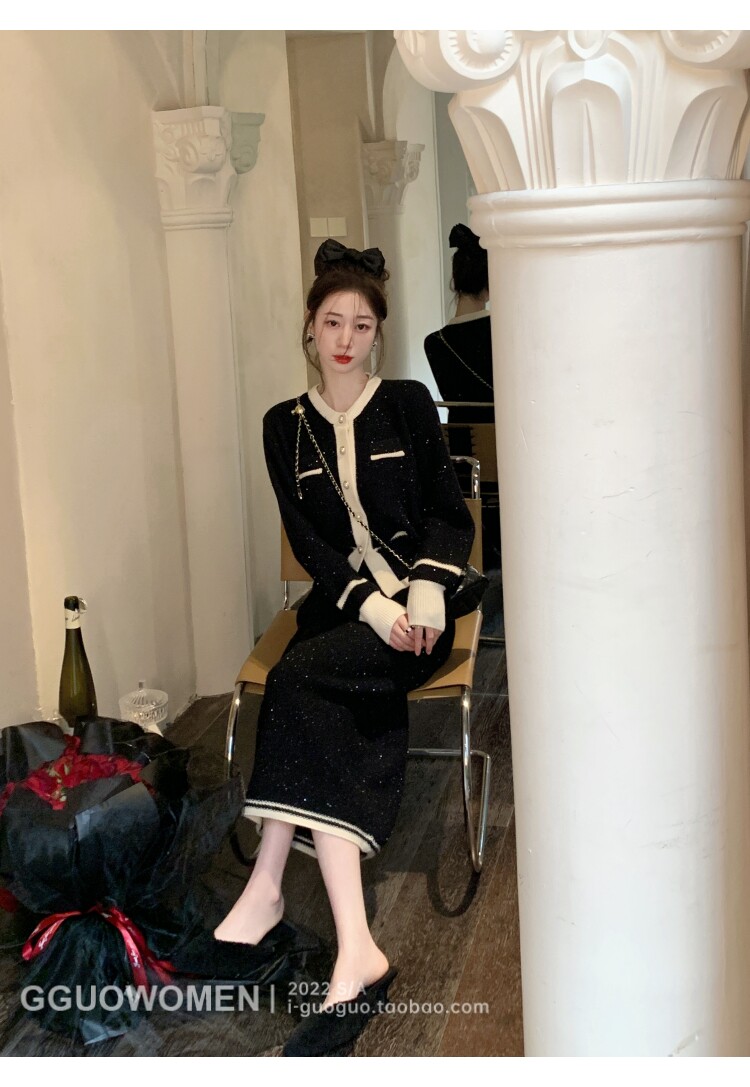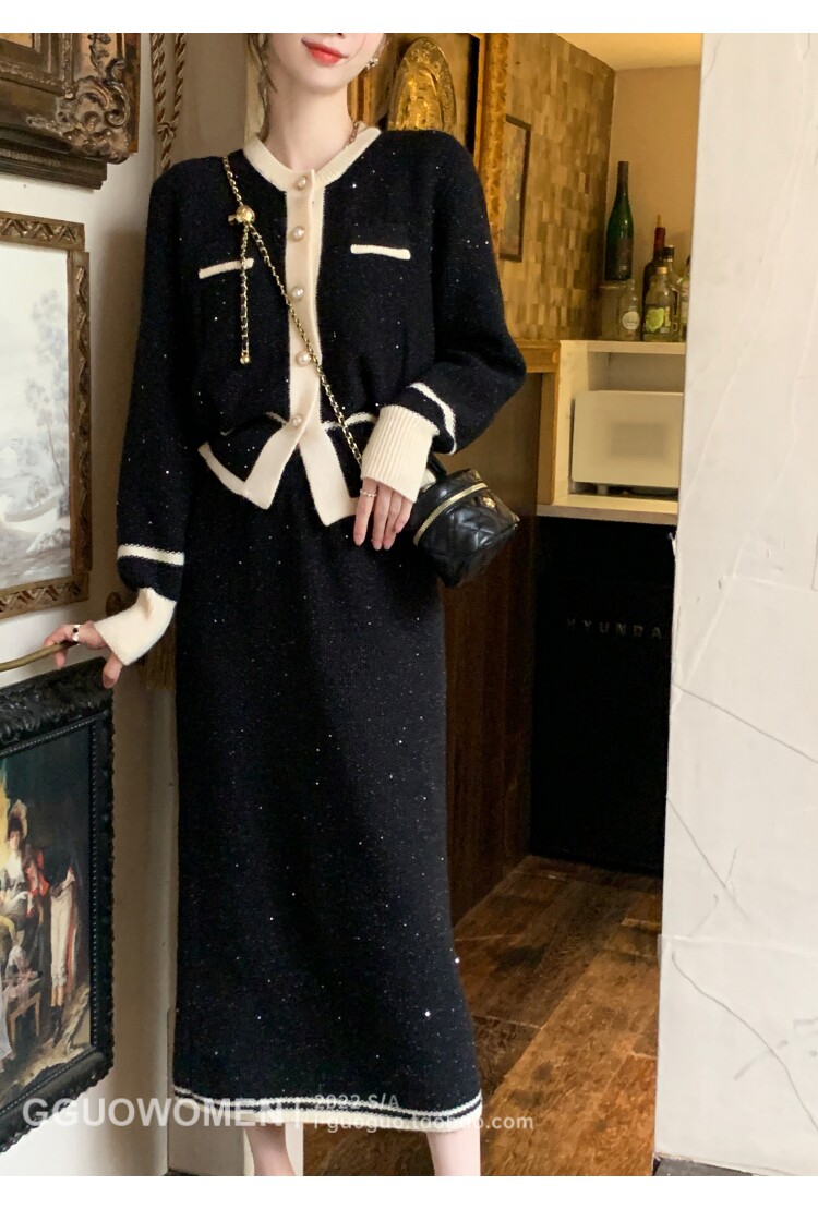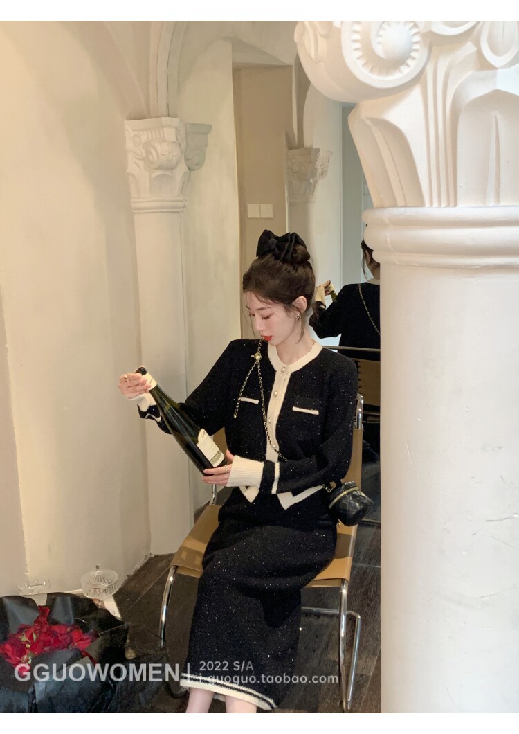 今年流行漂亮時尚減齡氣質聖誕紅色針織毛衣半身裙兩件套裝裙秋冬