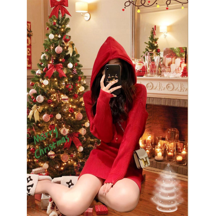 小香風高級感聖誕紅色穿搭針織連衣裙2025年秋冬新款冬季裙子女裝