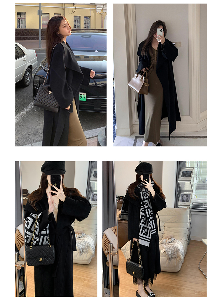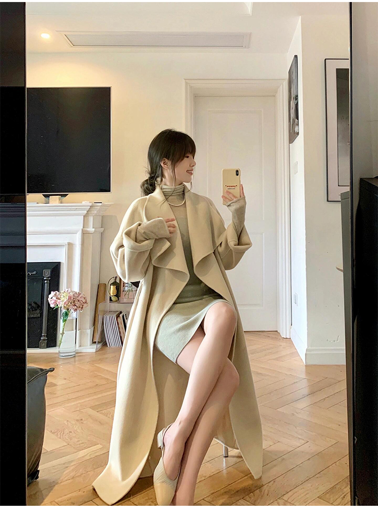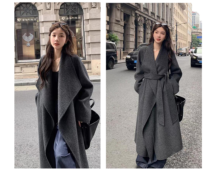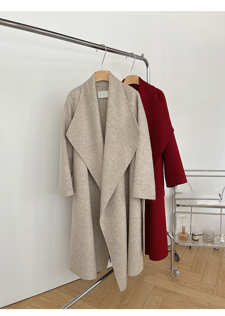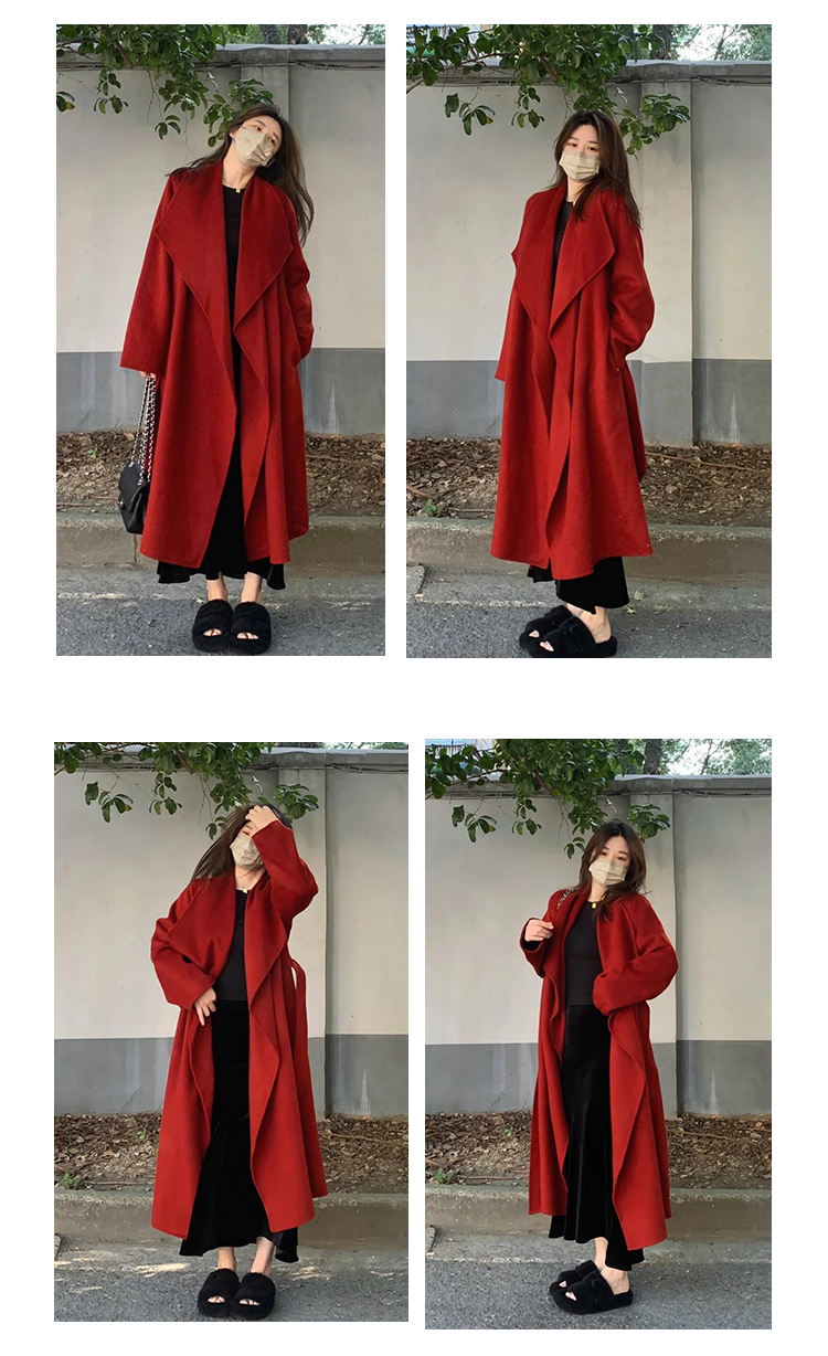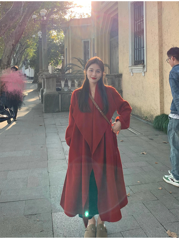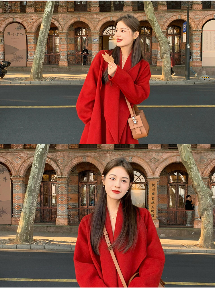 雙面羊毛大衣女2025冬季高級感聖誕紅色中長款系帶收腰毛呢外套女