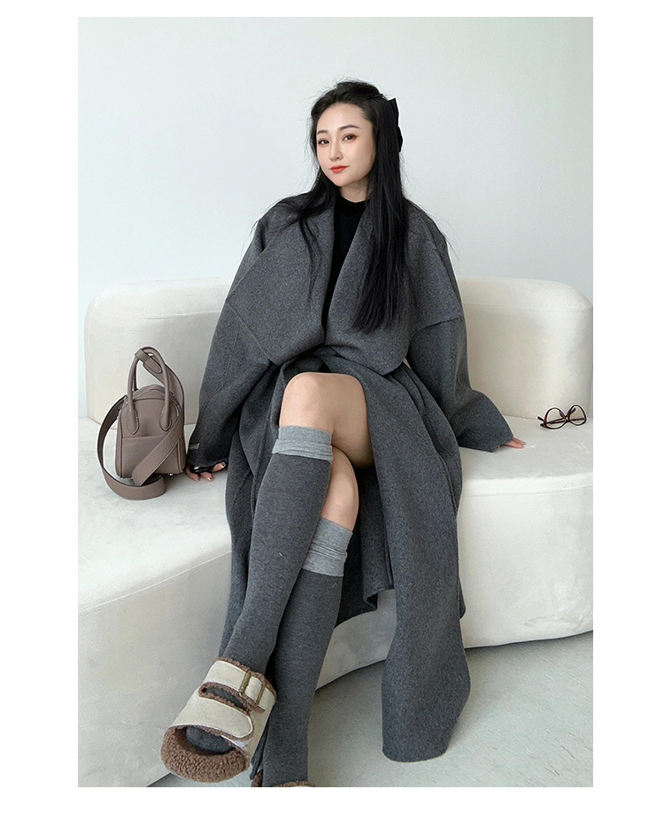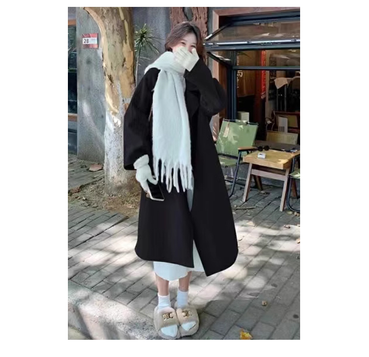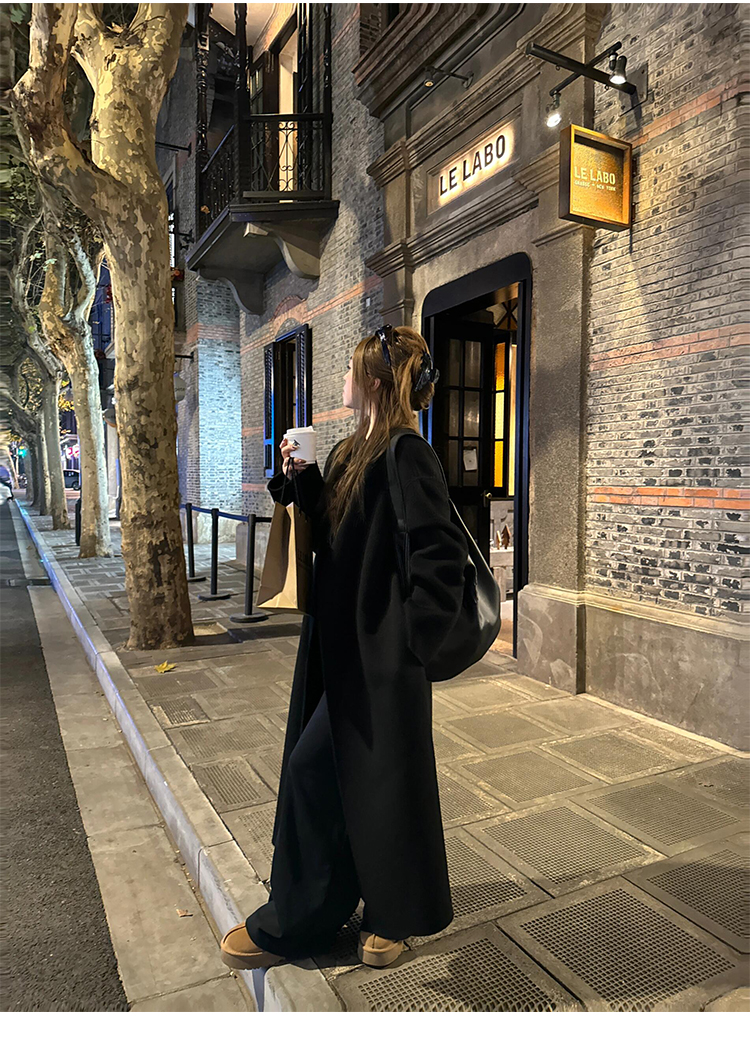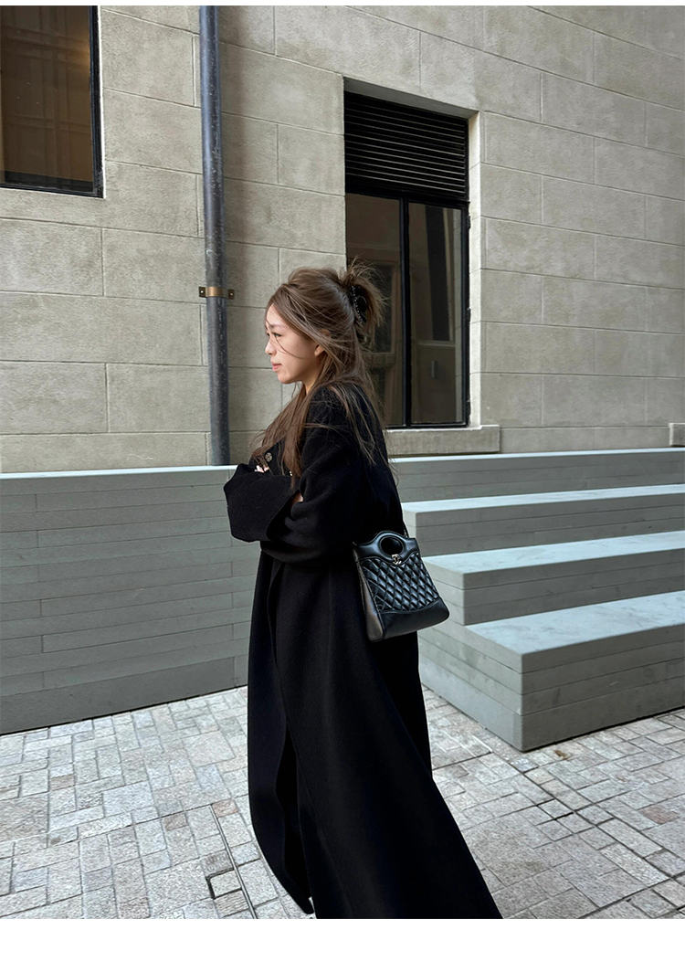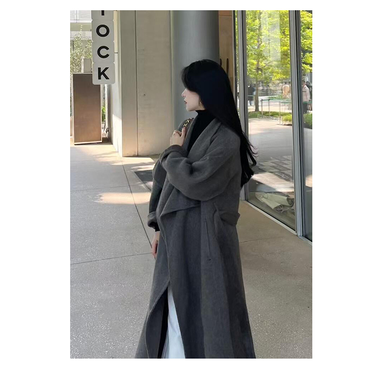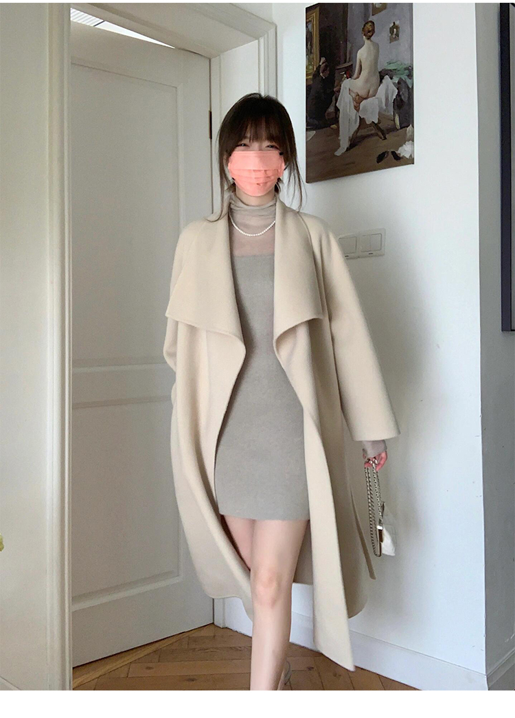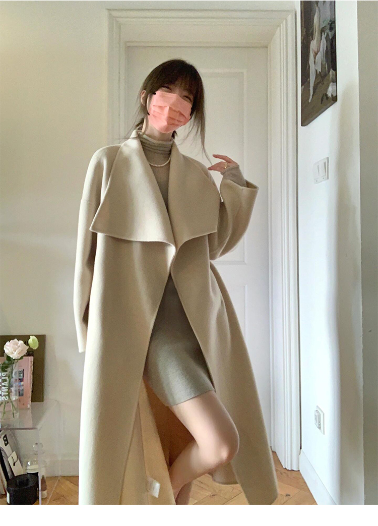 雙面羊毛大衣女2025冬季高級感聖誕紅色中長款系帶收腰毛呢外套女