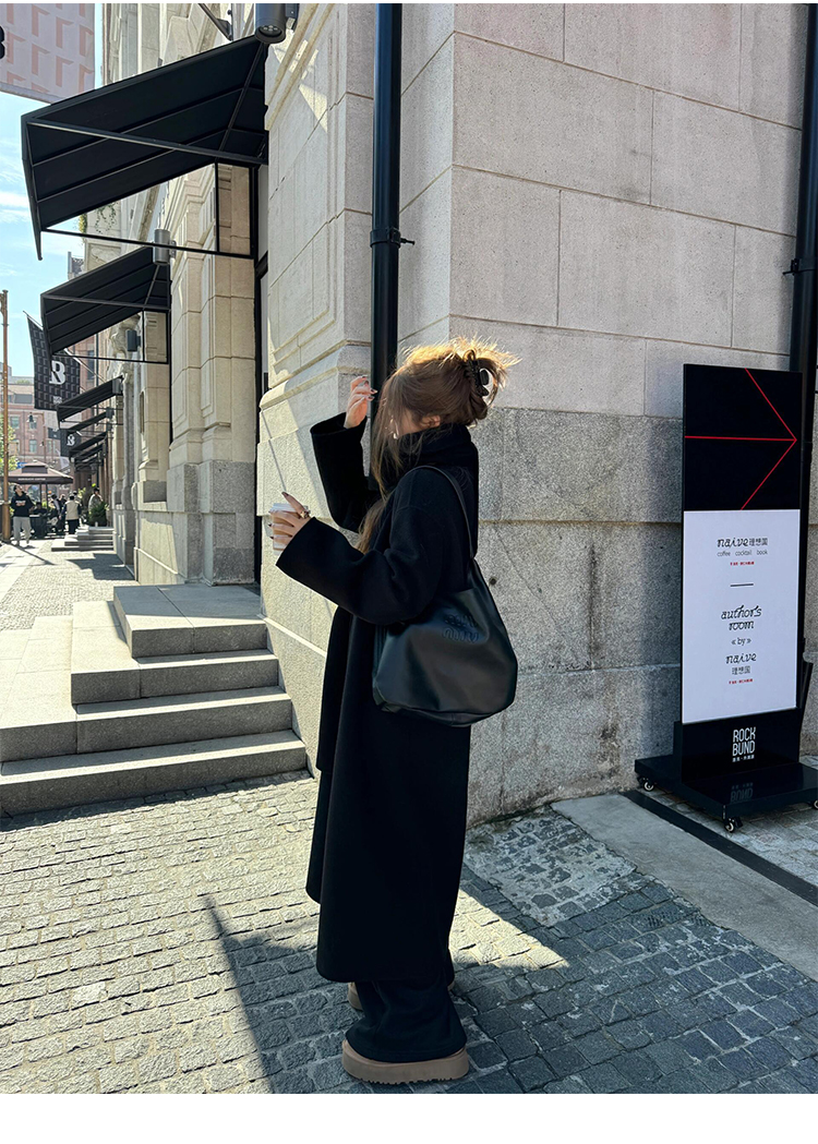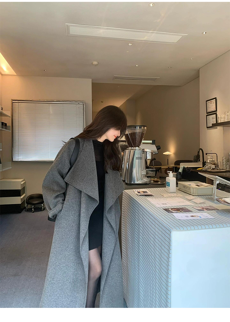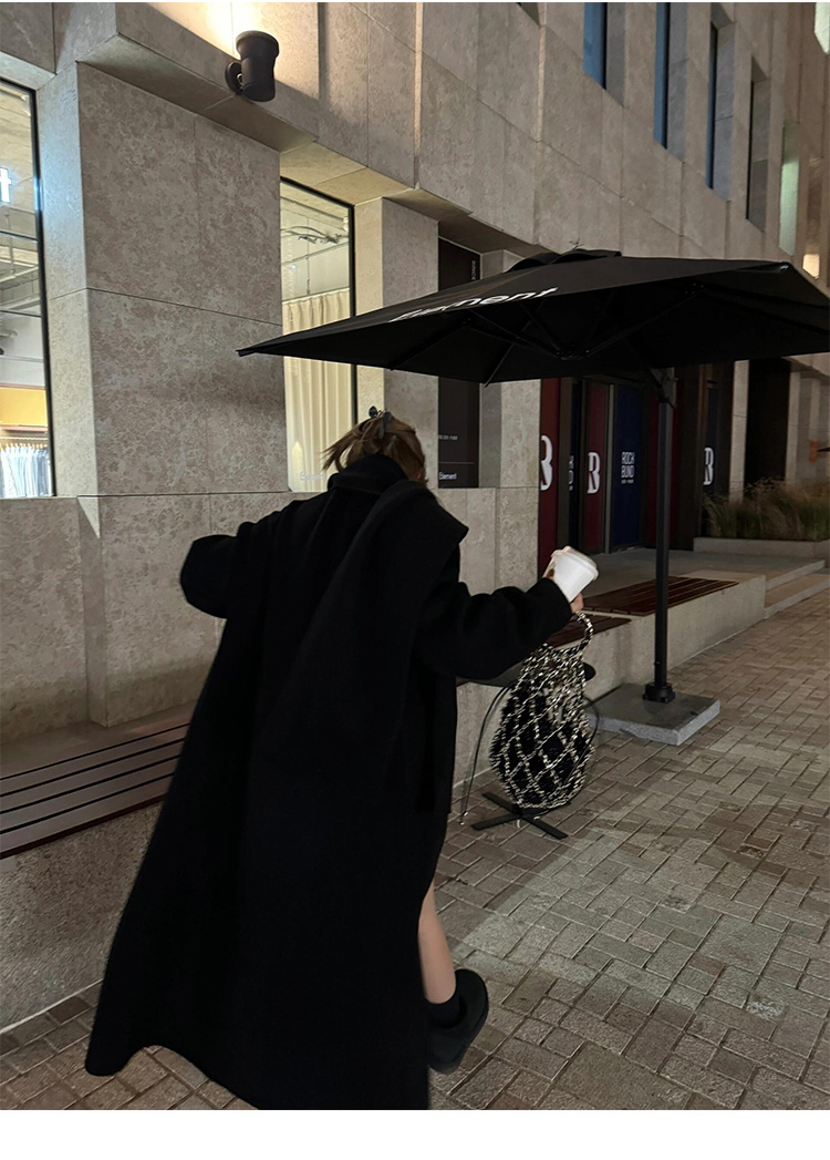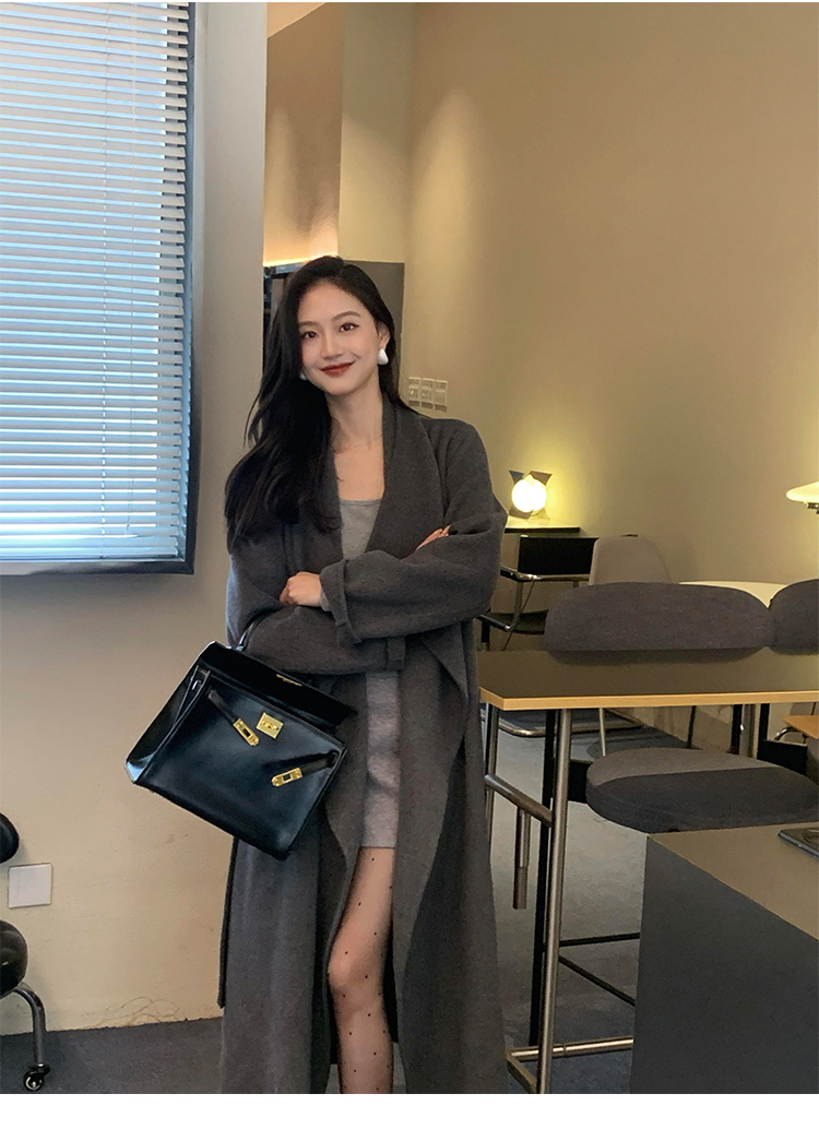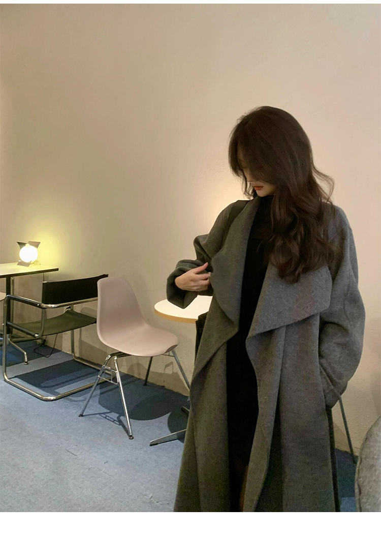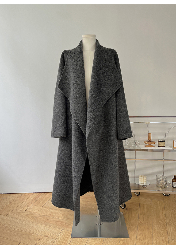 雙面羊毛大衣女2025冬季高級感聖誕紅色中長款系帶收腰毛呢外套女