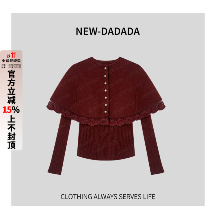 利達NEWDADA聖誕紅色鬭篷披肩毛衣女針織打底衫兩件套千金TDK3623