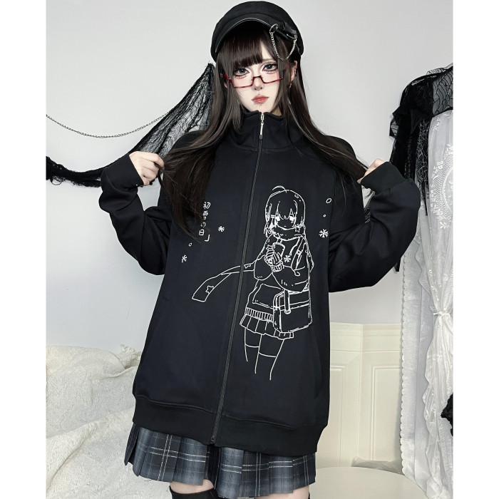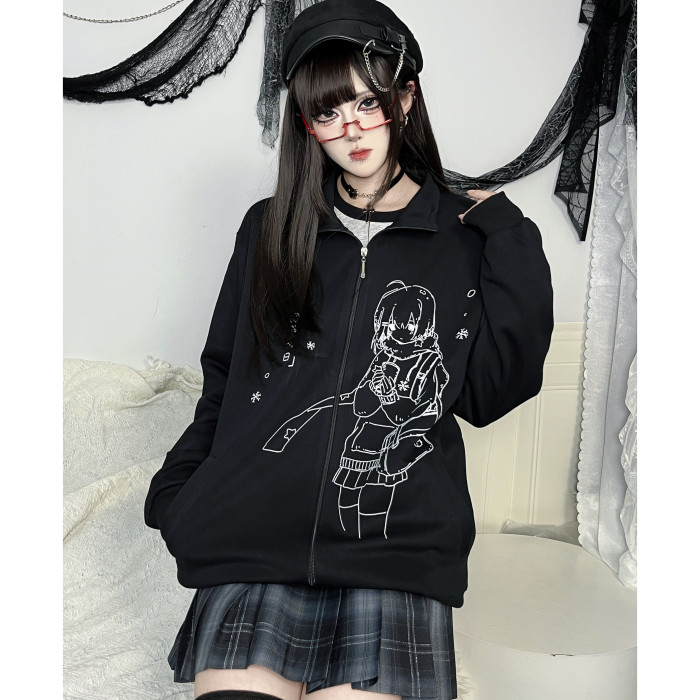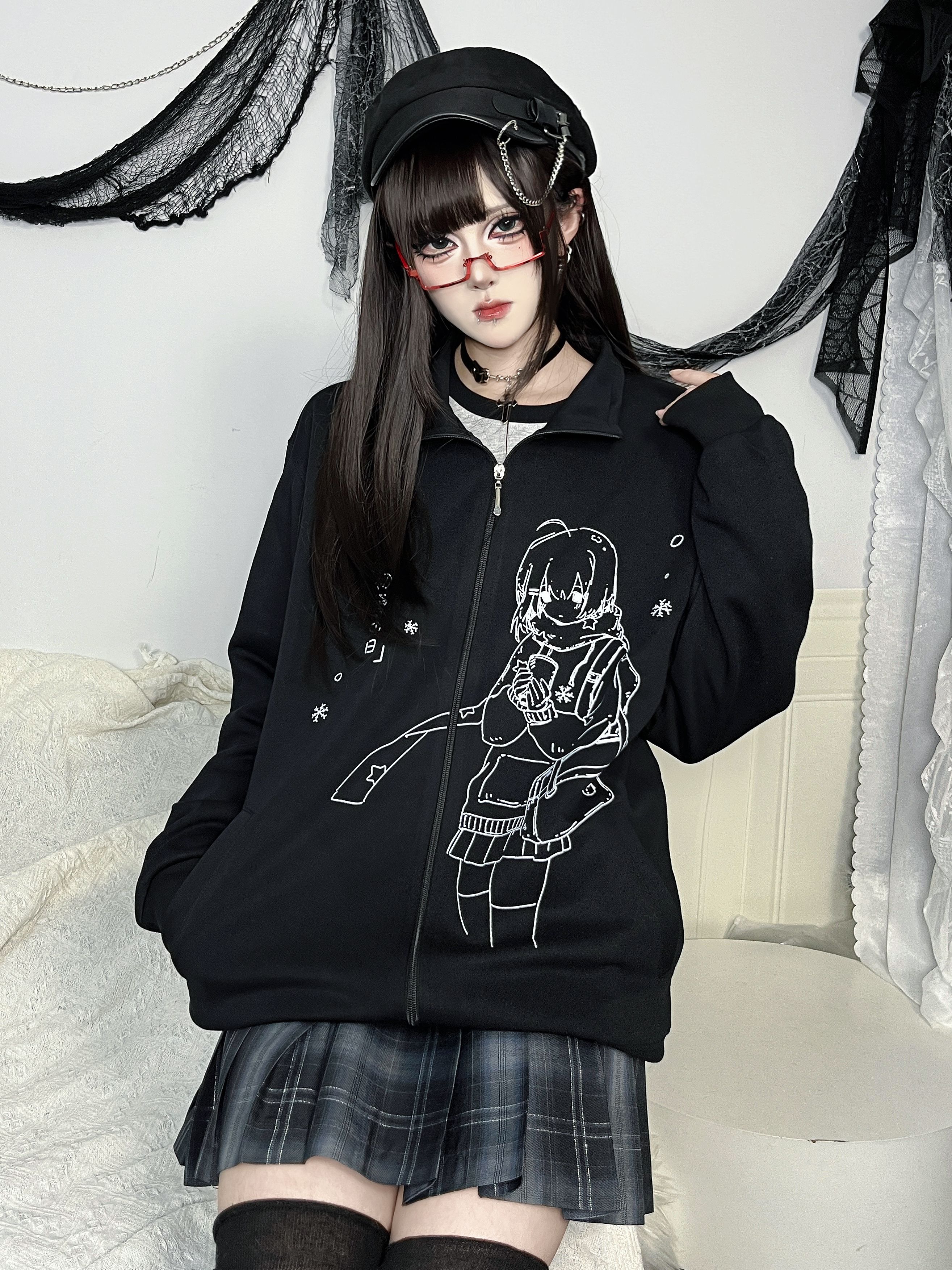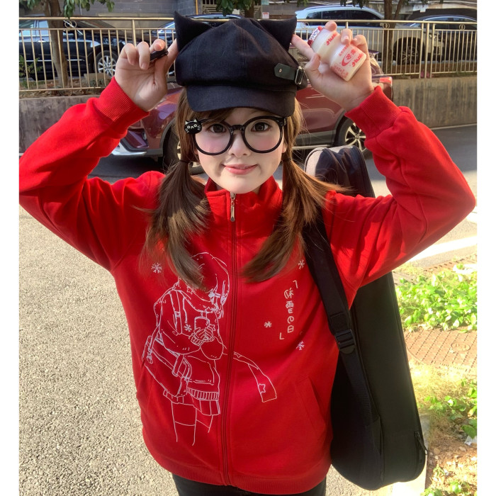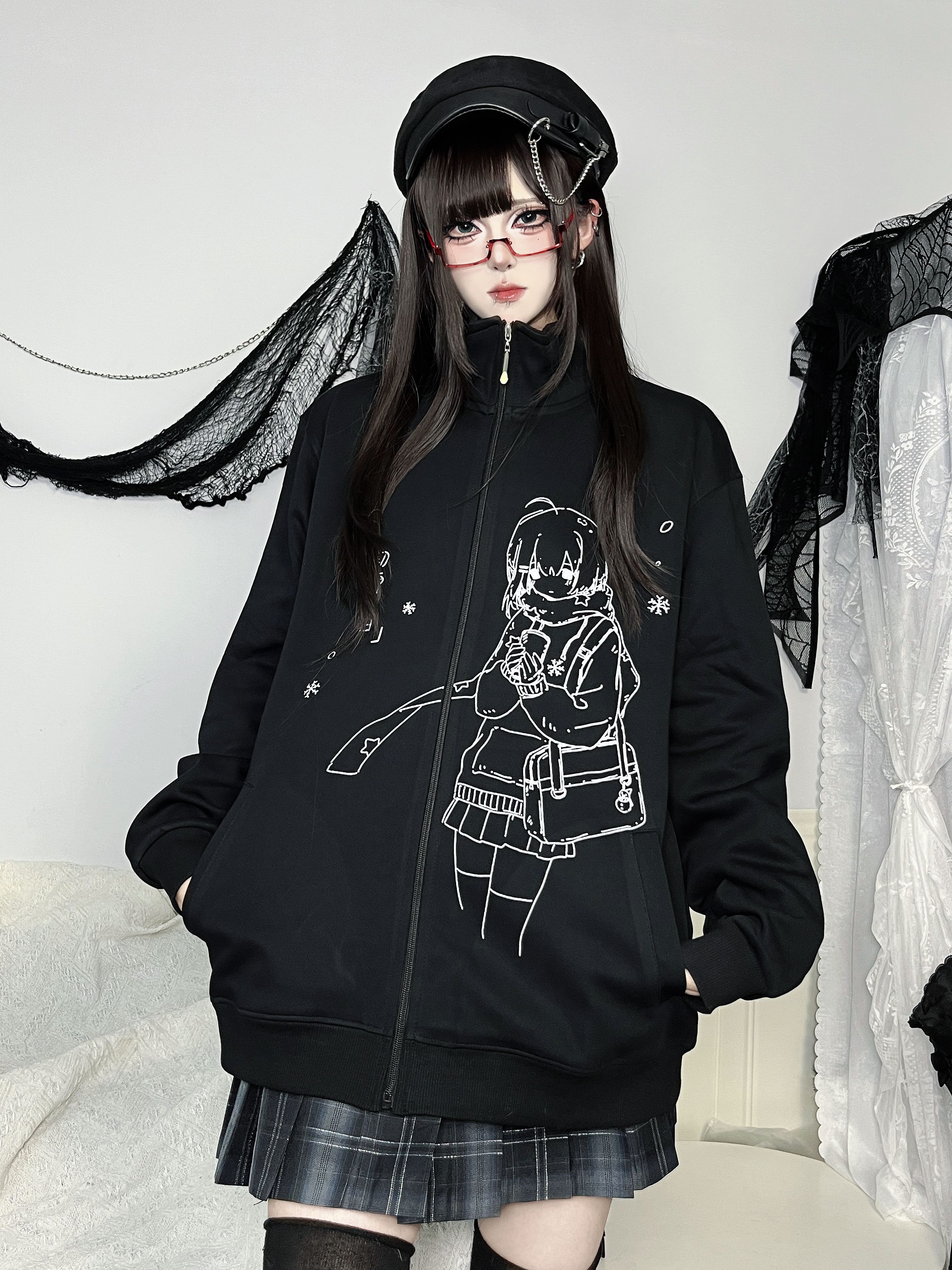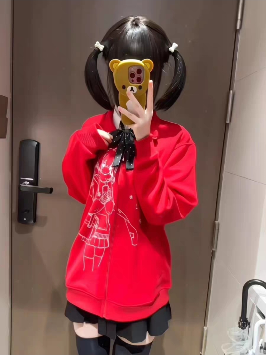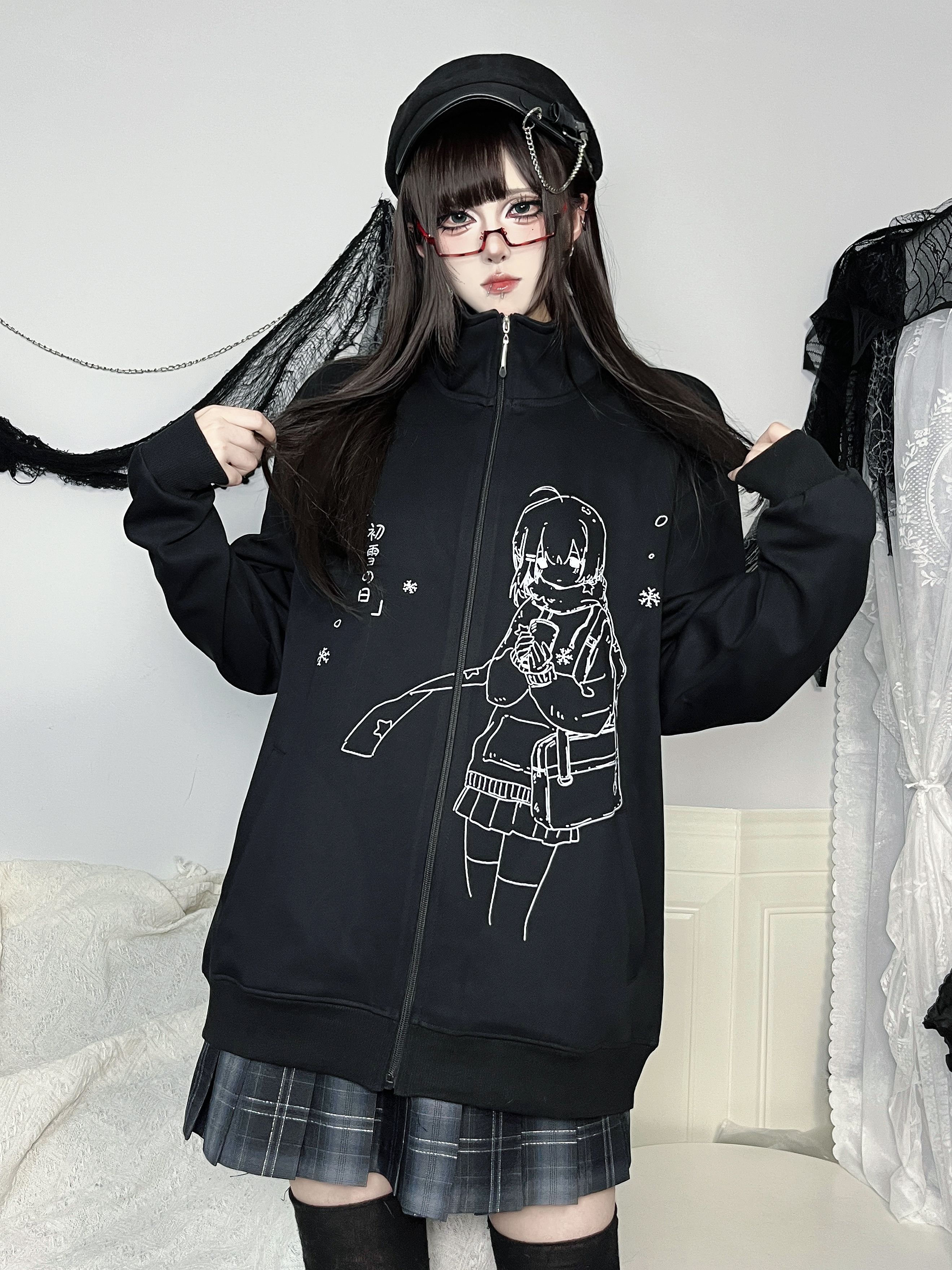 車日時 初雪日聖誕紅原創立領拉鍊外套加絨日系萌感宅宅
