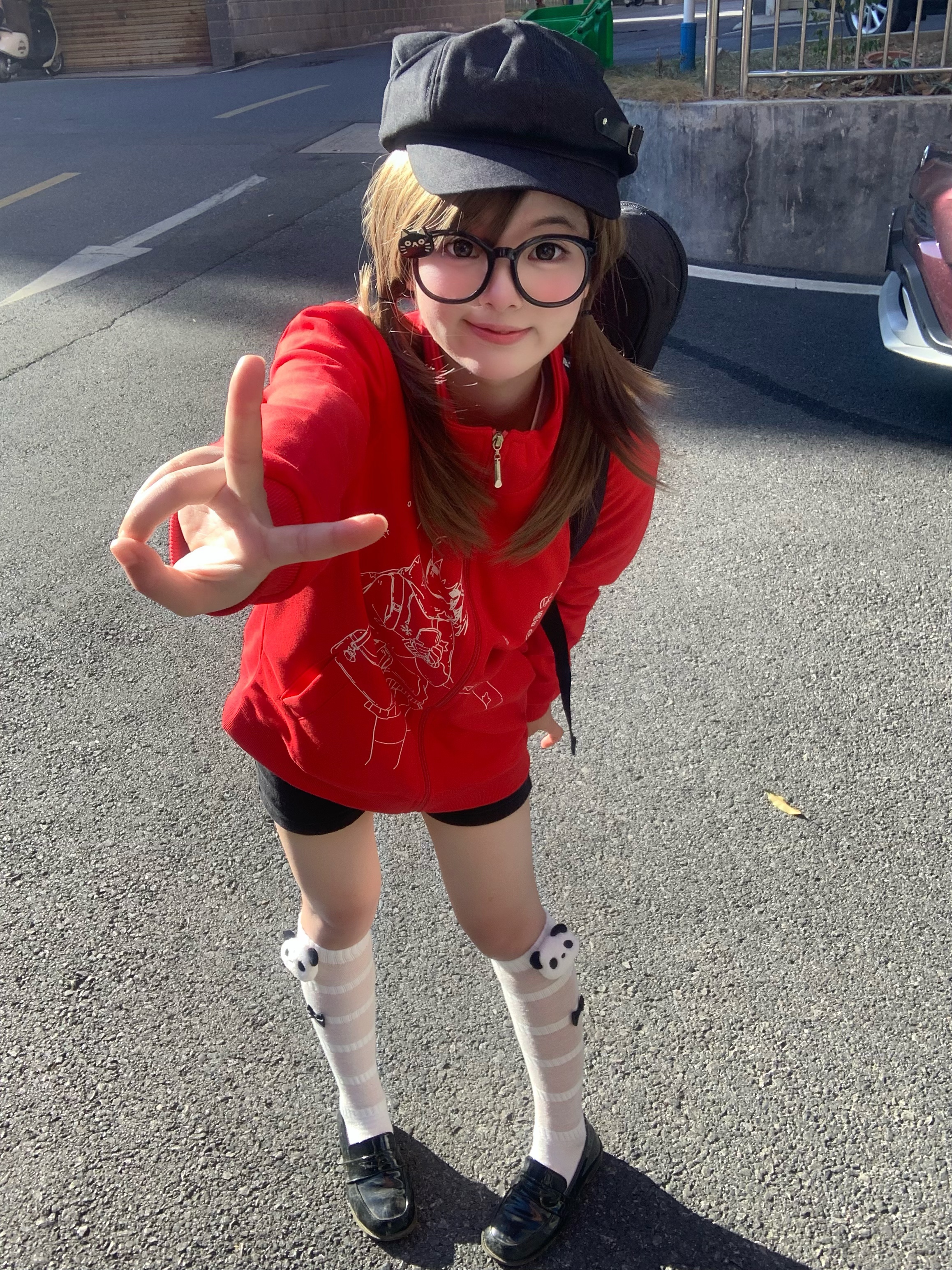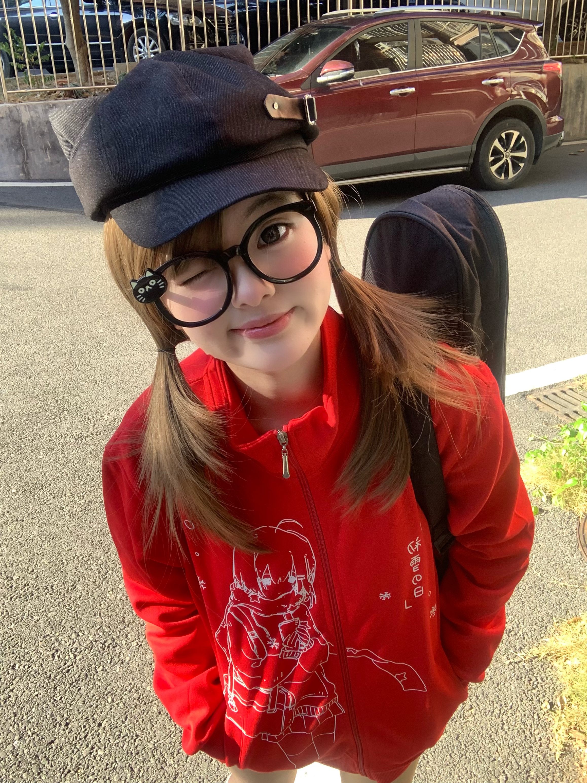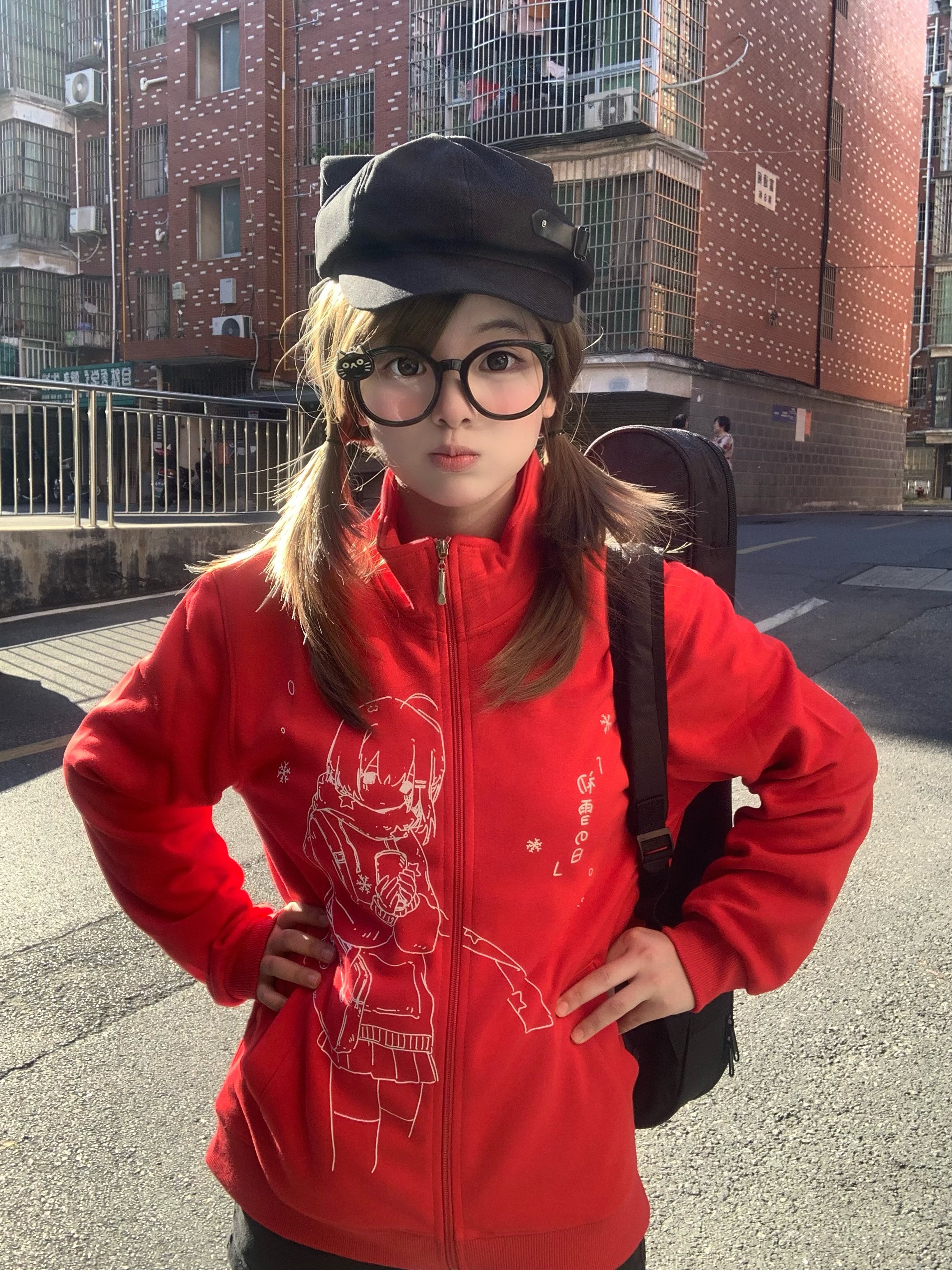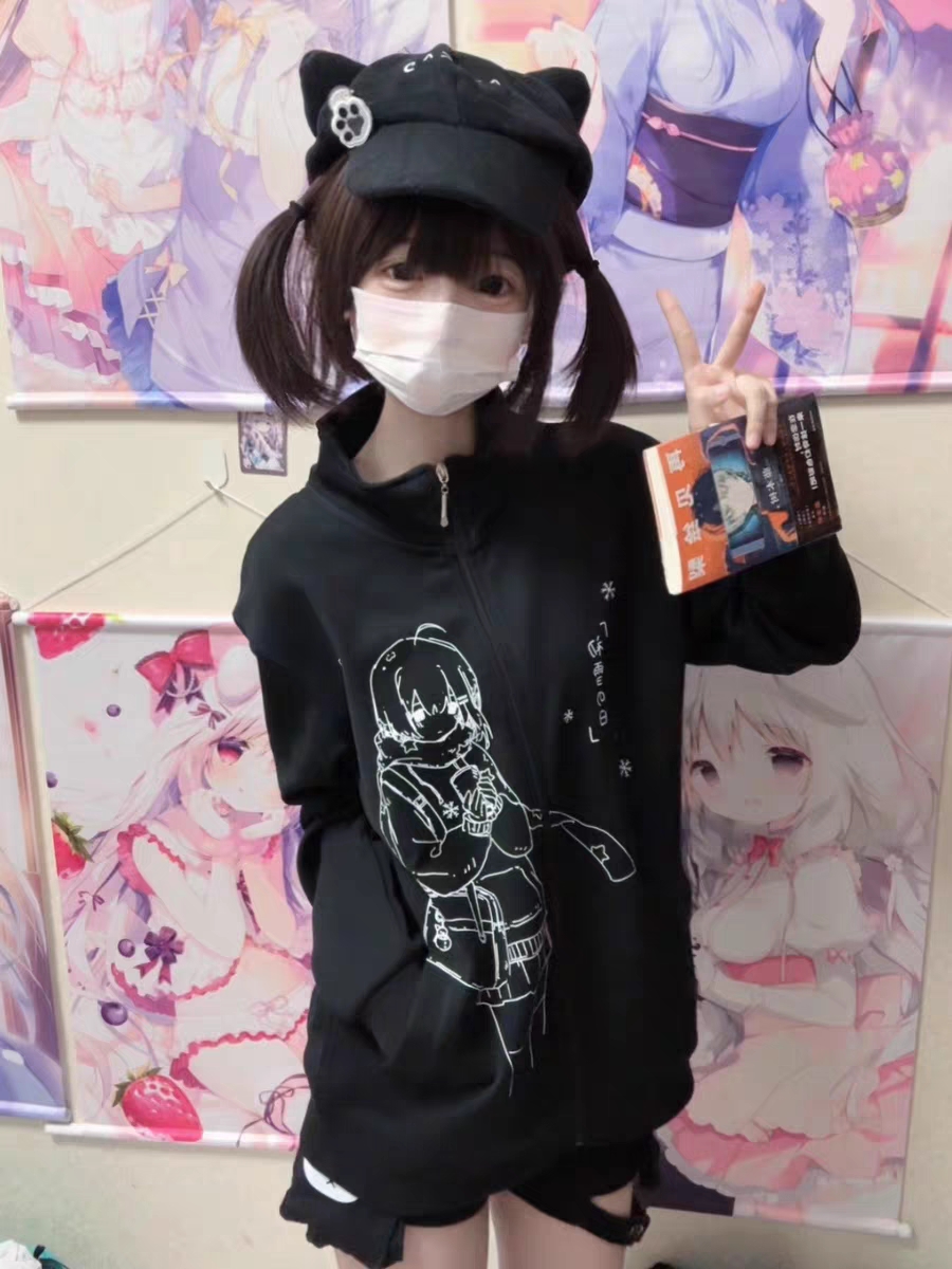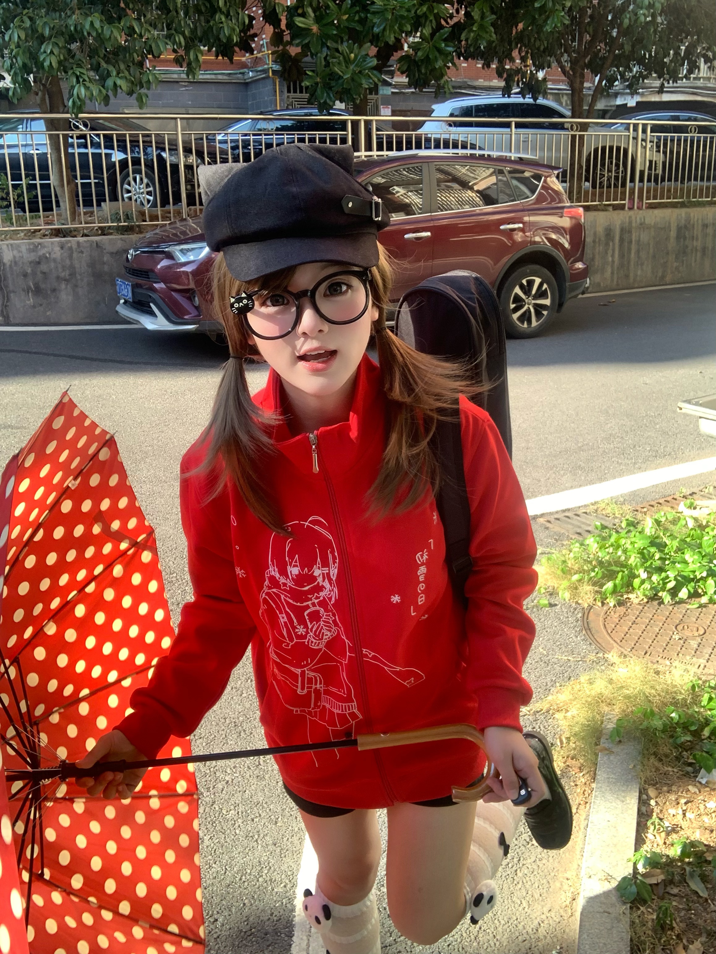 車日時 初雪日聖誕紅原創立領拉鍊外套加絨日系萌感宅宅