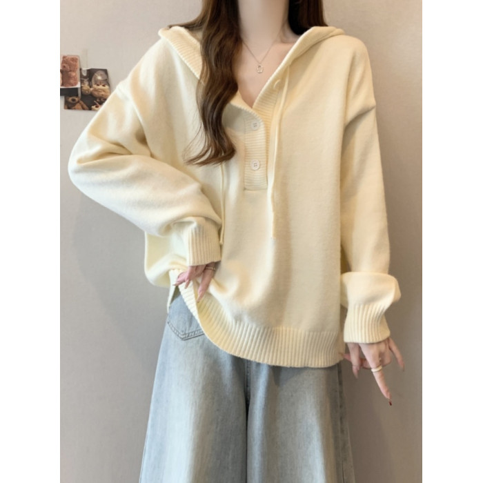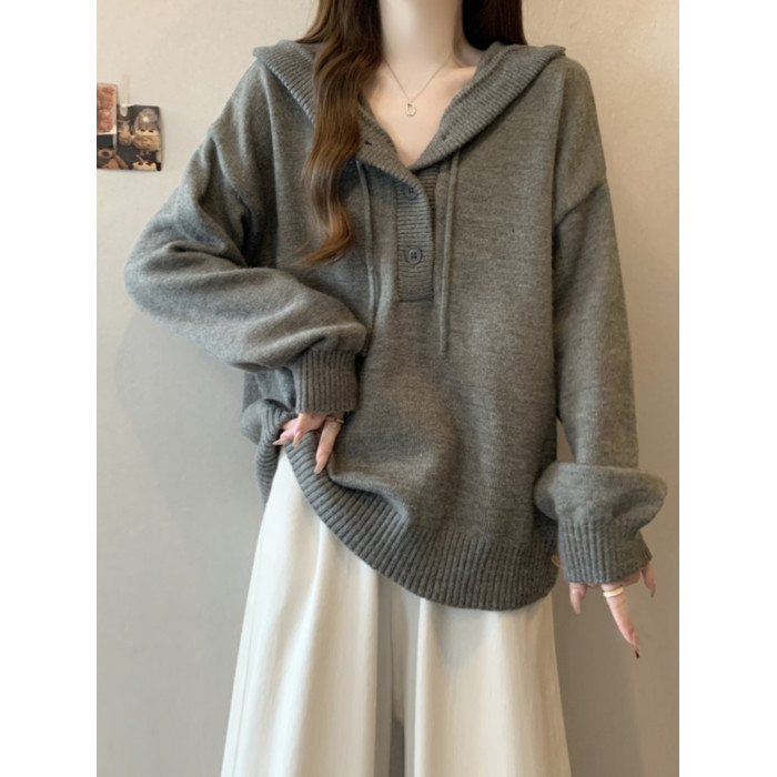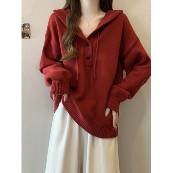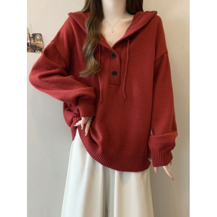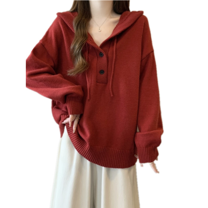 新年聖誕紅色加厚慵懶風連帽針織毛衣女大碼寬松顯瘦衛衣上衣外套