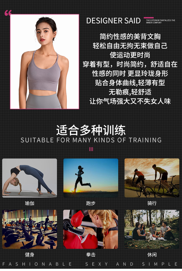 花色折釦JM3118運動文胸女純色加寬下擺美背瑜珈跑步健身訓練內衣