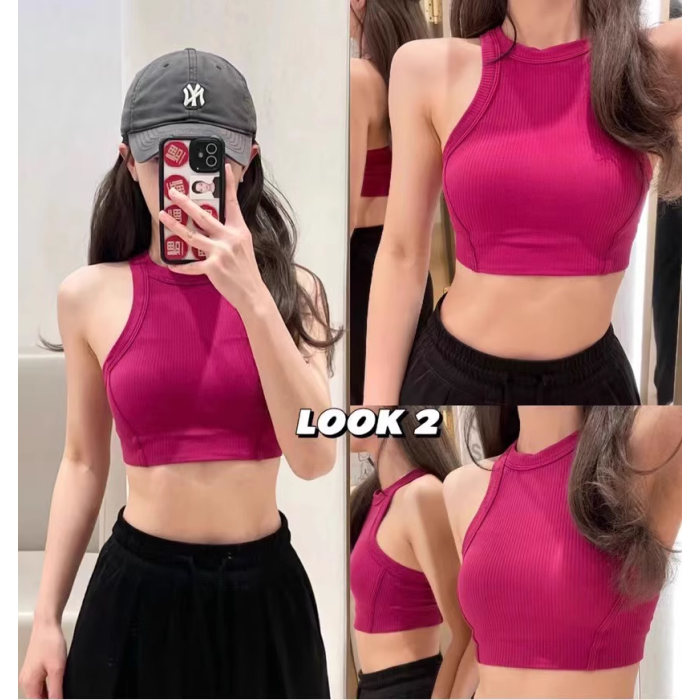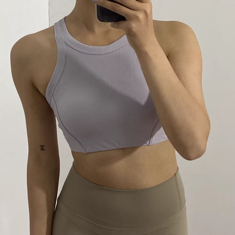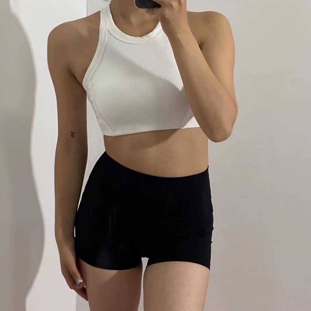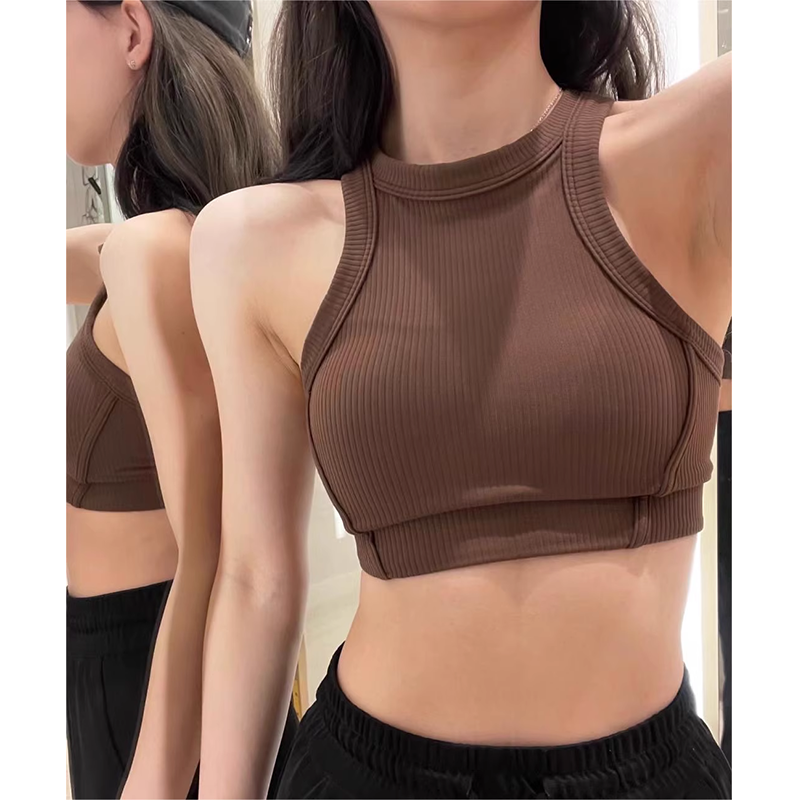 螺紋運動背心女含胸墊背心式瑜珈速乾健身文胸跑步防震瑜珈服
