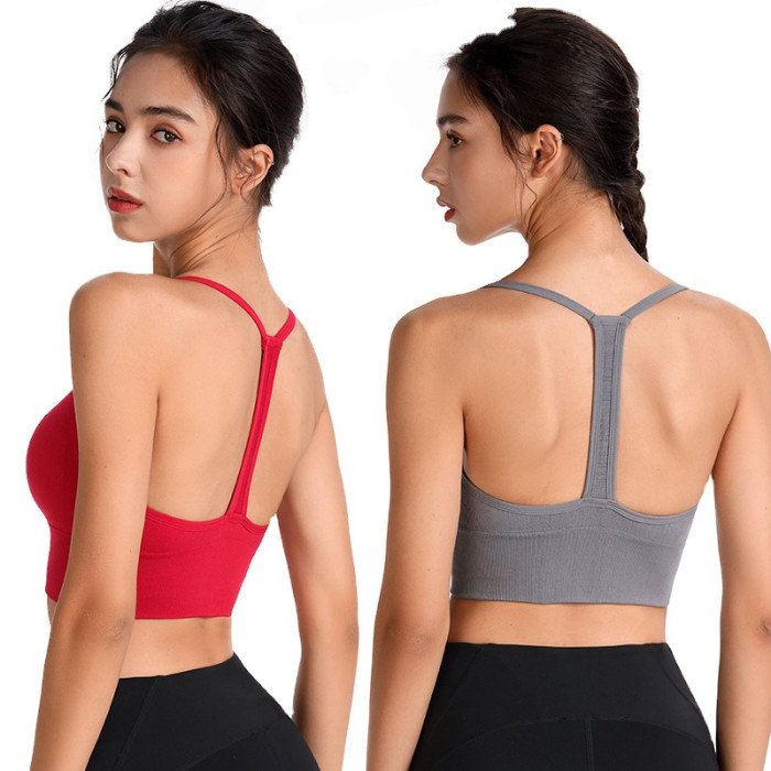 Y型美背瑜珈運動文胸防震速乾健身運動內衣女性感帶胸墊胸罩背心