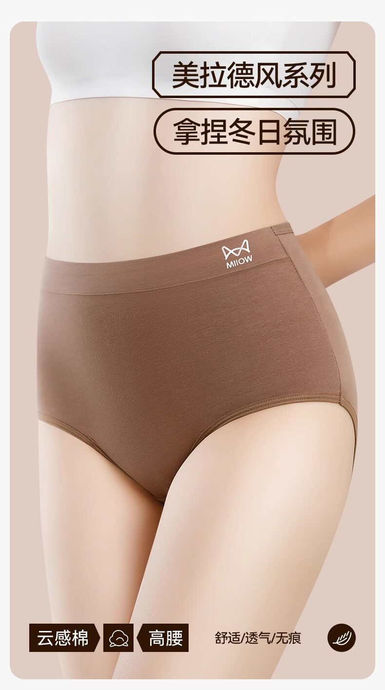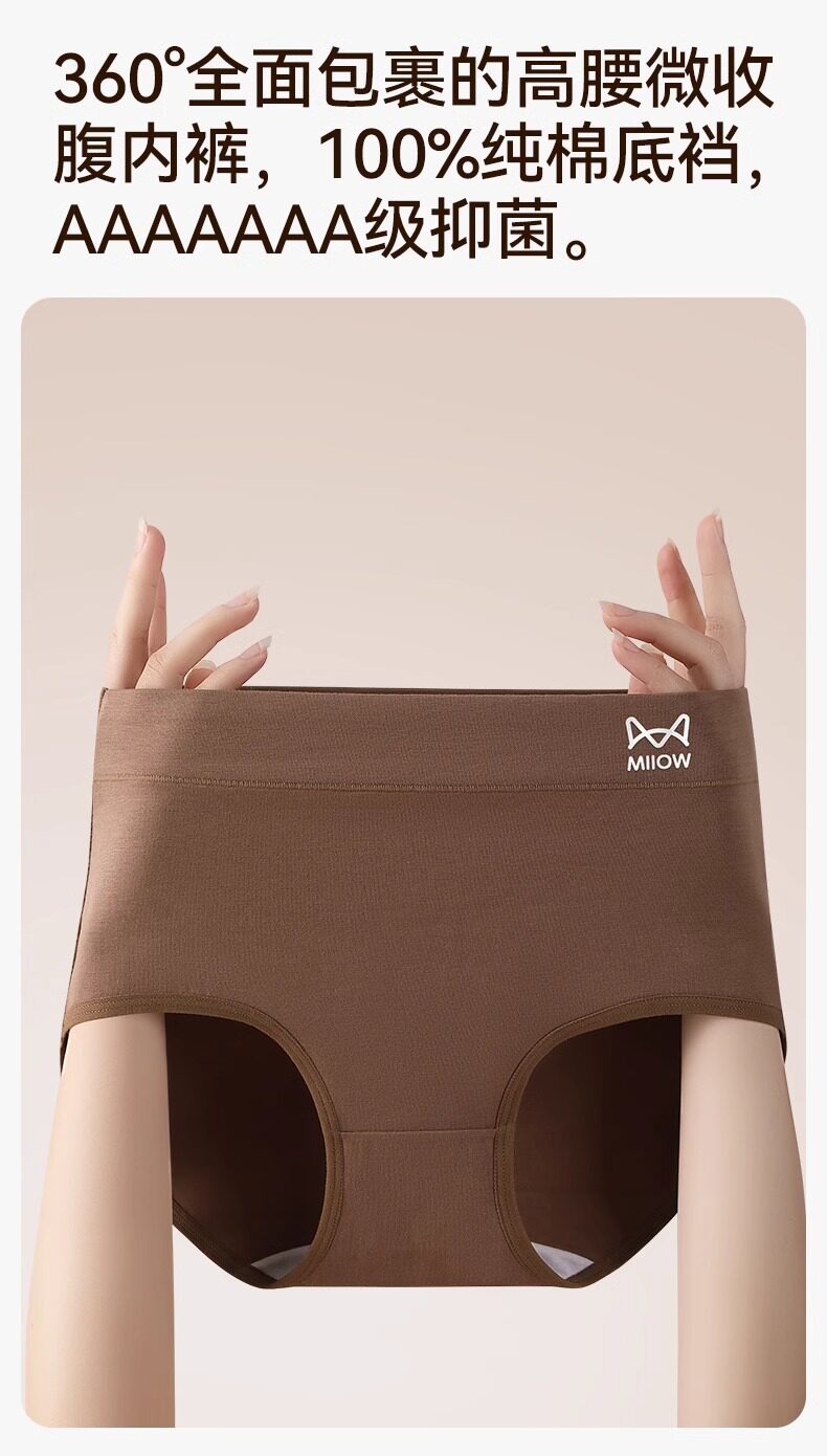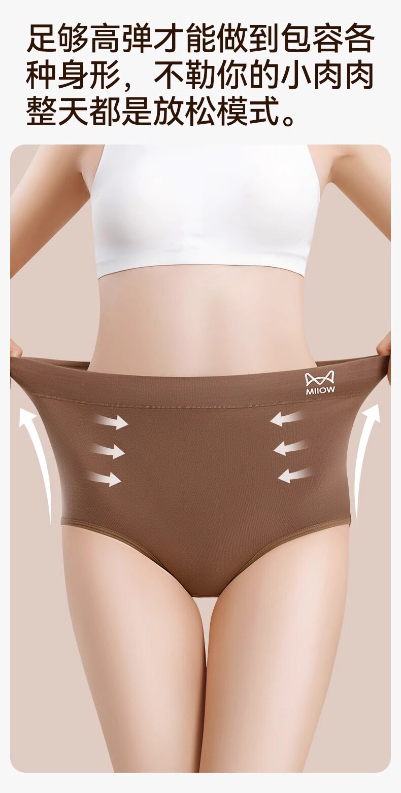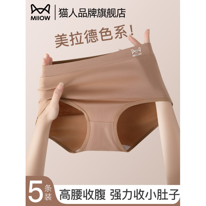 貓人純棉內褲女士高腰收腹強力收小肚子高彈親膚透氣女三角褲褲衩