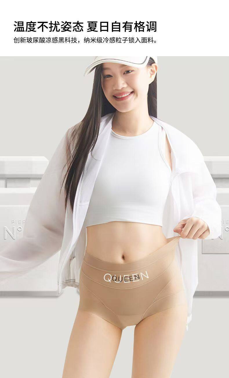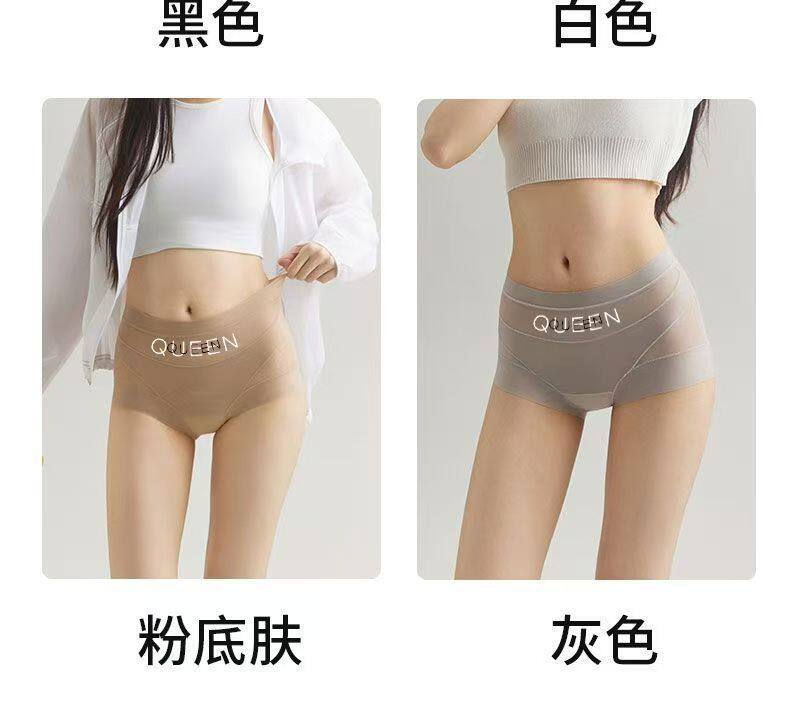 大碼高腰輕收腹胖mm內褲少女薄款冰絲無痕舒適透氣女生平角褲