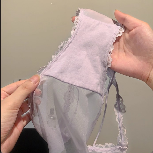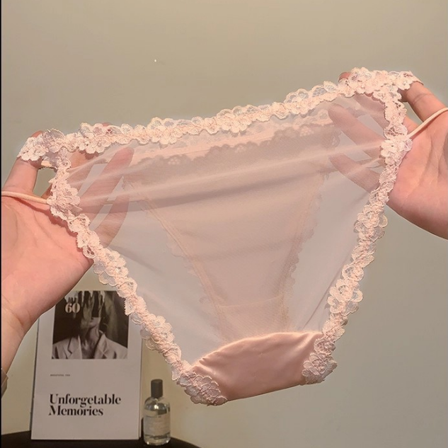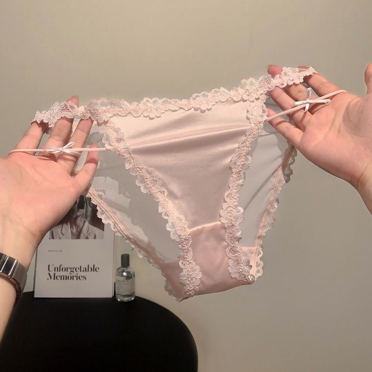 性感緞面絲滑內褲女透氣網紗短褲蕾絲邊三角褲低腰