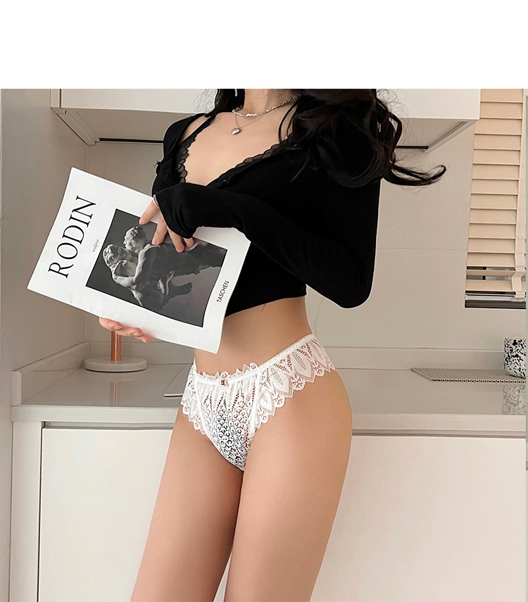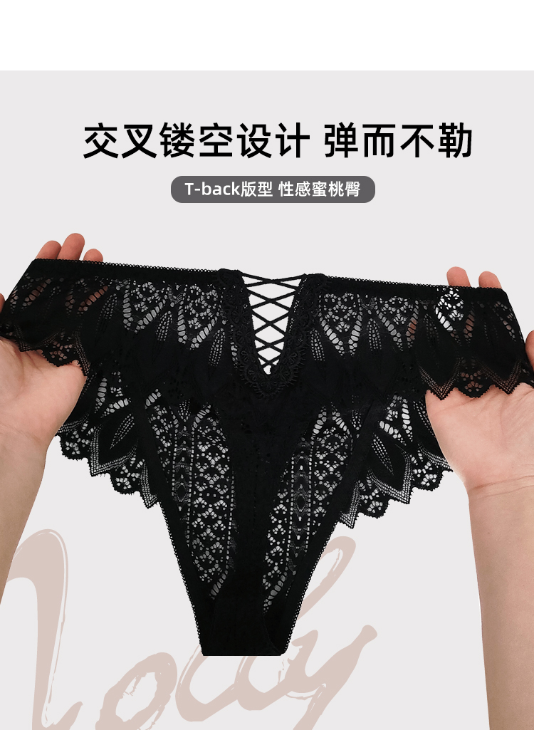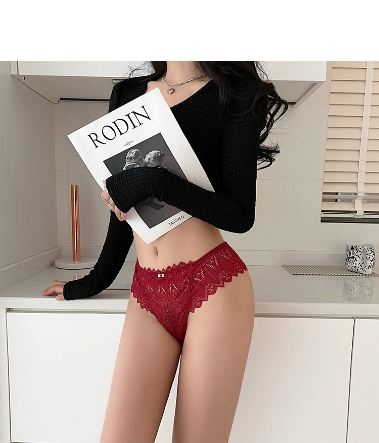 法式性感蕾絲丁字褲內褲女士中腰鏤空舒適親膚不夾臀紅色t褲女