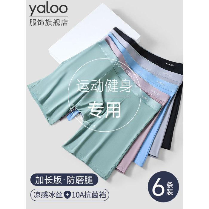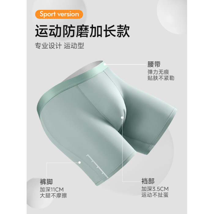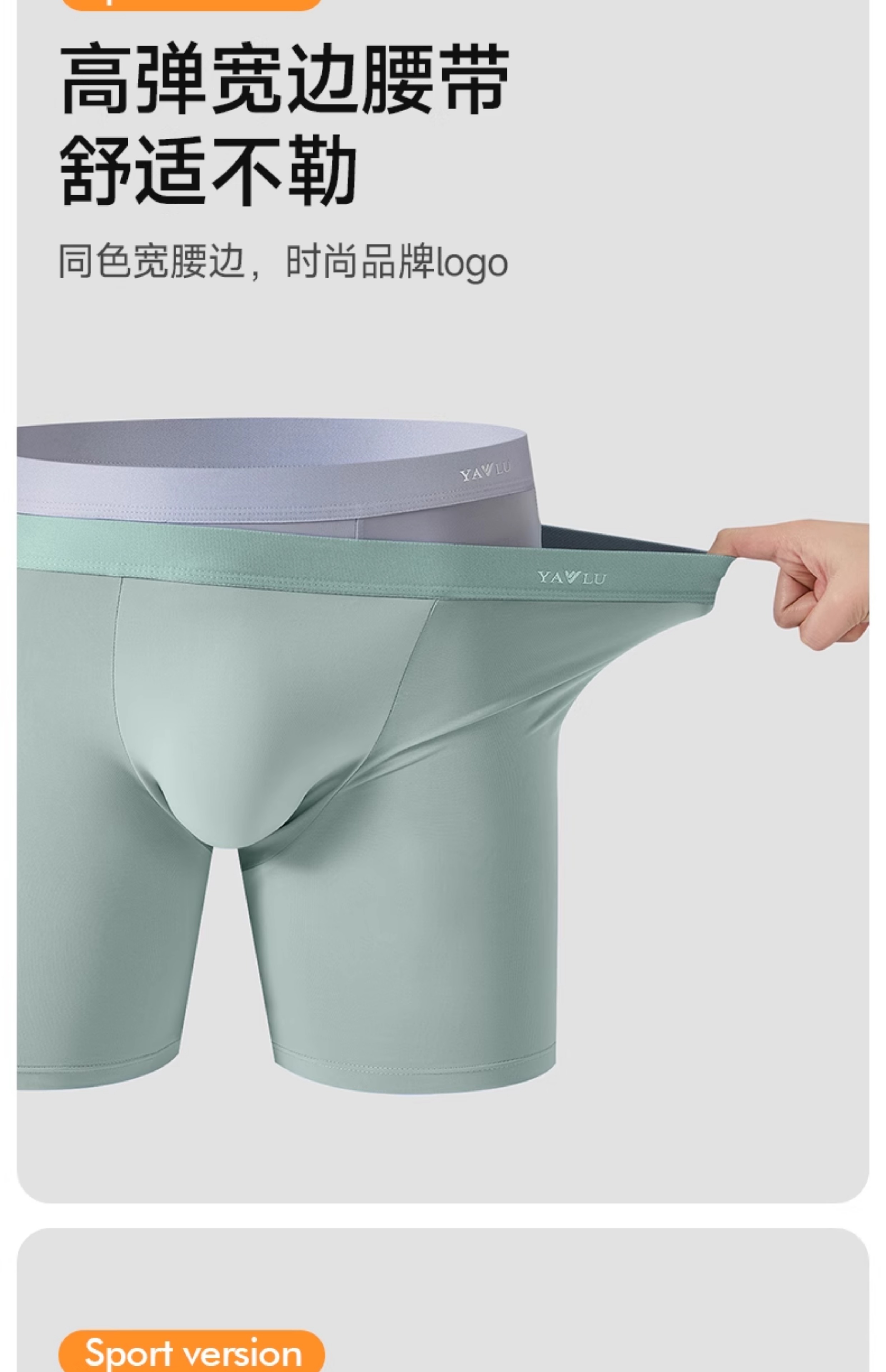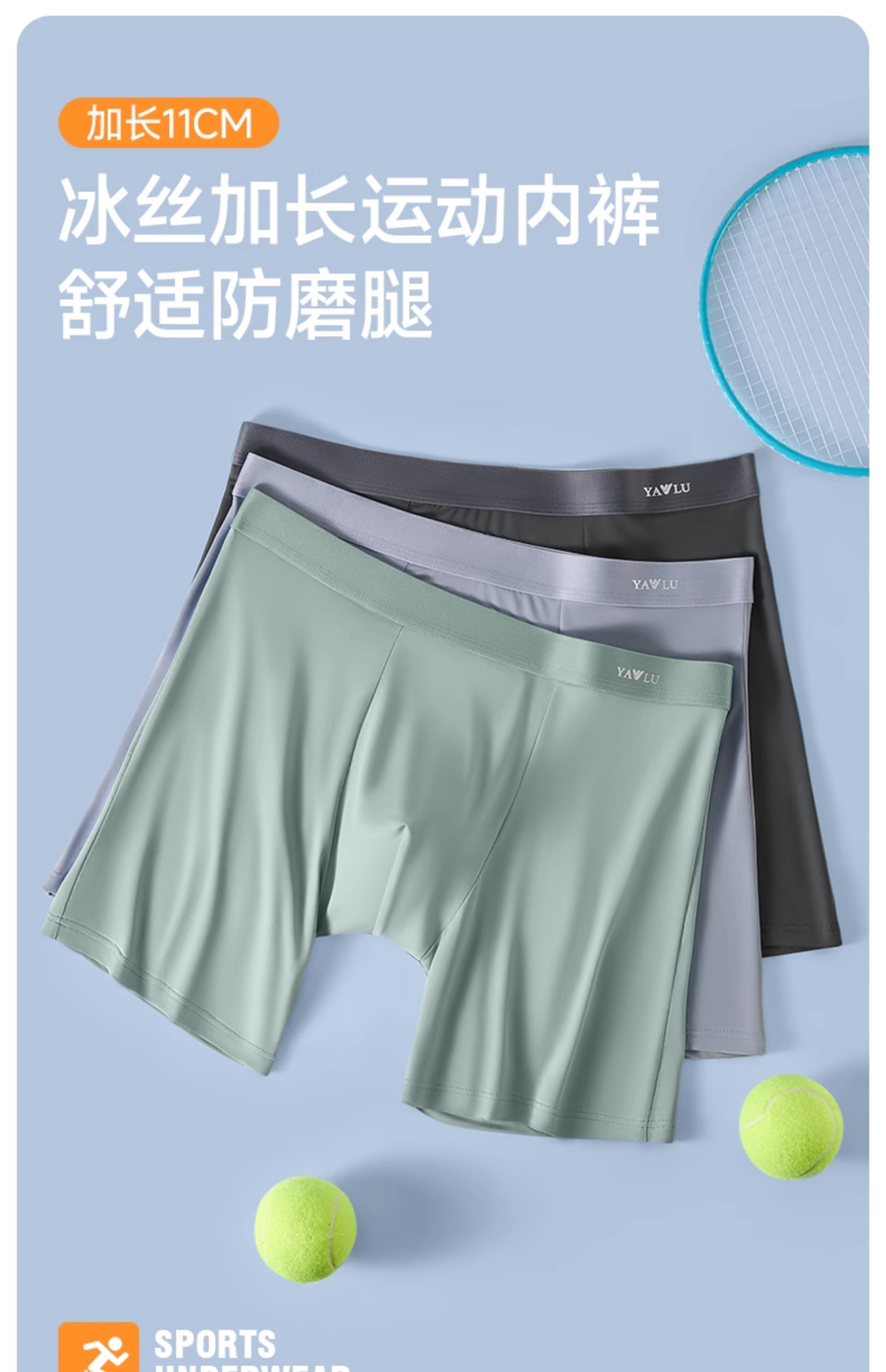 雅鹿運動內褲男士加長款防磨腿抗菌襠冰絲男生跑步健身大碼四角褲