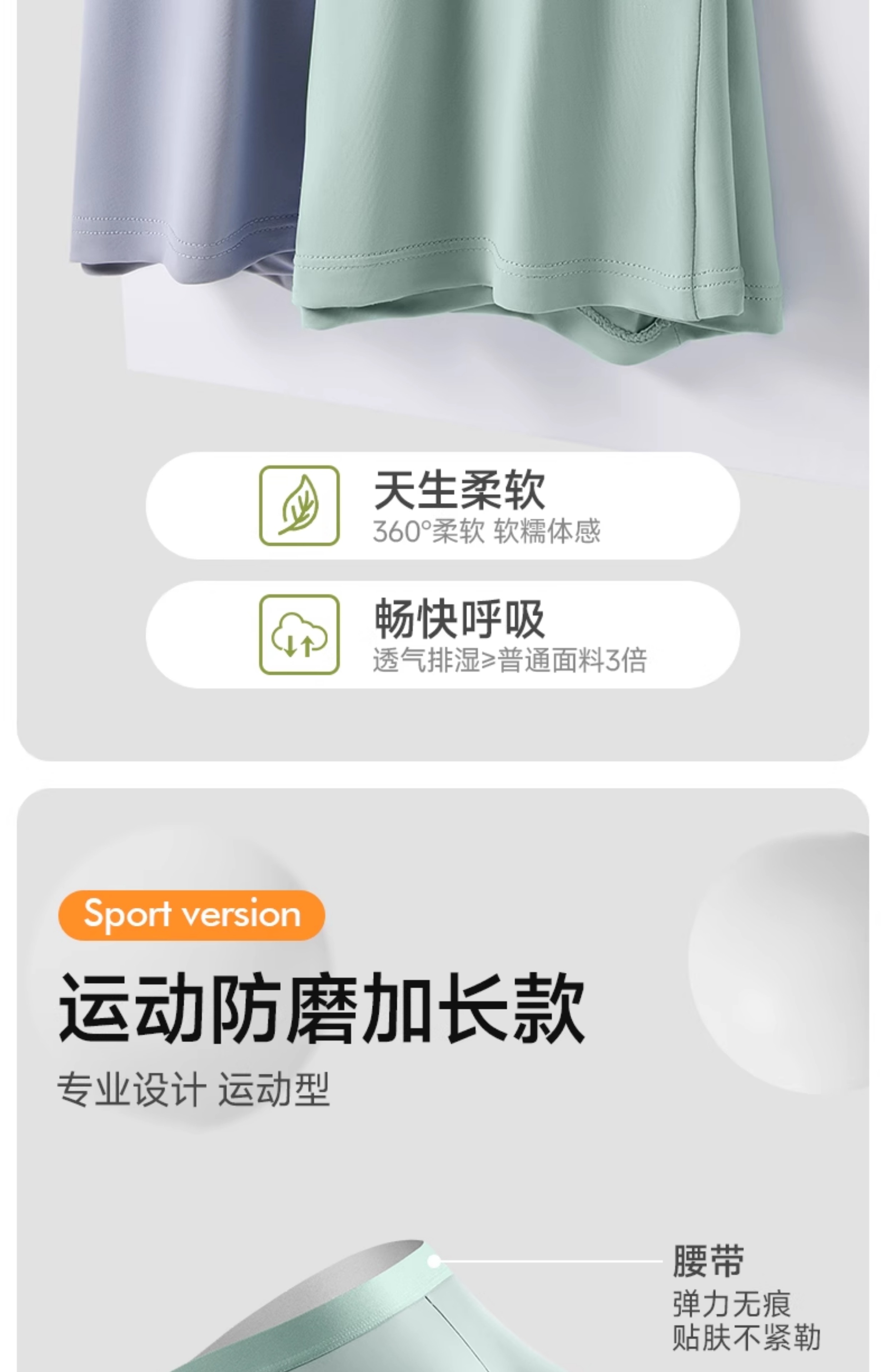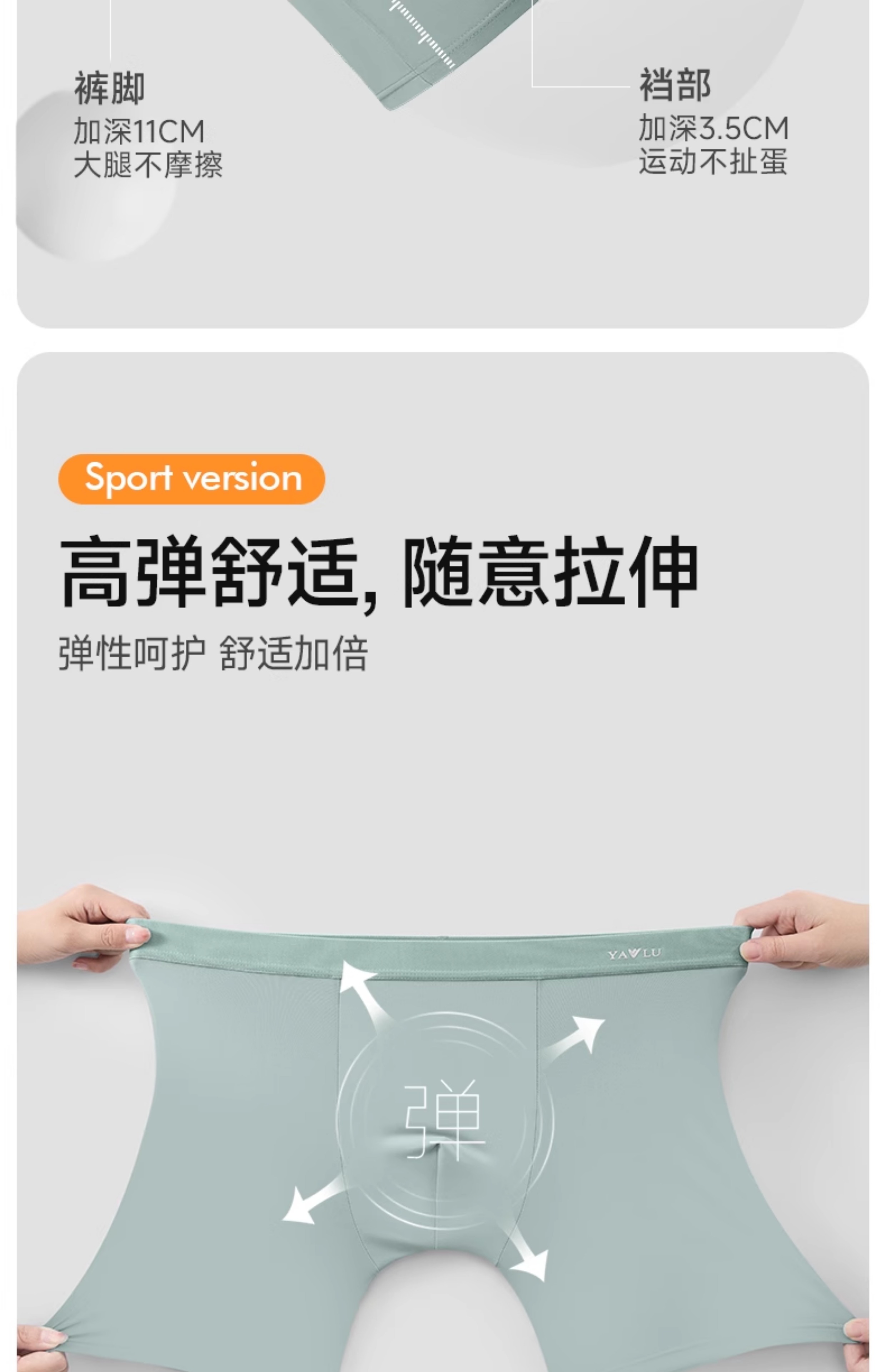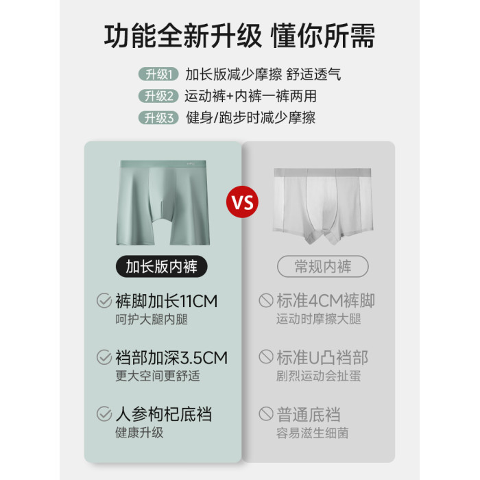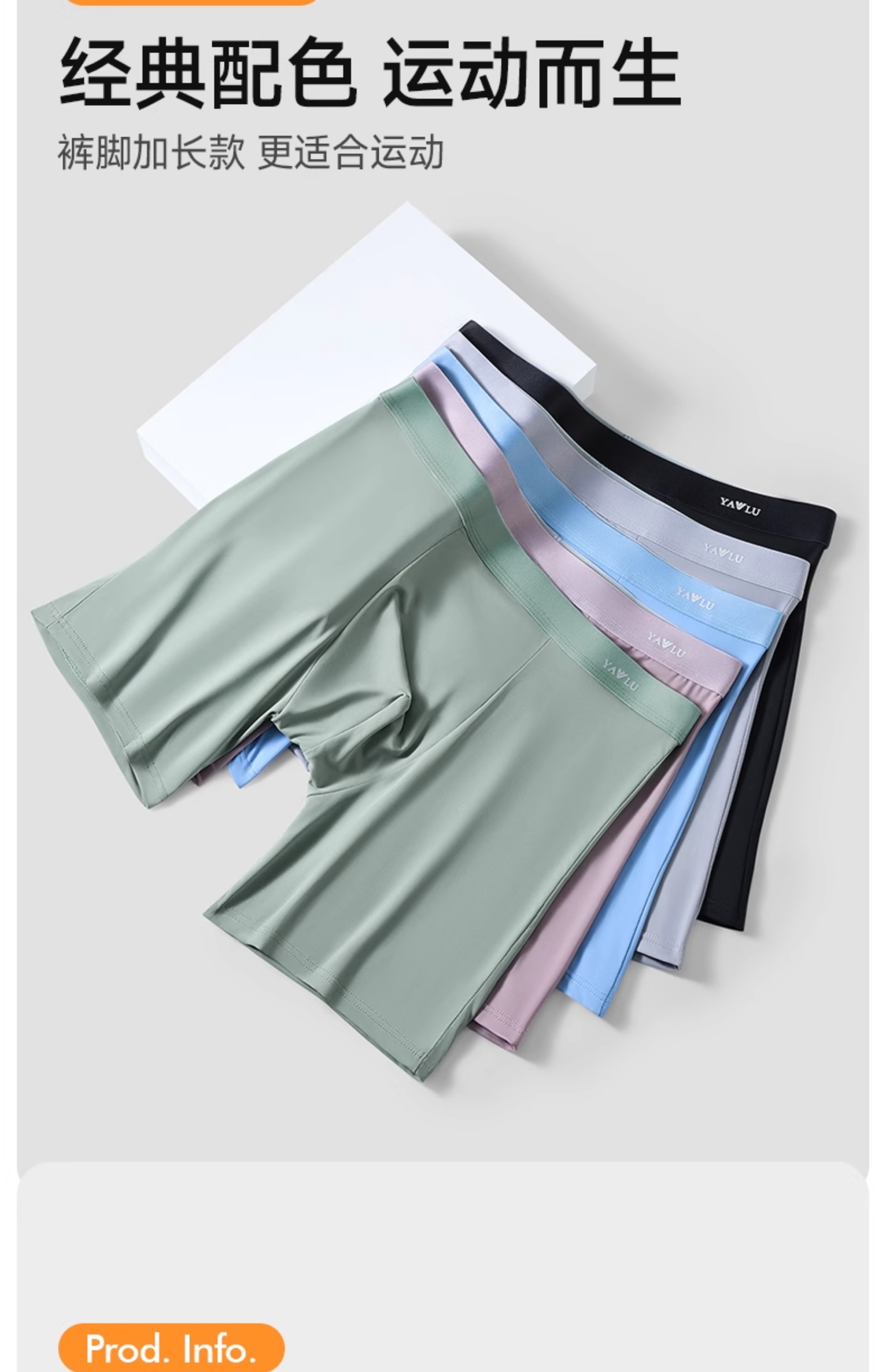 雅鹿運動內褲男士加長款防磨腿抗菌襠冰絲男生跑步健身大碼四角褲