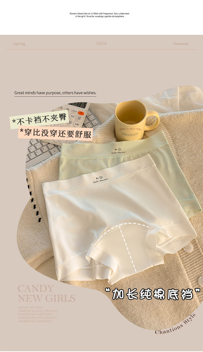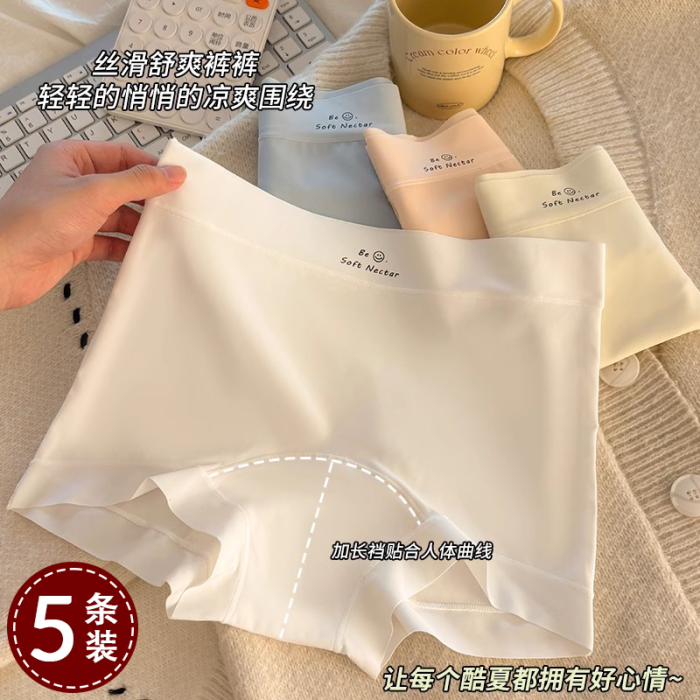 【6條】加長襠冰絲內褲女生10A抗菌不卷邊不夾臀卡檔夏薄款平角褲