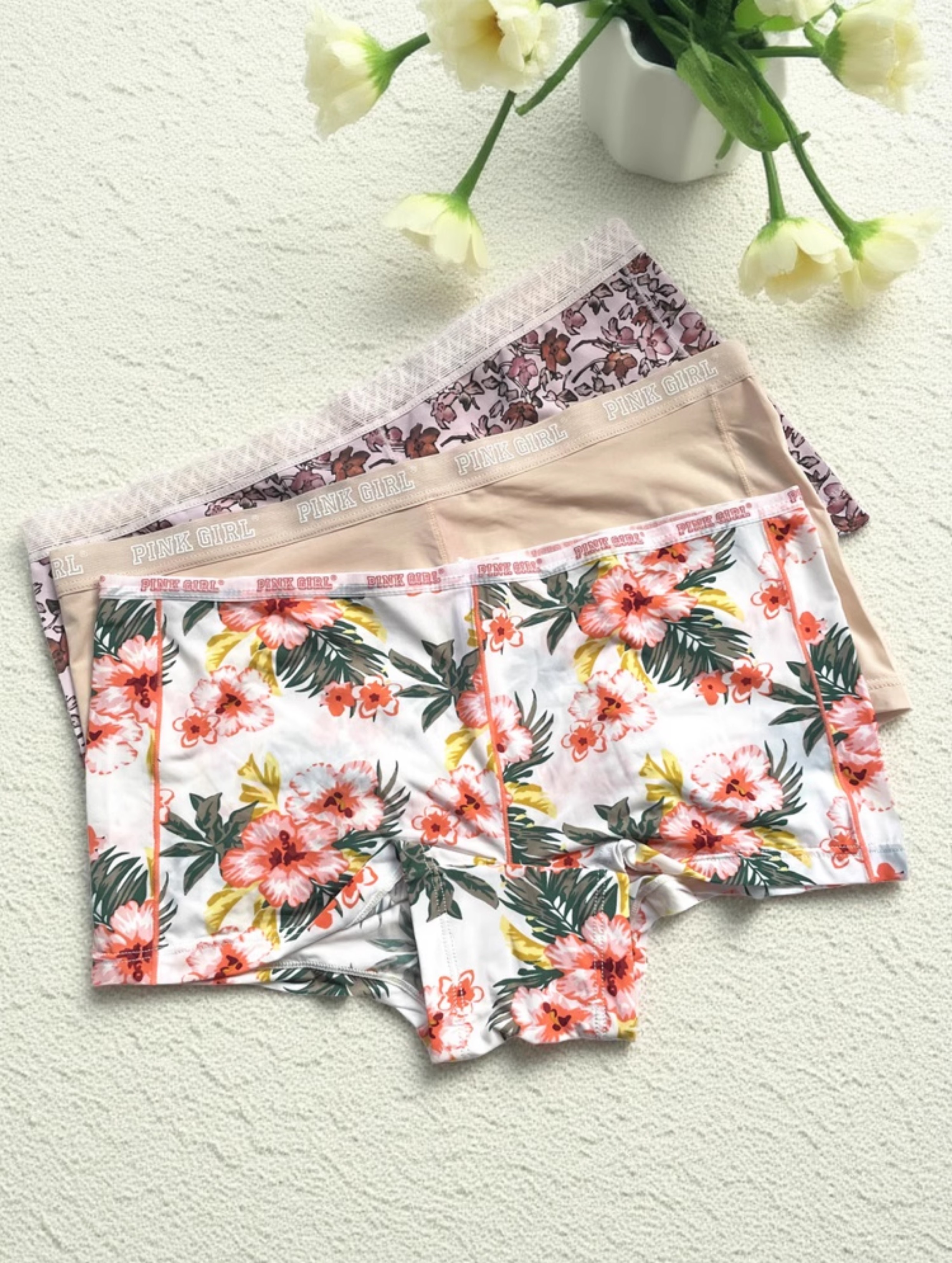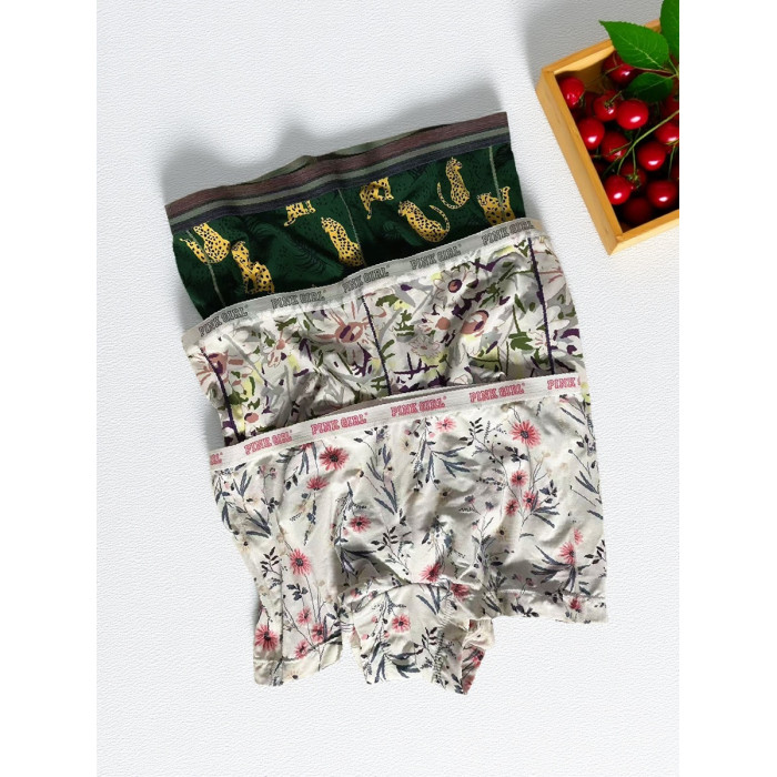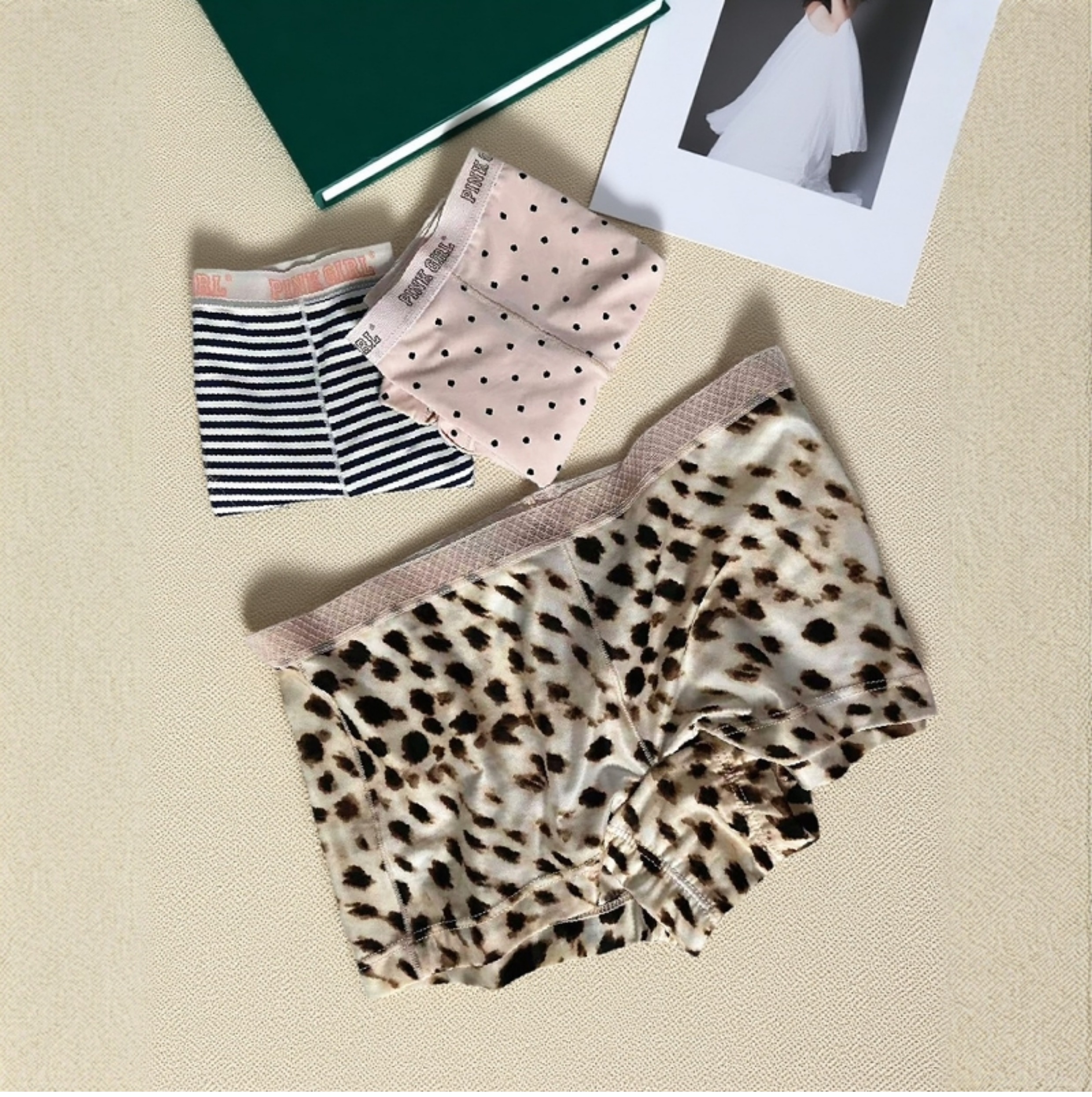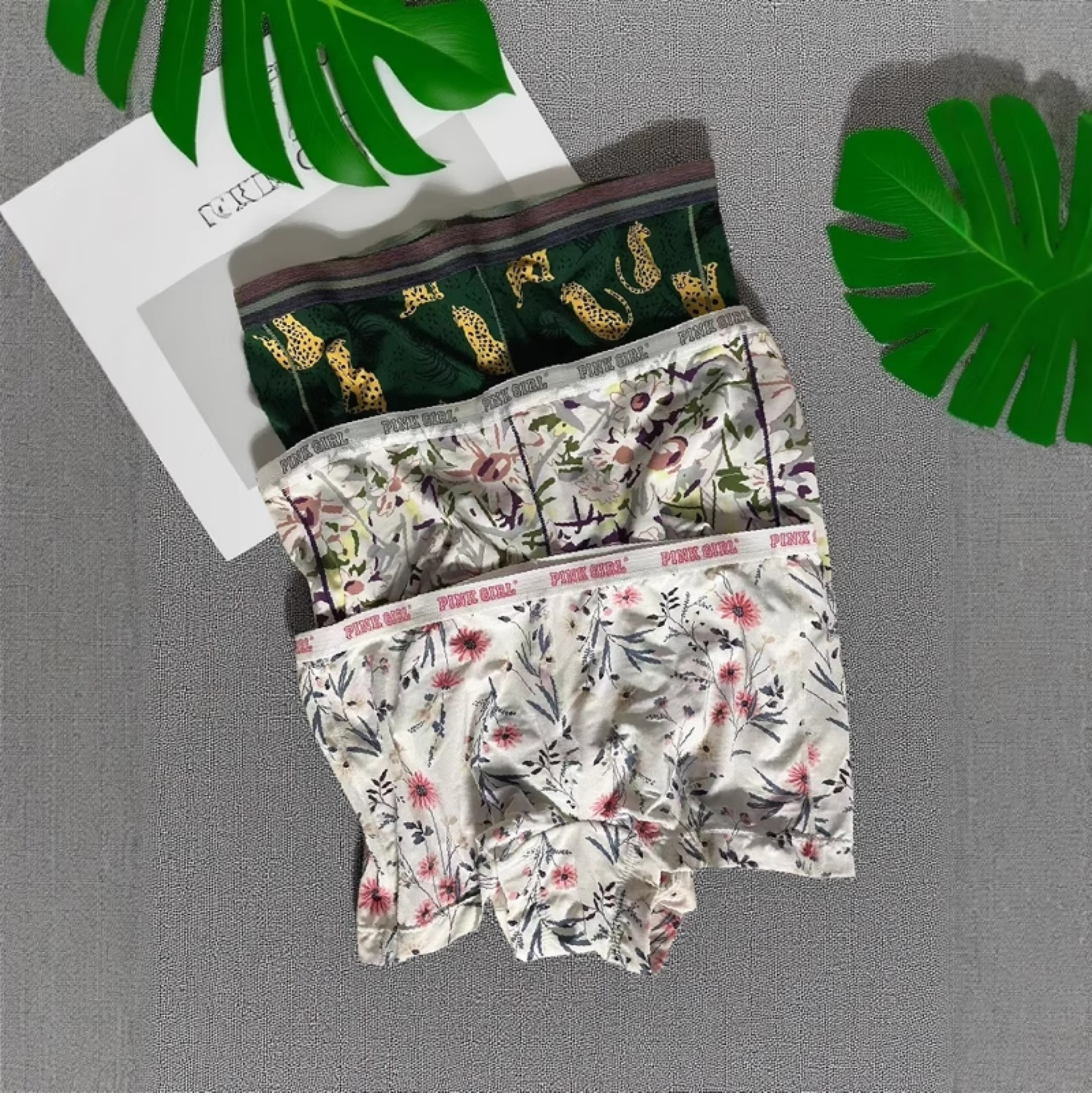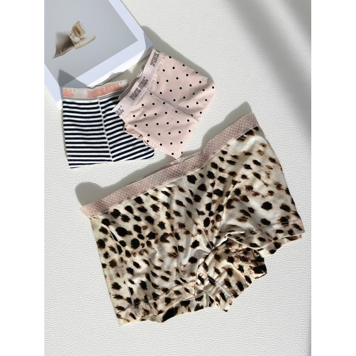 法國年奶絲冰絲莫代爾棉條紋印花女平角T中性無痕四角內褲女潮款
