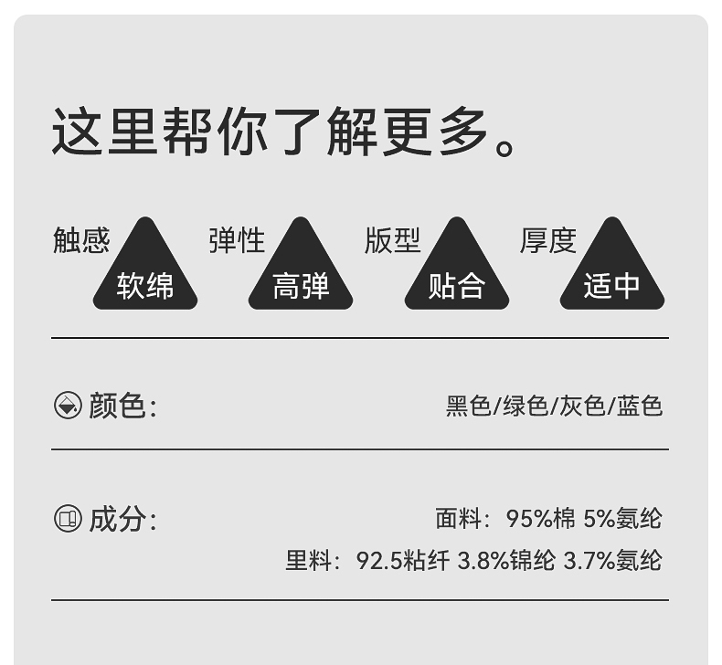 | 大身材質成分 | 棉95% 聚氨酯彈性纖維(氨綸)5% |