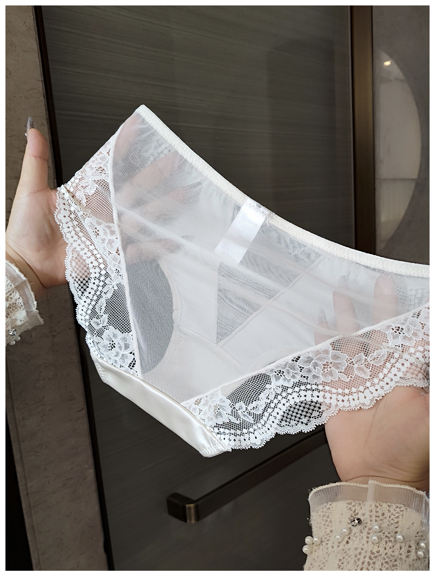 輕奢法式性感蕾絲內褲女款低腰薄款網紗透明純欲女生純棉檔三角褲