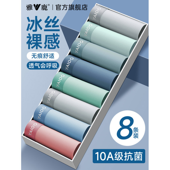 雅鹿男士內褲男款冰絲速乾抗菌純棉襠男生四角褲衩平角短褲頭透氣